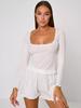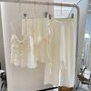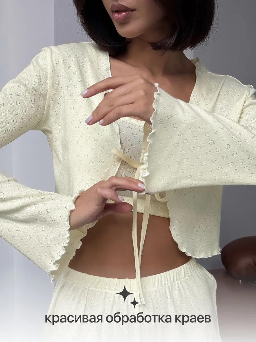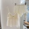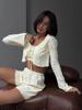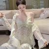 Conjunto de tres piezas sexy jacquard europeo y americano de primavera y verano con tirantes envolventes en el pecho, interior con cordones, manga larga y shorts, cómodo para estar en casa