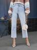 Deseo transfronterizo Amazon comercio exterior moda jeans mujer 2025 nuevo parche europeo y americano en capas pierna recta pantalones largos