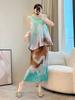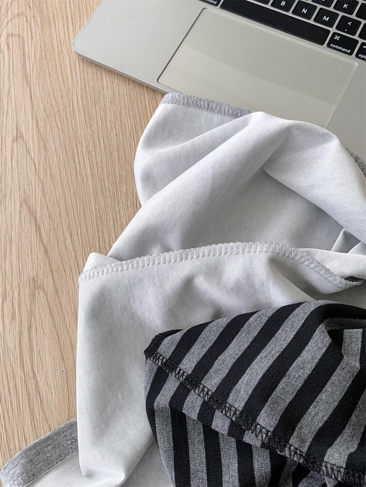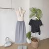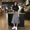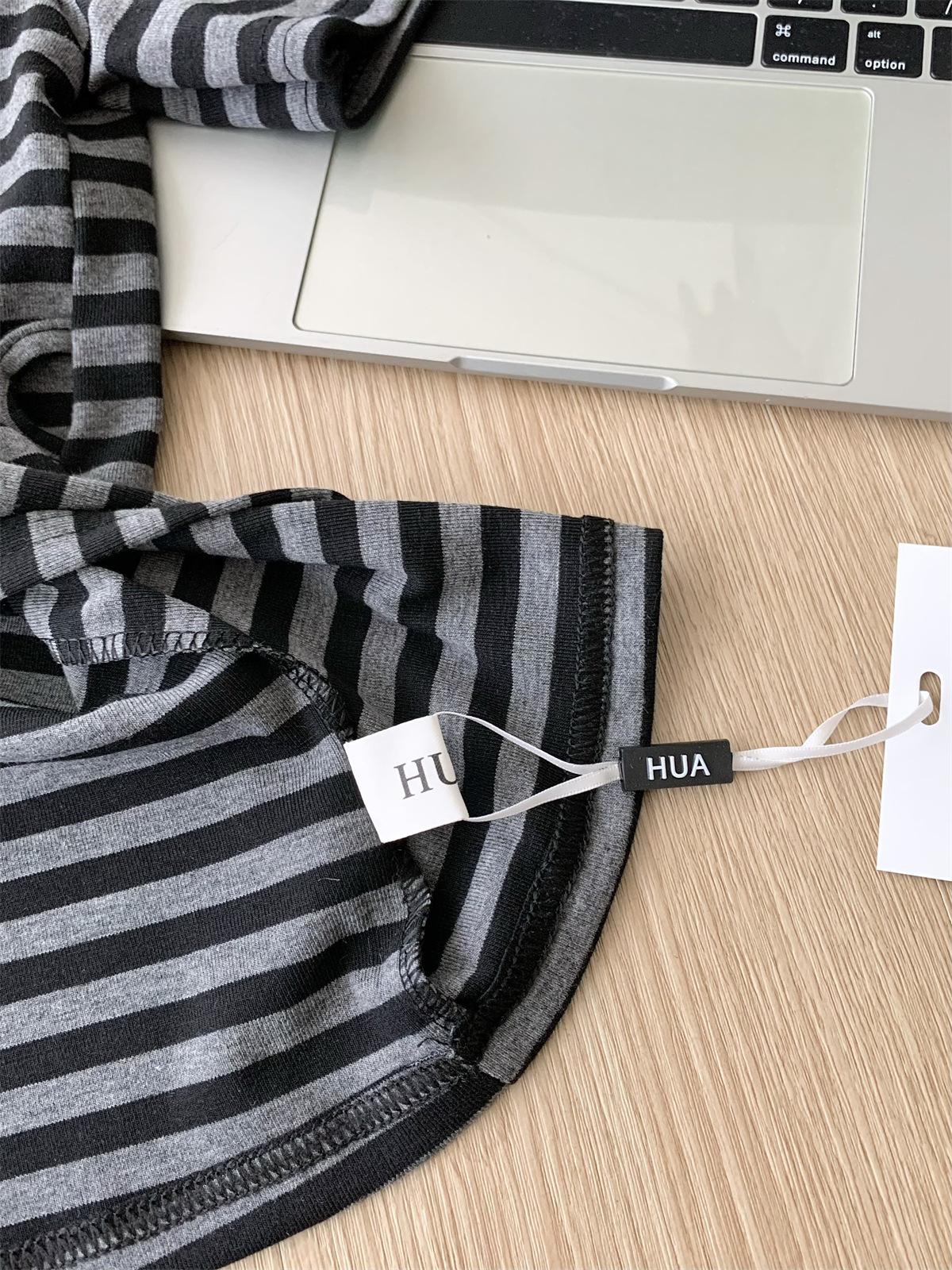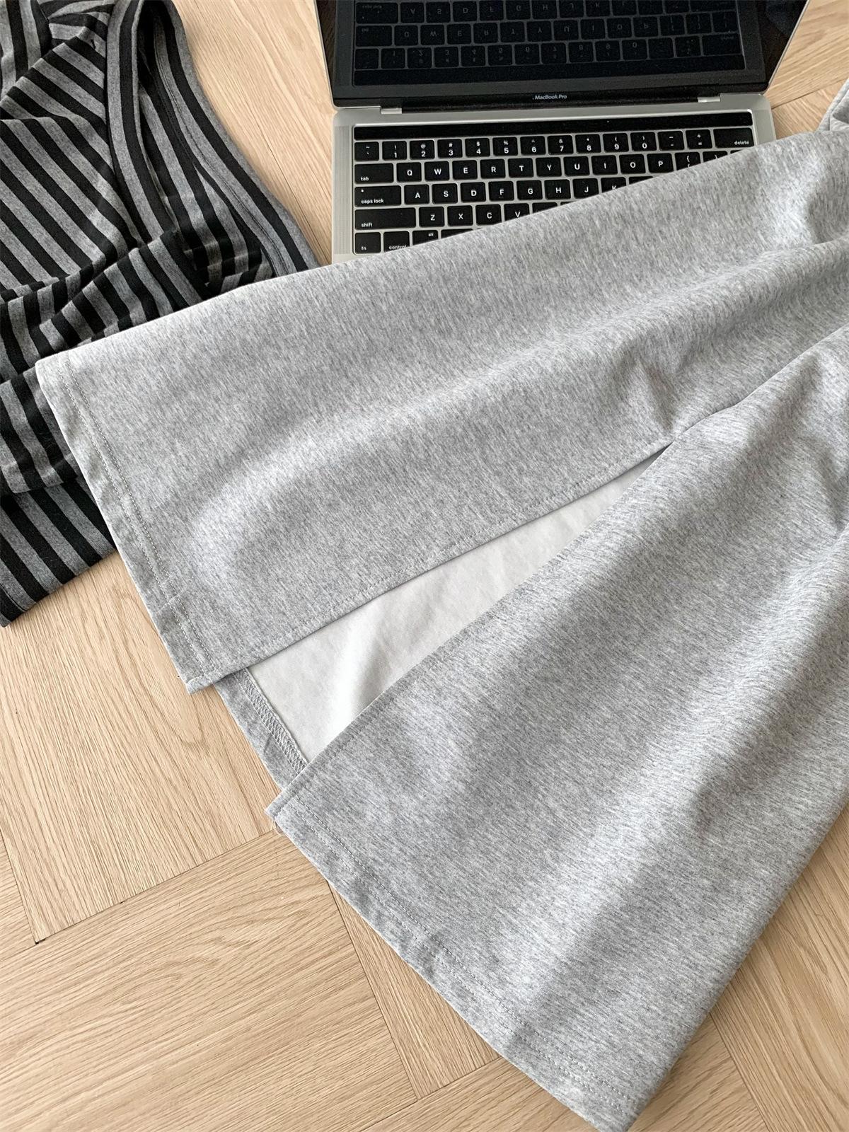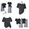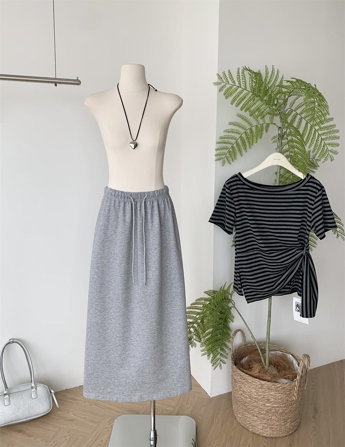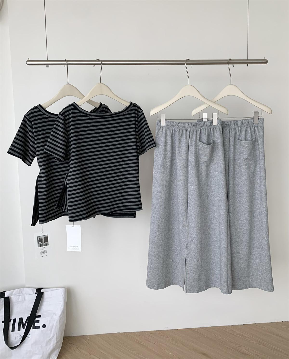 Verano Nuevo Estilo Estilo Perezoso Look Adelgazante Holgado Elegante Camiseta de Manga Corta con Rayas de Hombro Inclinado + Traje de Falda Versátil de Cintura Alta