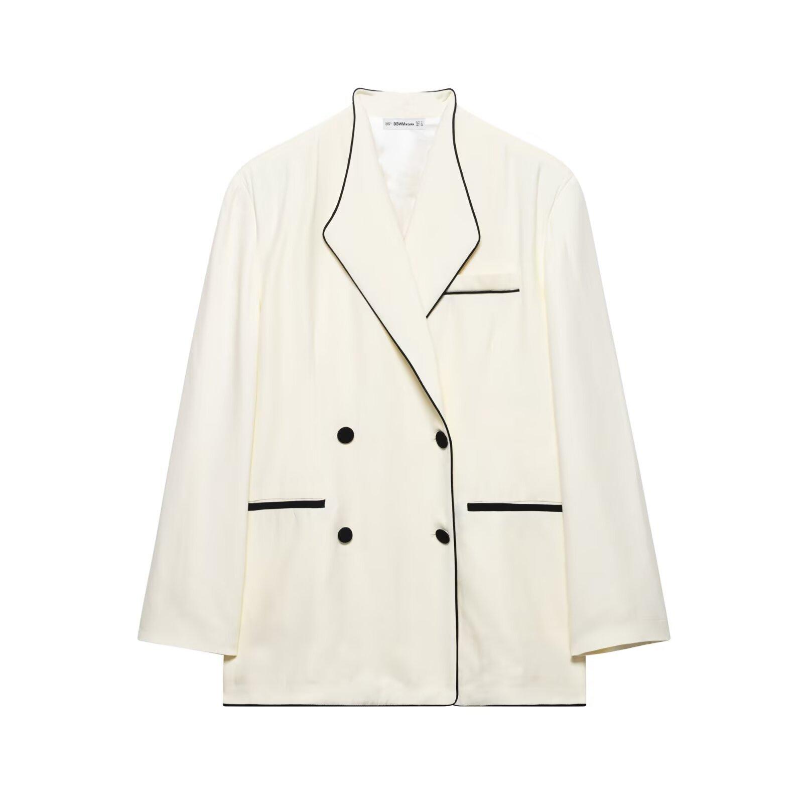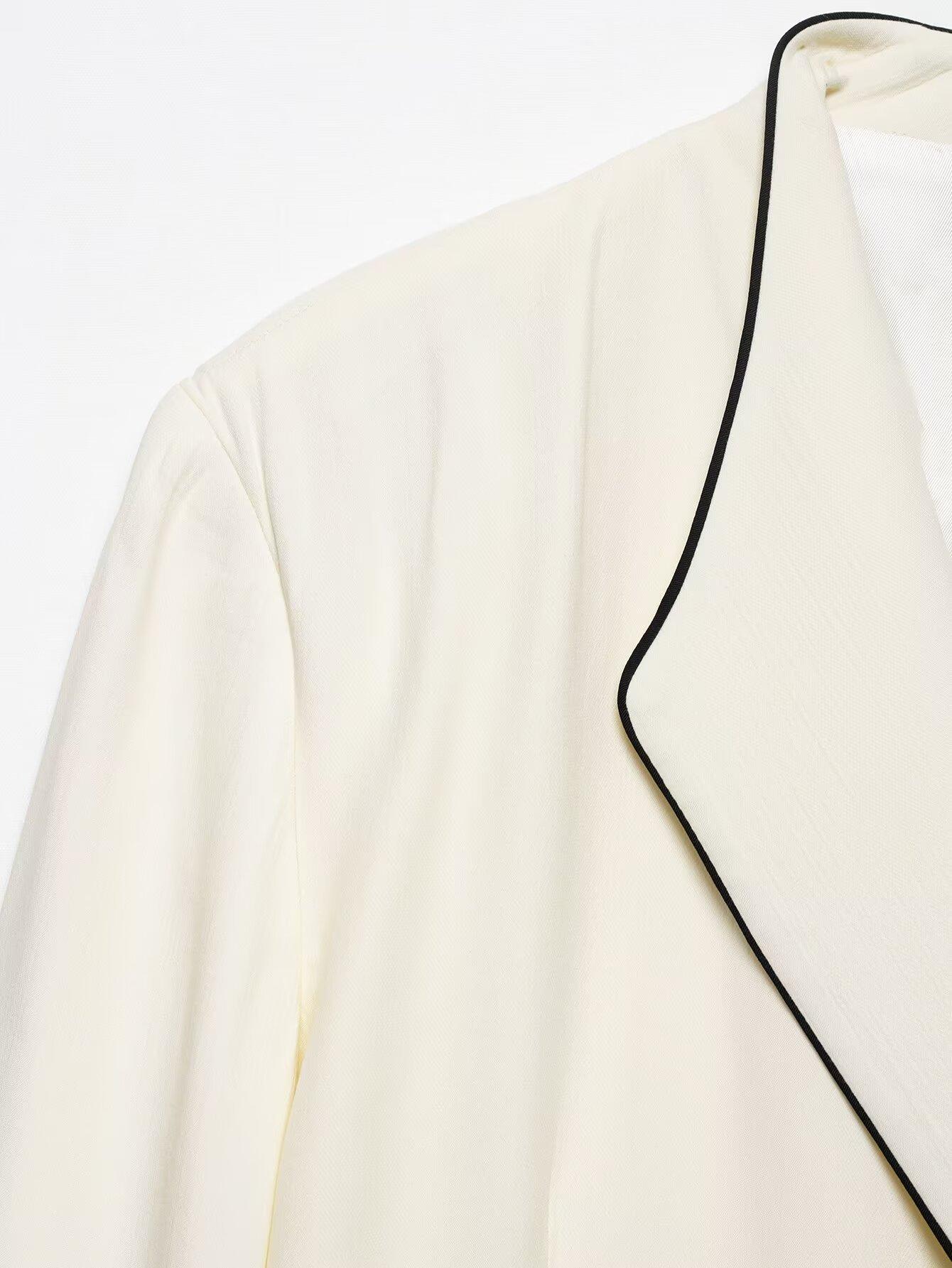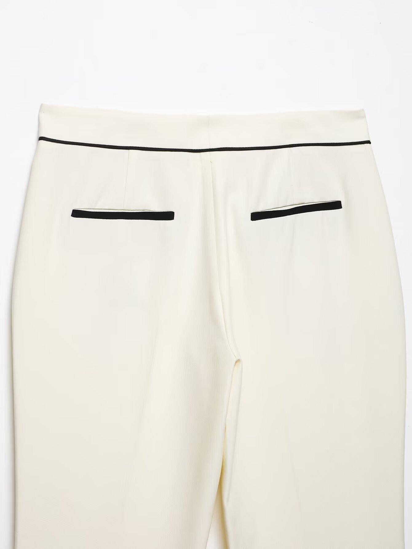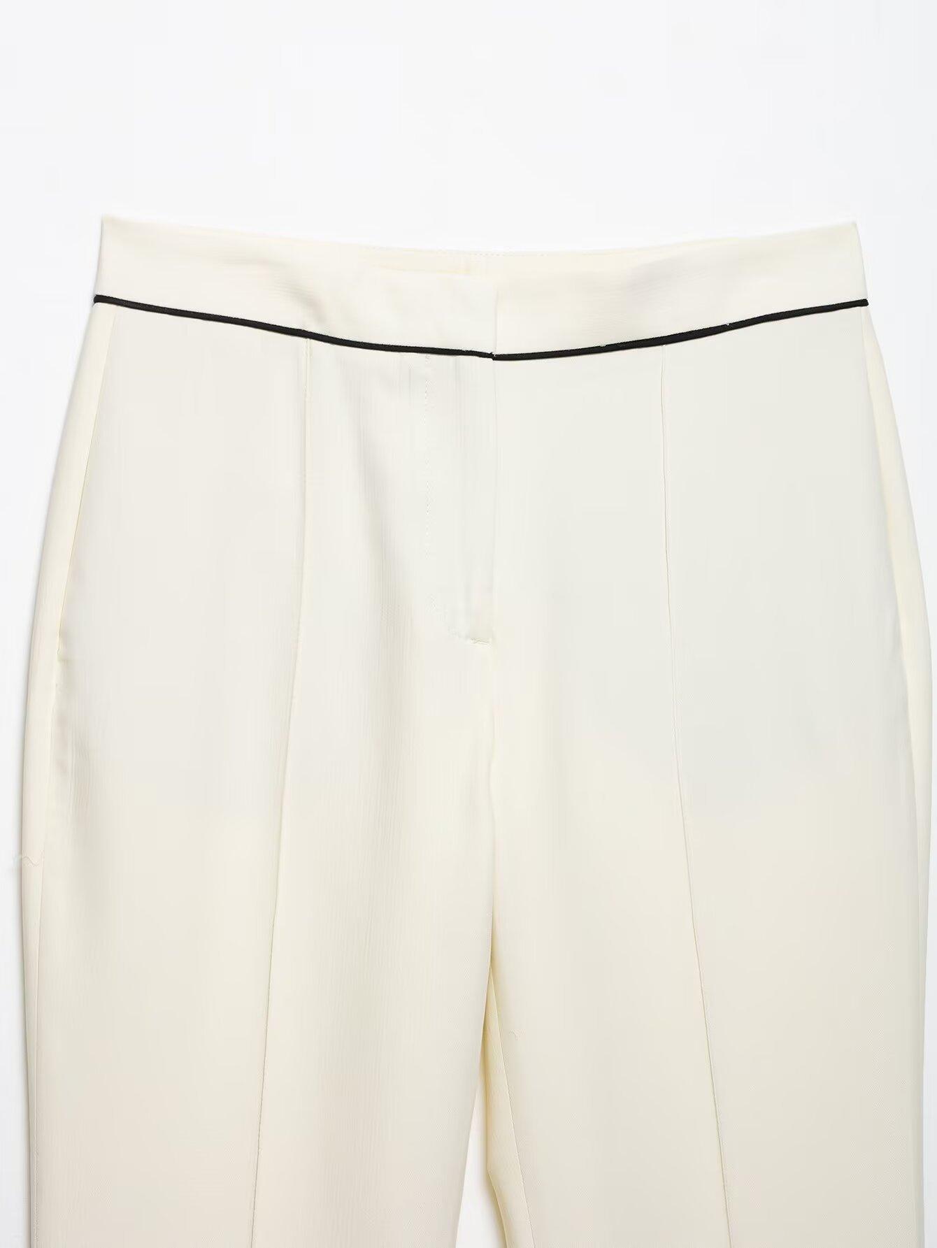 Exportación Transfronteriza Ropa de Mujer 2025 Verano Europeo y Americano Traje con Ribete de Color Contrastante Chaqueta + Traje de Pantalón Casual Mujer A36475/6