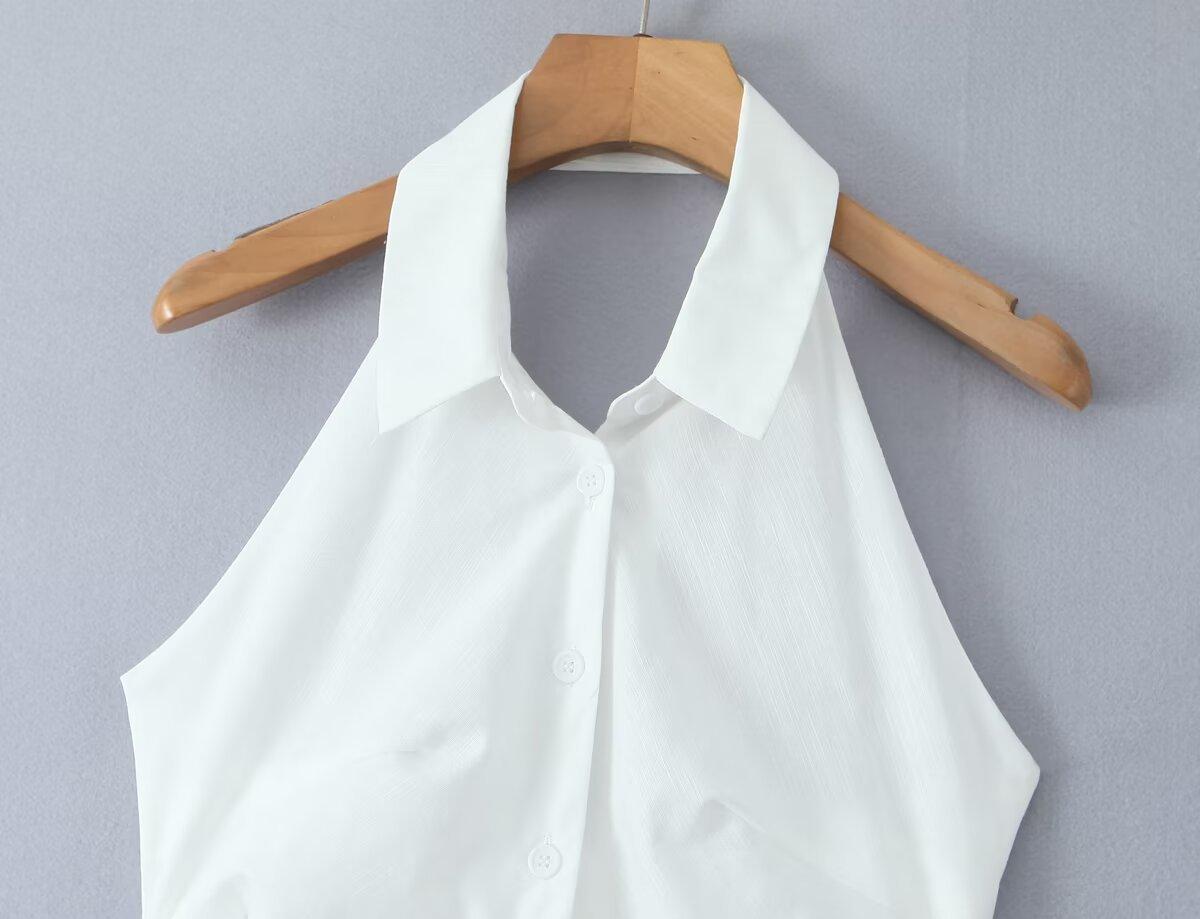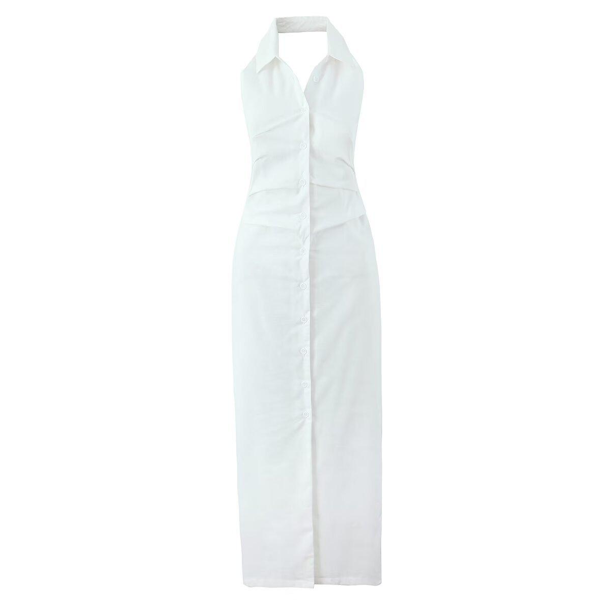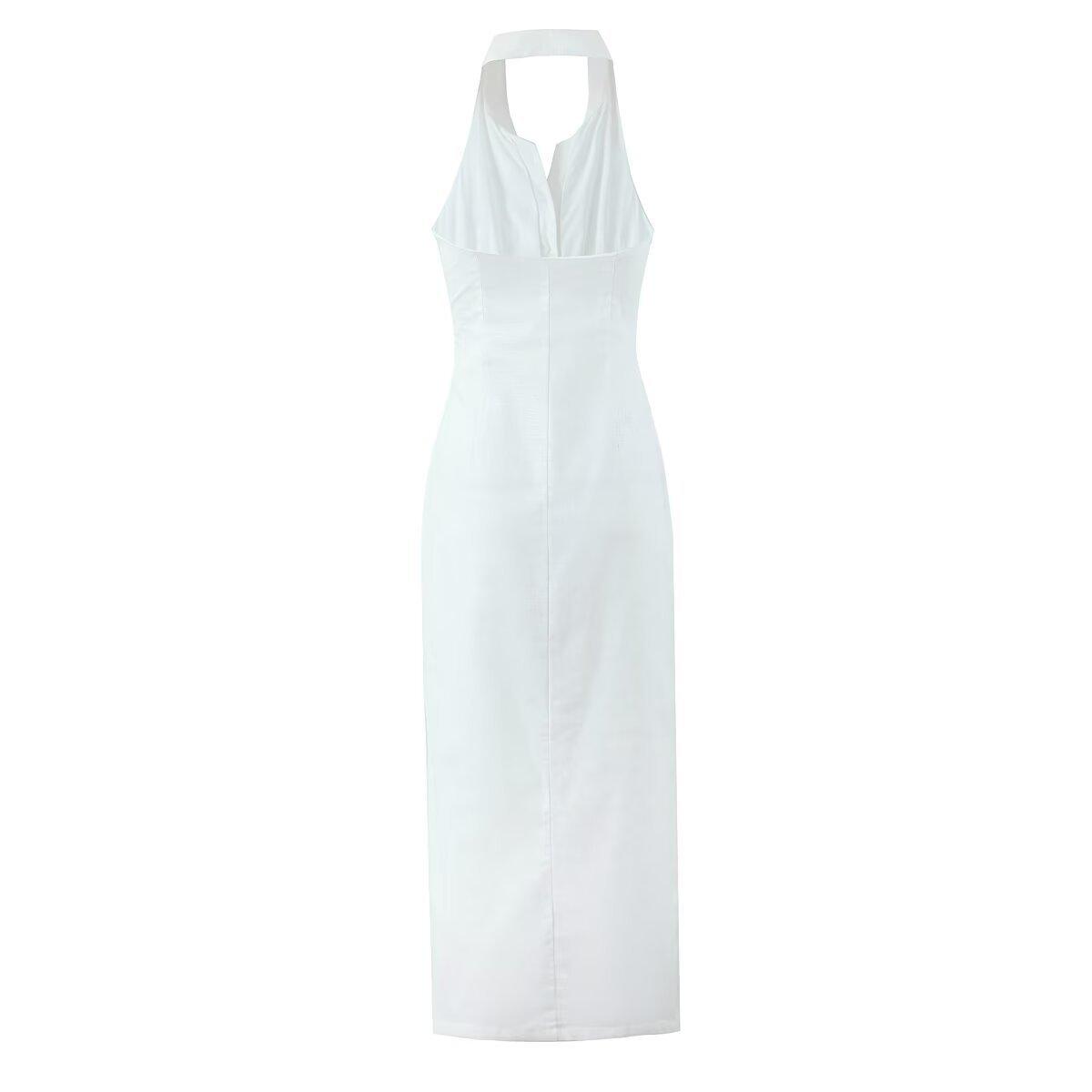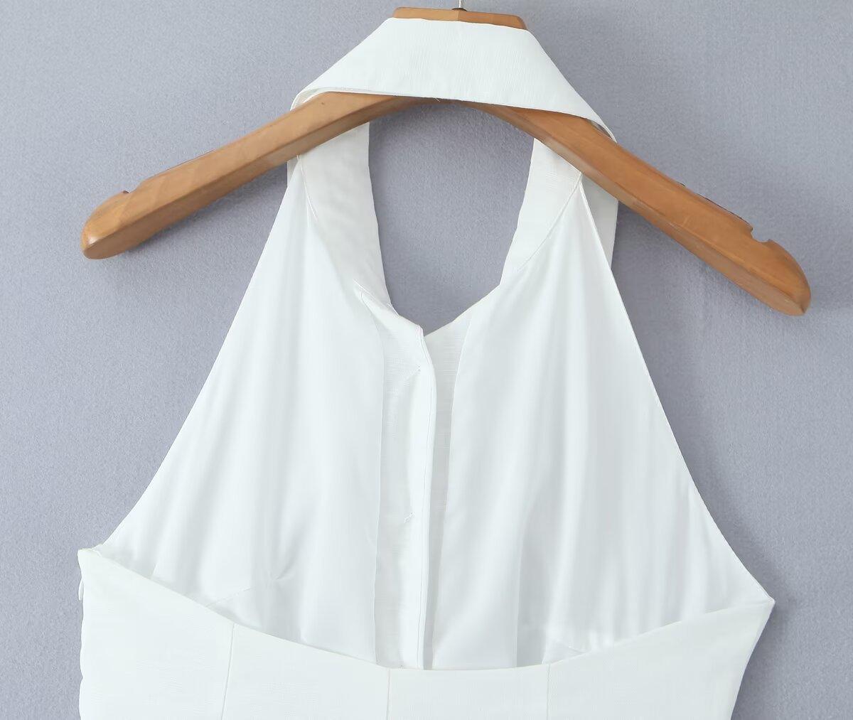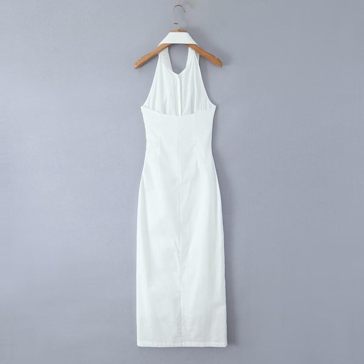 Vestido nuevo primavera verano 2025 estilo europeo y americano sexy cuello halter solapa un solo botón cintura ajustada