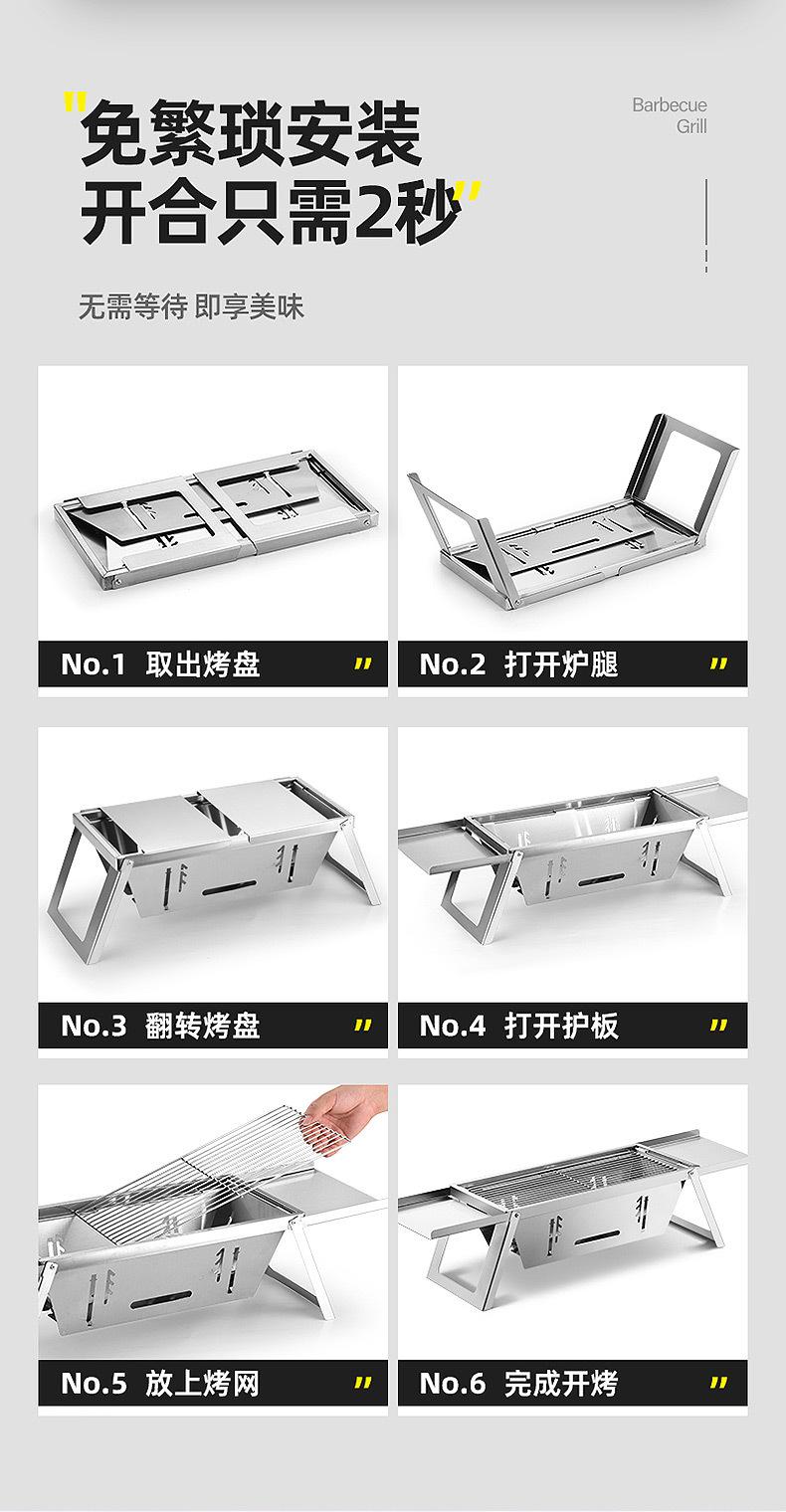 Compra Parrilla de Barbacoa de Acero Inoxidable para Exterior Carbón Engrosado Rejilla para Barbacoa Hogar Pequeña Plegable en un Segundo Parrilla para Brochetas de Carbón al por mayor en Joom.pro