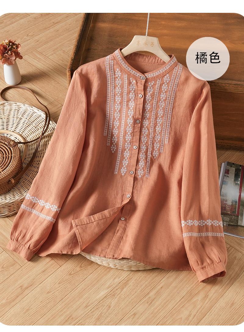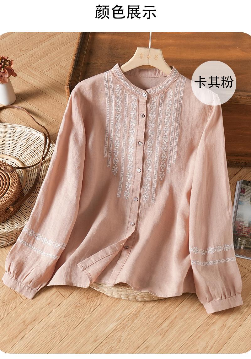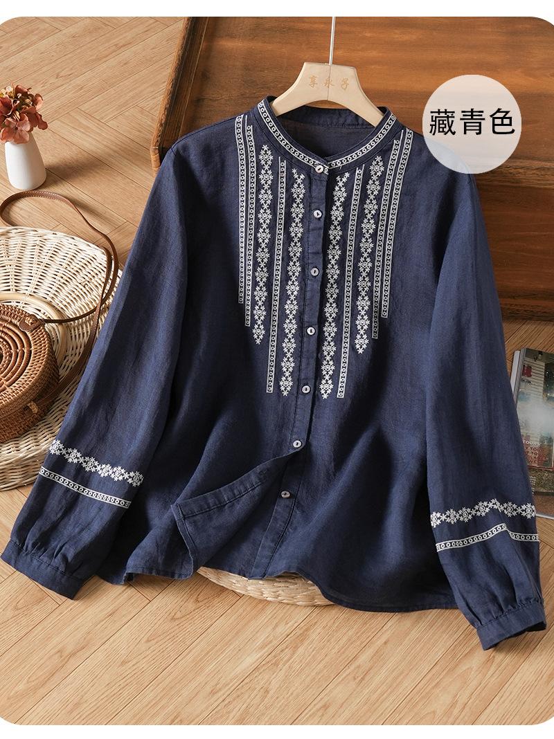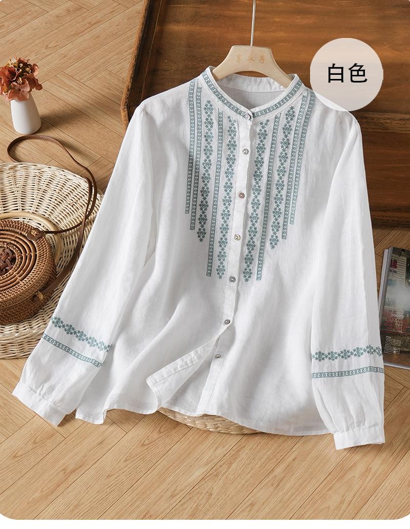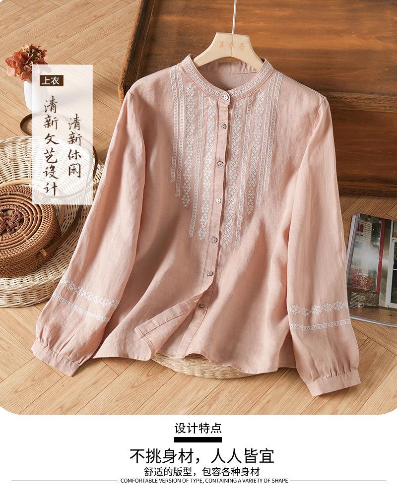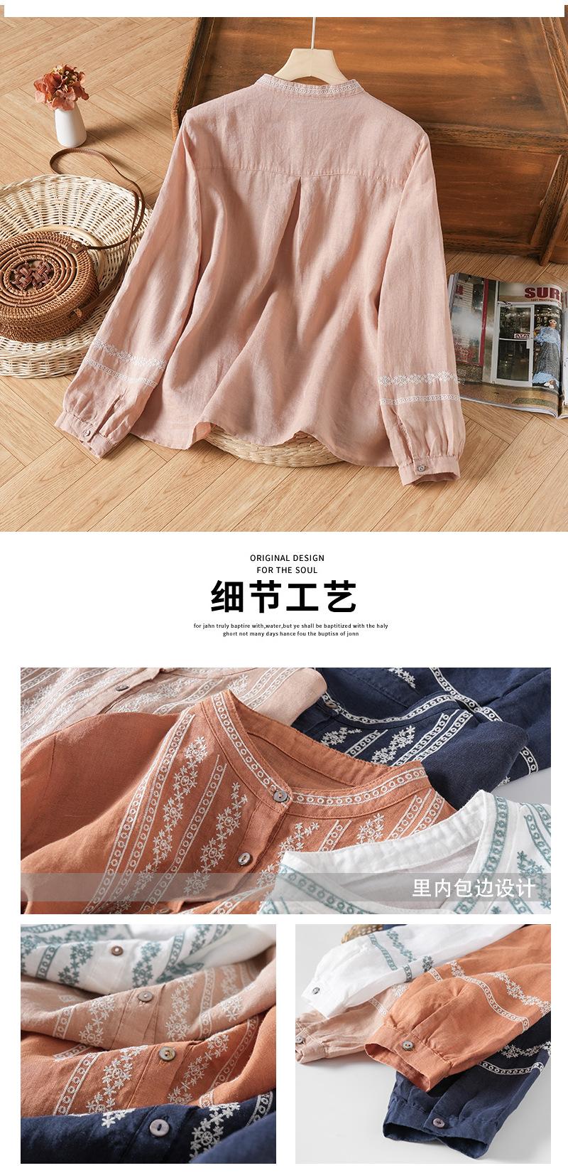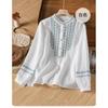 Compra Camisa sencilla de manga larga con bordado nuevo para primavera y otoño 2025 para mujer, top retro literario para mujer, versátil para mujer al por mayor en Joom.pro