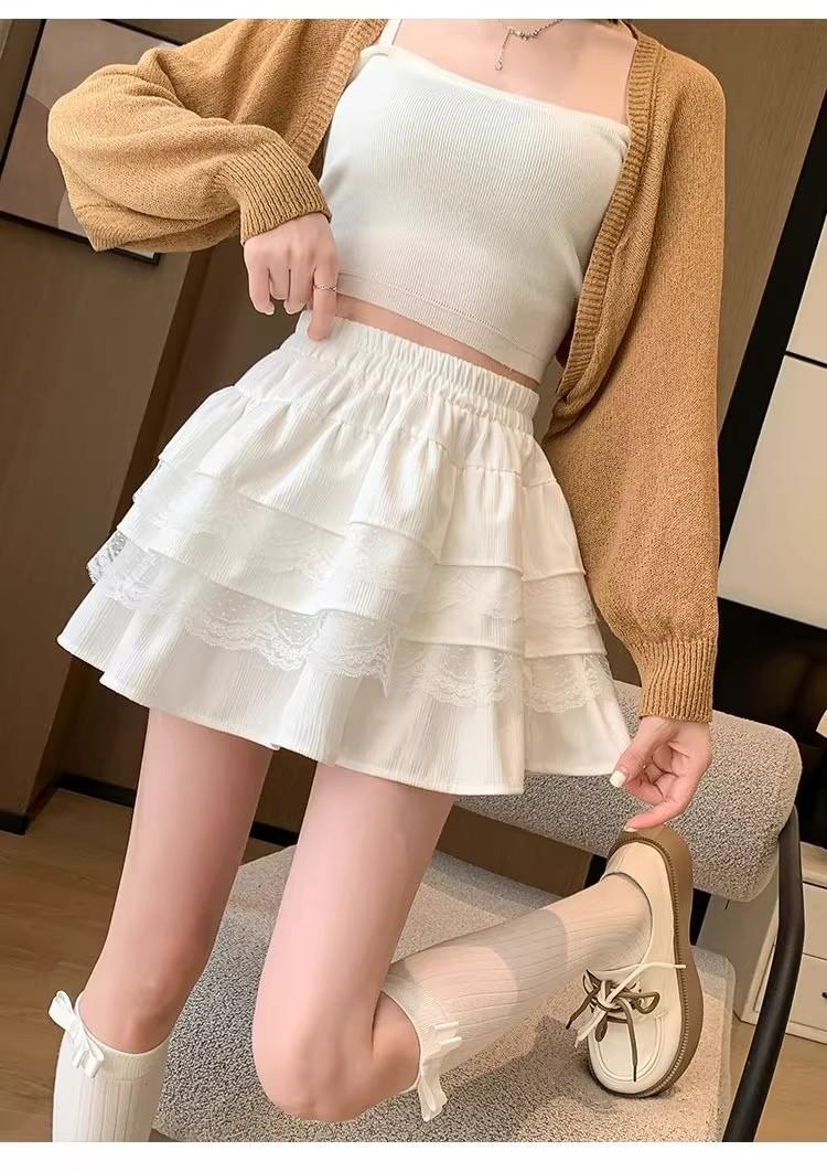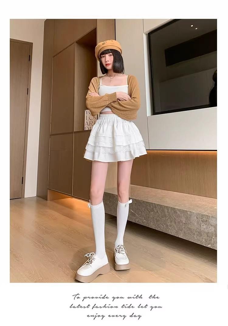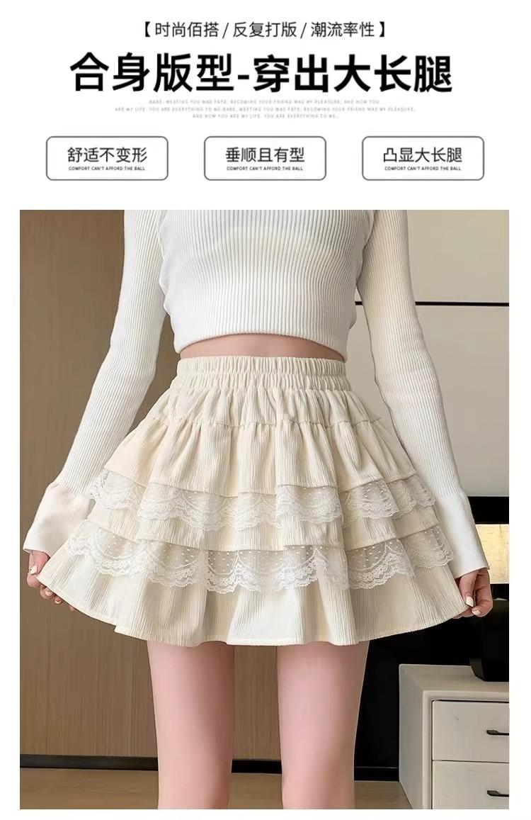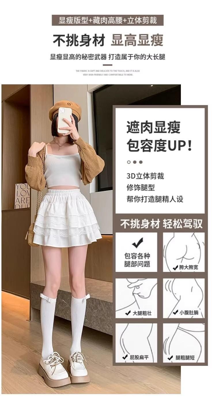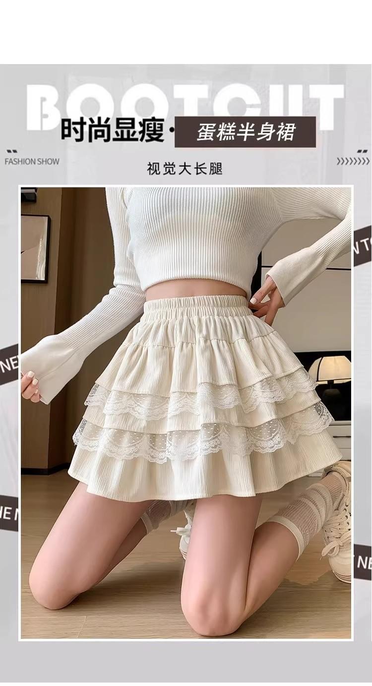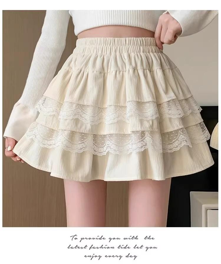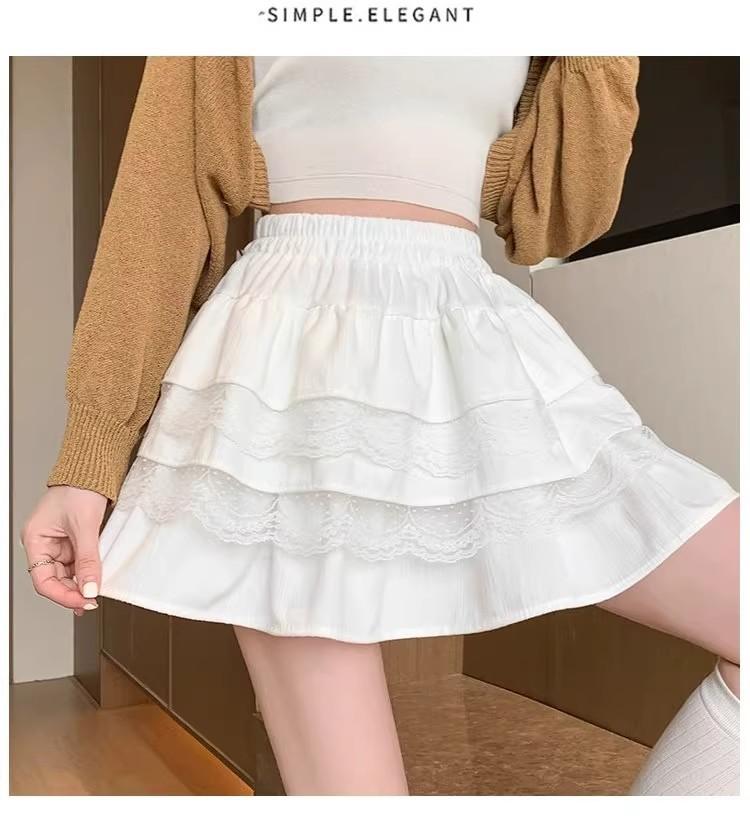 Compra Falda de Pastel de Encaje Blanco para Mujer Primavera y Otoño Ballet Petite Corta Cintura Alta Línea A Plisada Esponjosa al por mayor en Joom.pro
