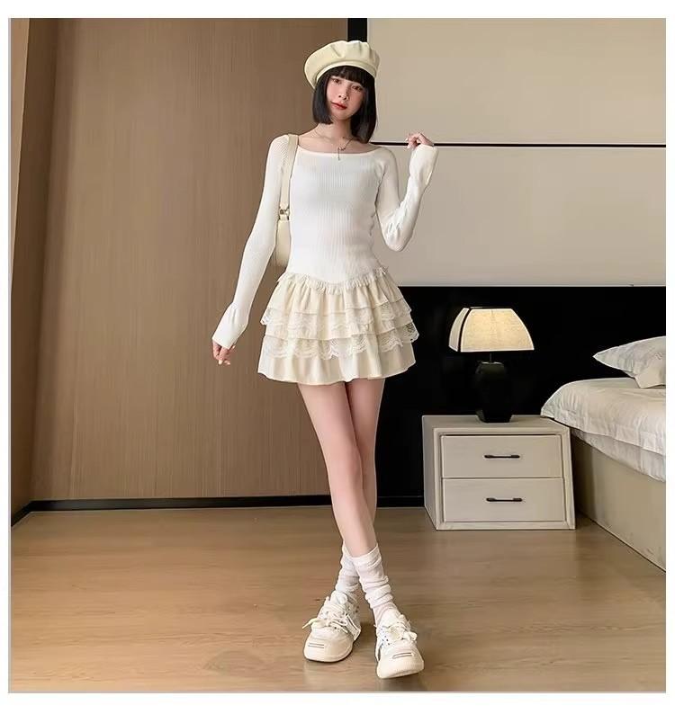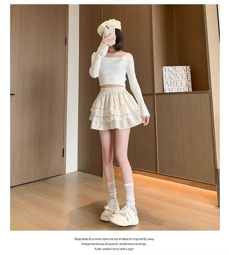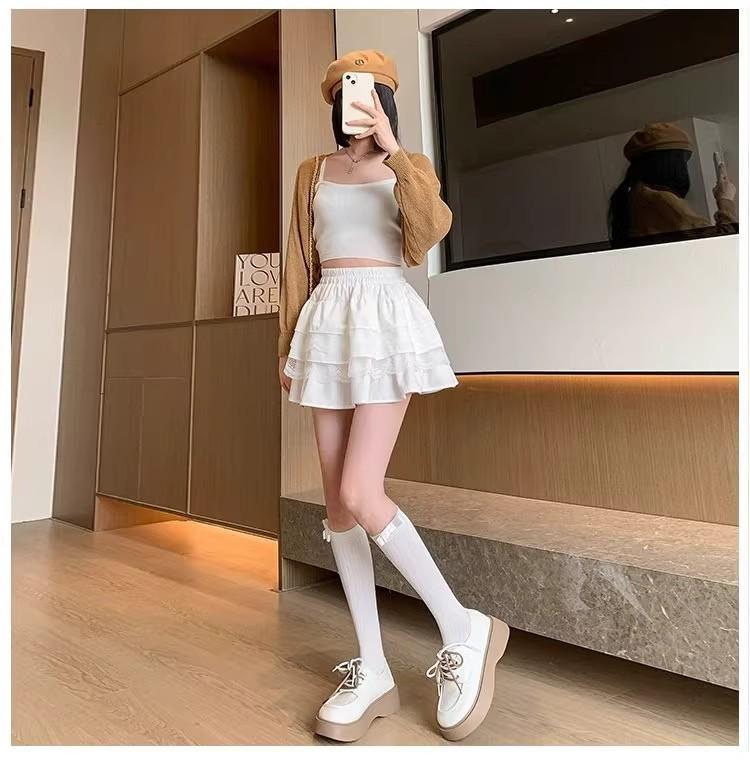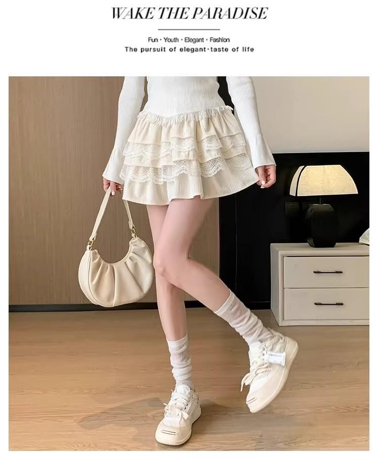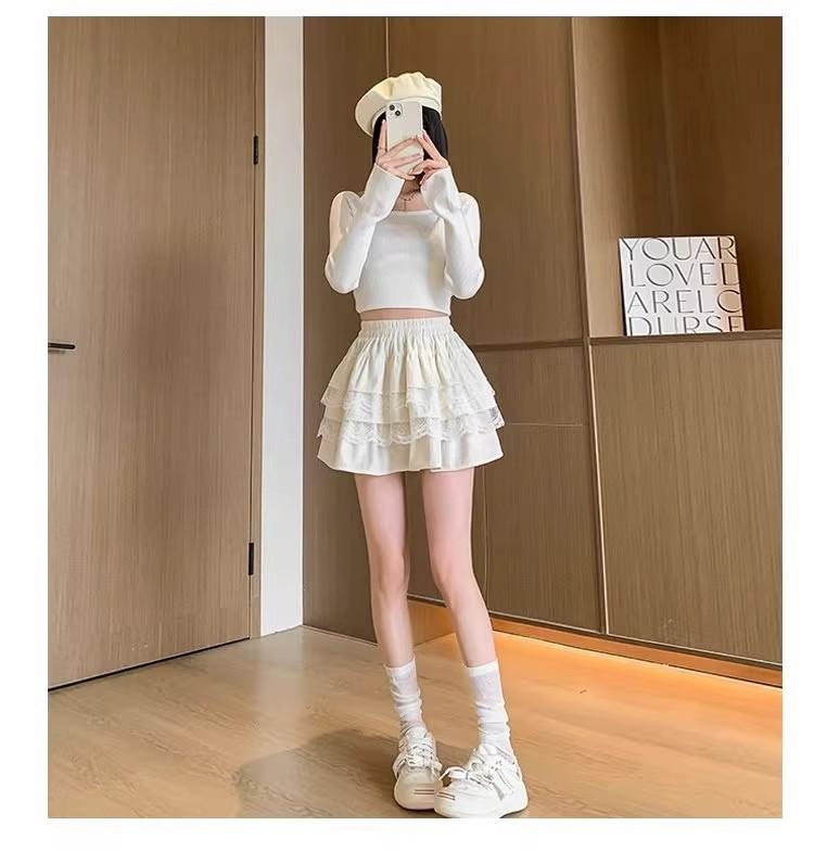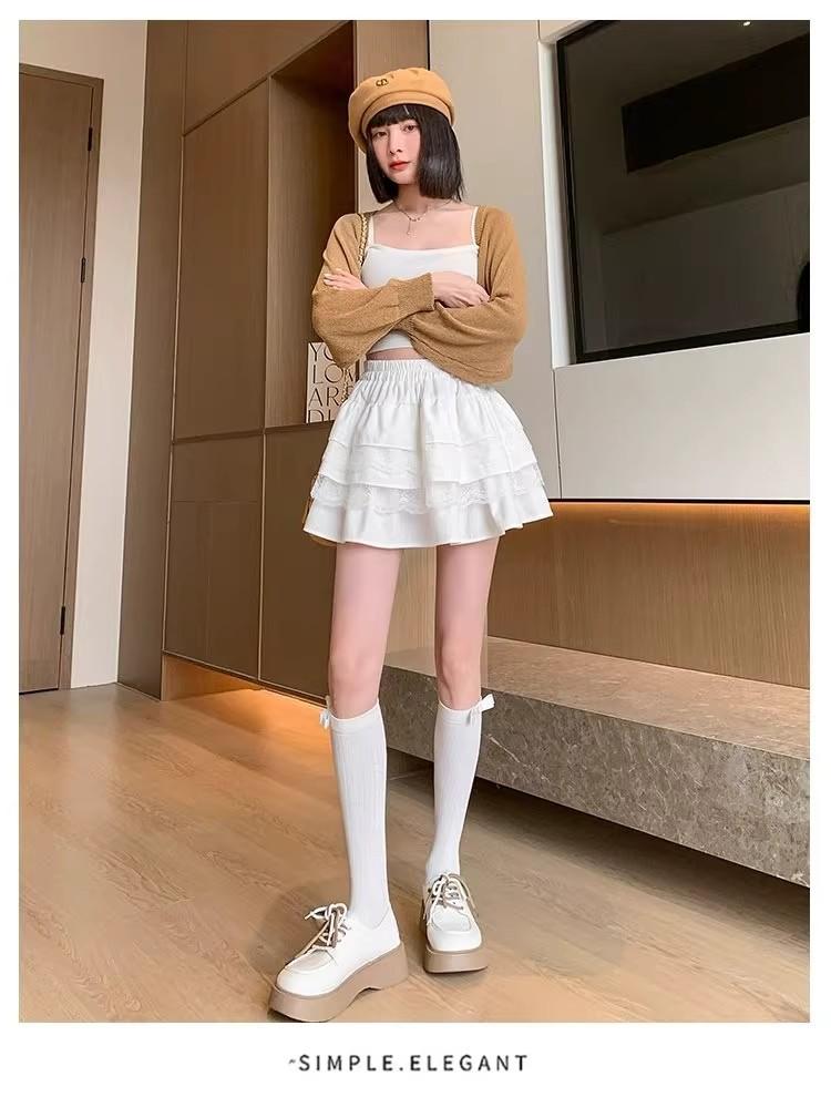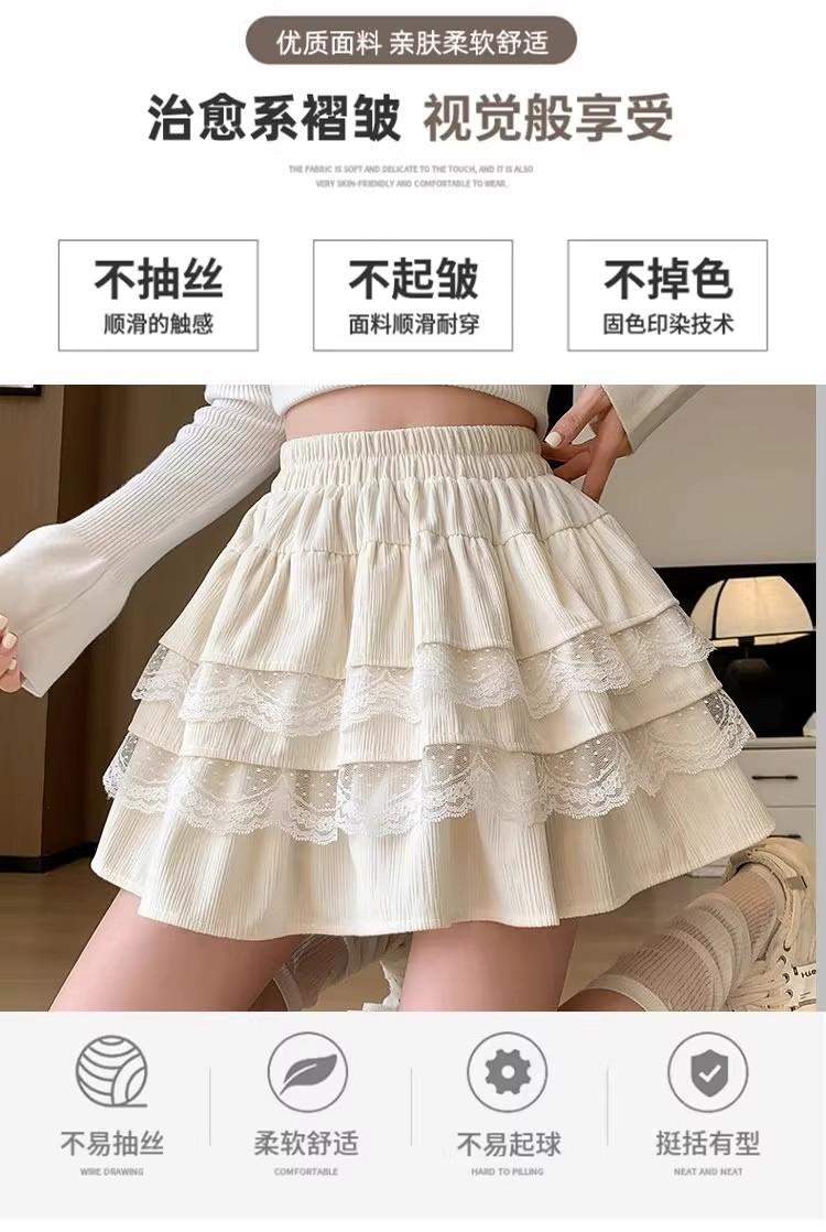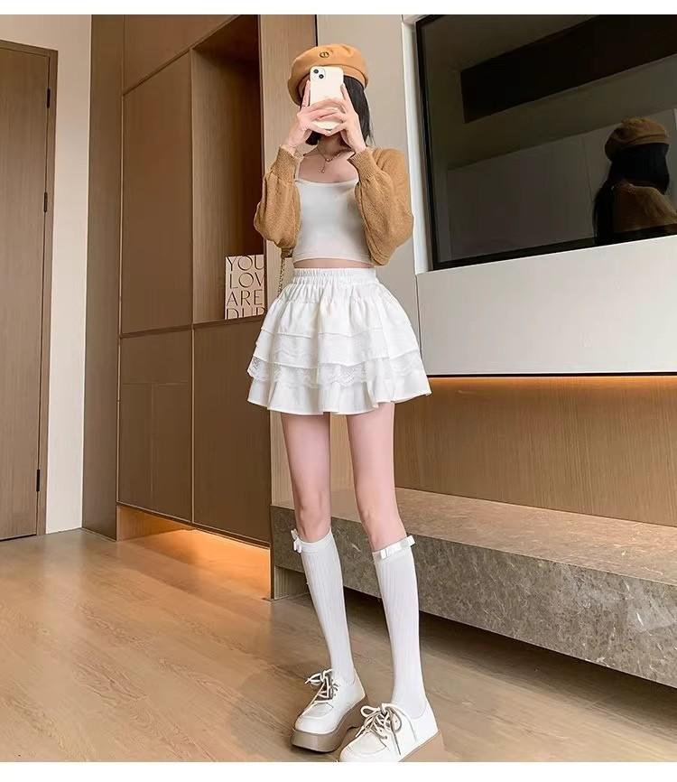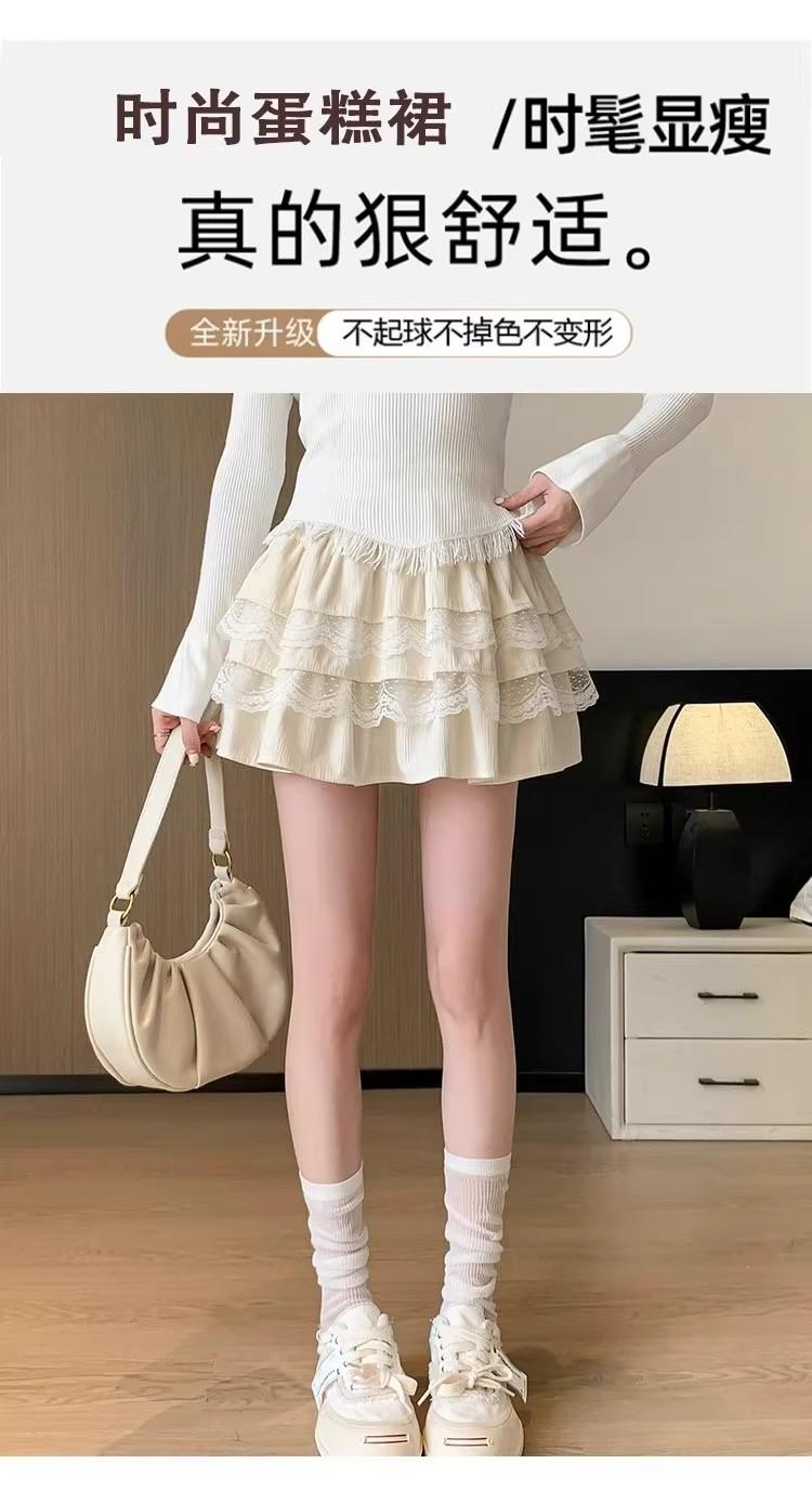 Compra Falda de Pastel de Encaje Blanco para Mujer Primavera y Otoño Ballet Petite Corta Cintura Alta Línea A Plisada Esponjosa al por mayor en Joom.pro