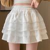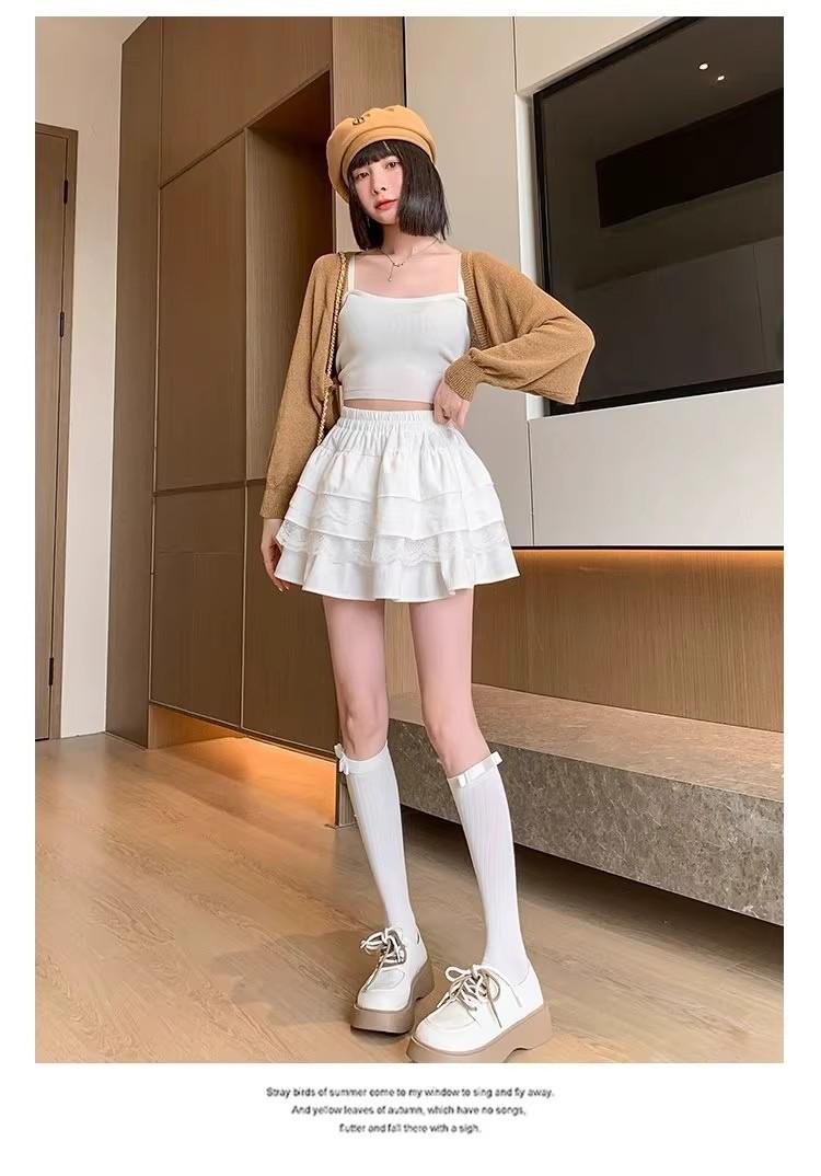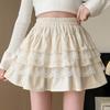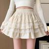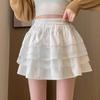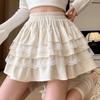 Falda de Pastel de Encaje Blanco para Mujer Primavera y Otoño Ballet Petite Corta Cintura Alta Línea A Plisada Esponjosa