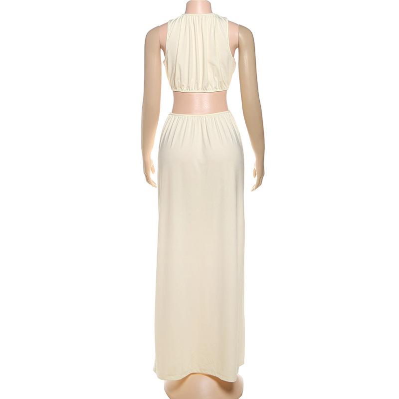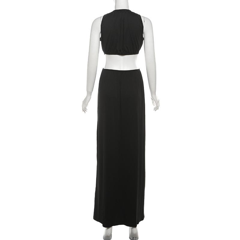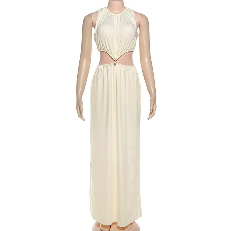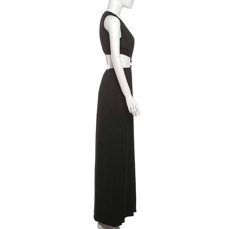 Compra Vestido largo sexy de moda para mujer de estilo europeo y americano transfronterizo, otoño 2025 nuevo, cuello redondo, sin mangas, color sólido al por mayor en Joom.pro