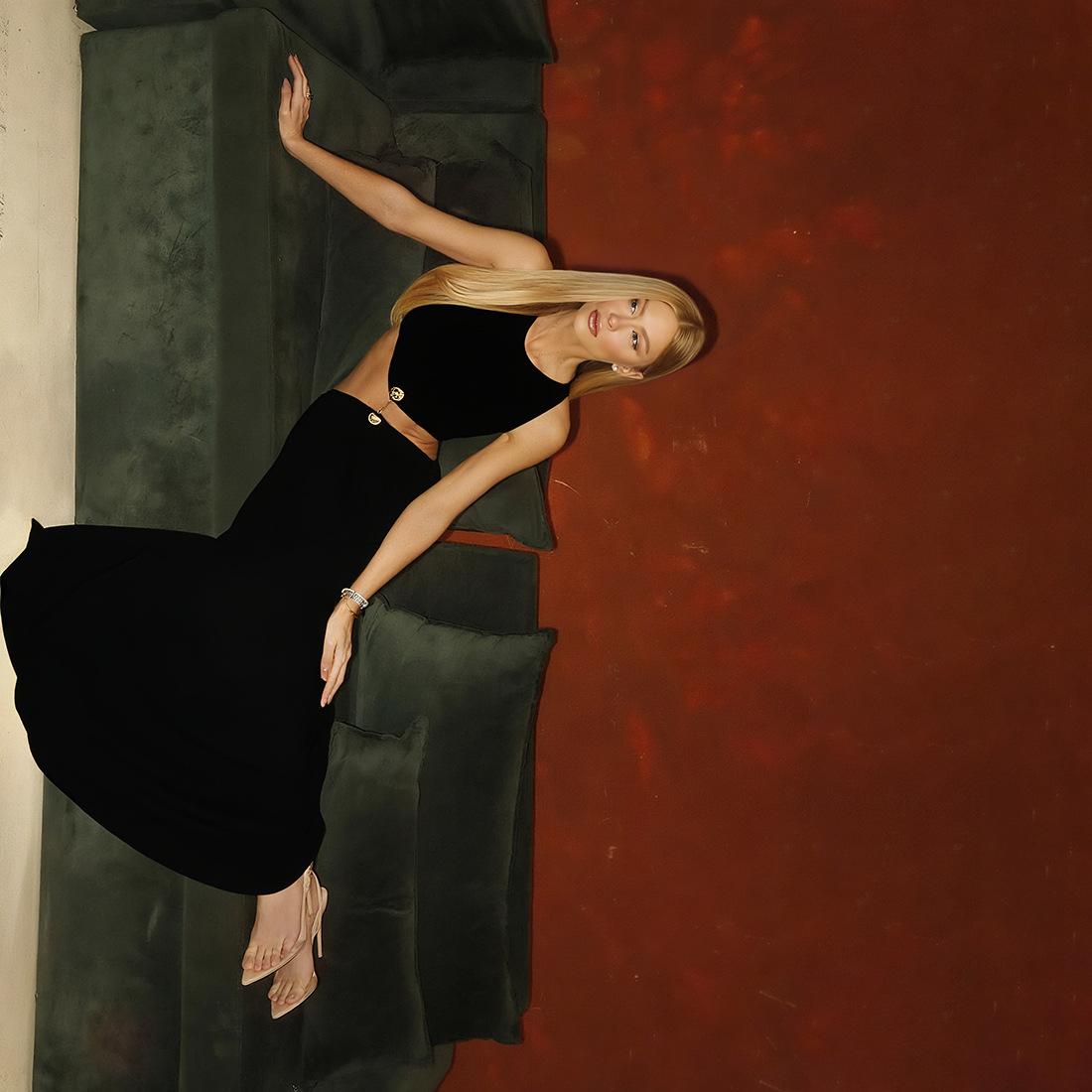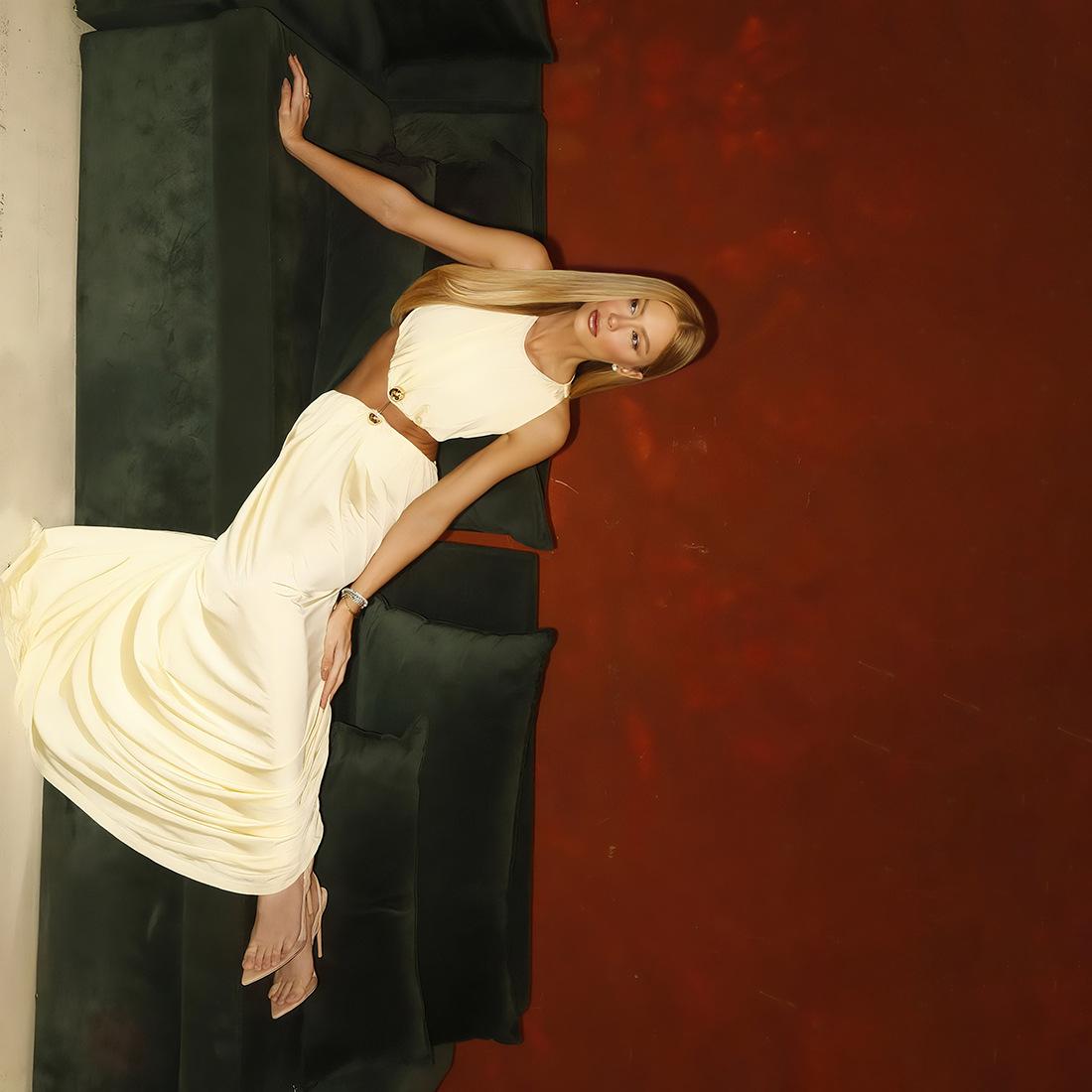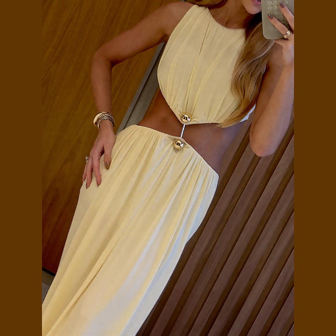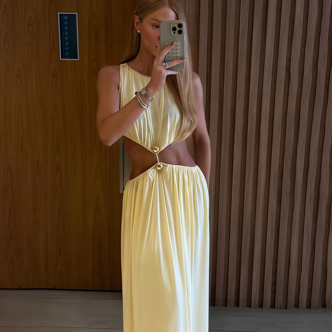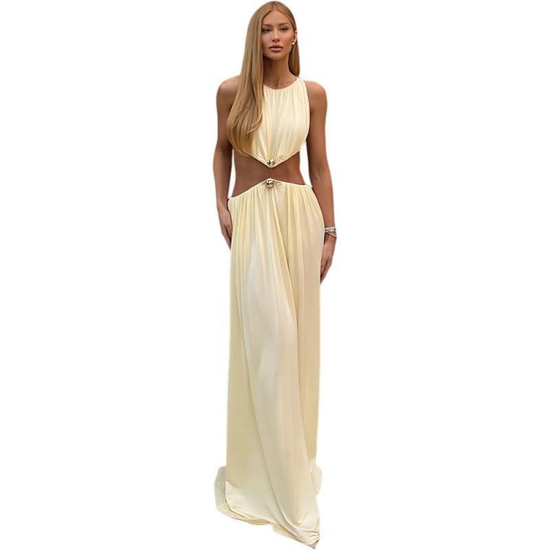 Vestido largo sexy de moda para mujer de estilo europeo y americano transfronterizo, otoño 2025 nuevo, cuello redondo, sin mangas, color sólido