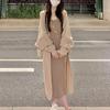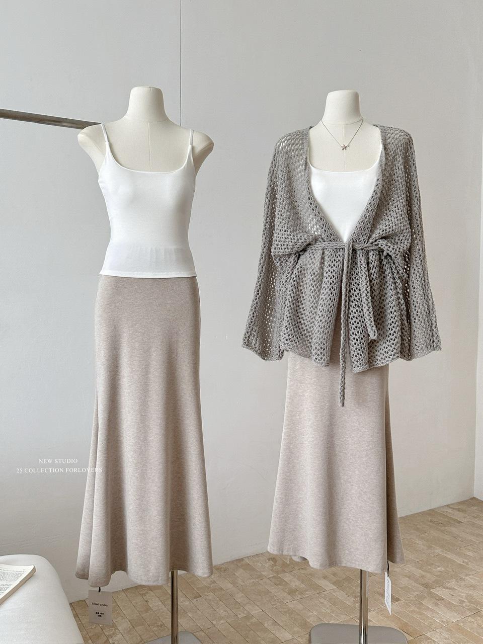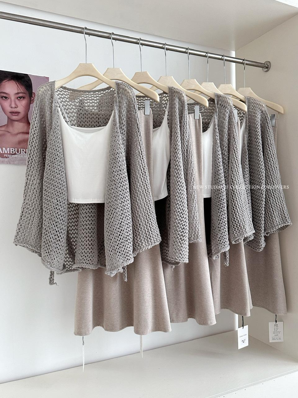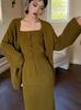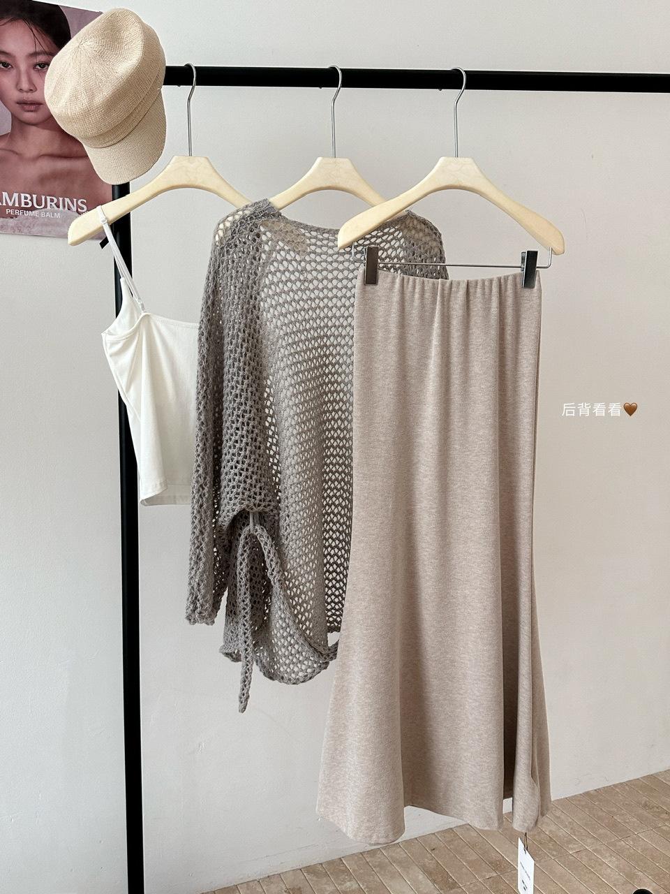 ¡Nuevo Otoño! Cárdigan de Punto Calado Suave + Camisola + Falda Cola de Pescado Set de Tres Piezas