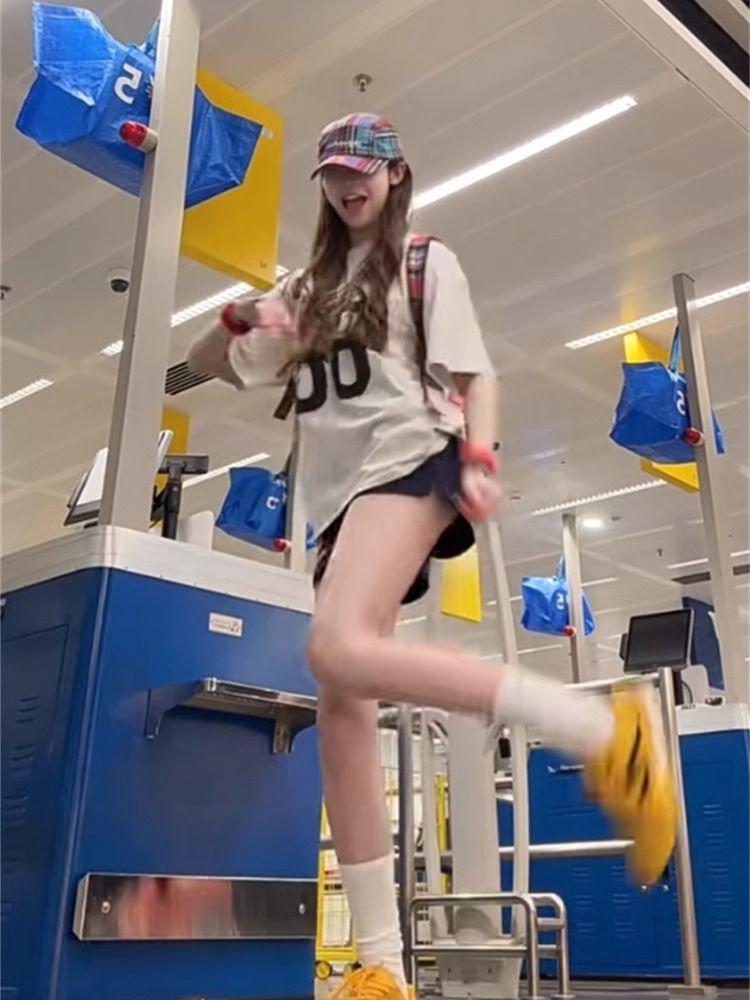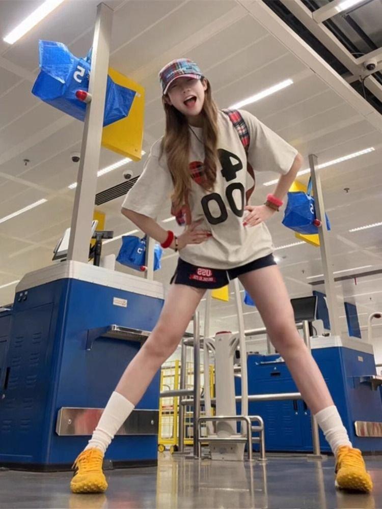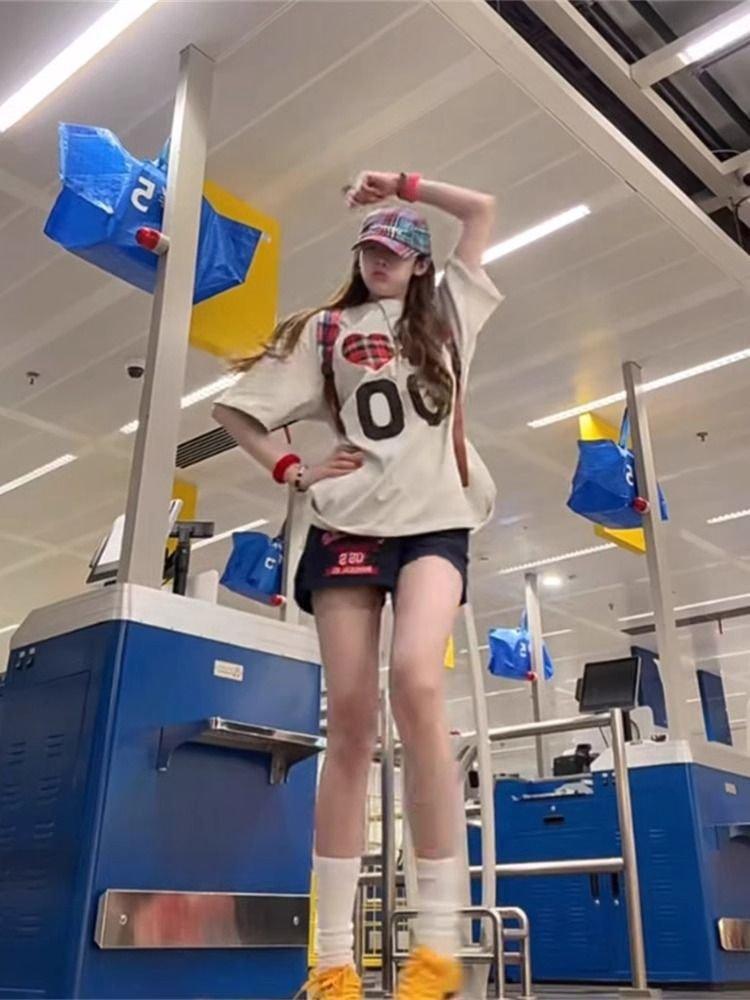 Camiseta de Manga Corta de Algodón Puro para Mujer Estilo Japonés Psicodélico Color Puro Estampada Manga Media Camiseta Top Camiseta Fresca Verano