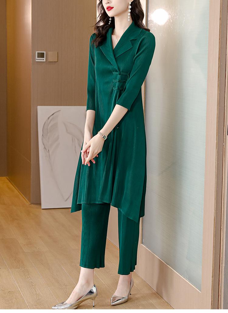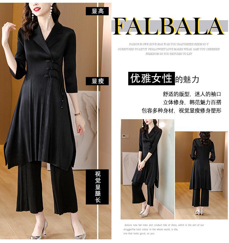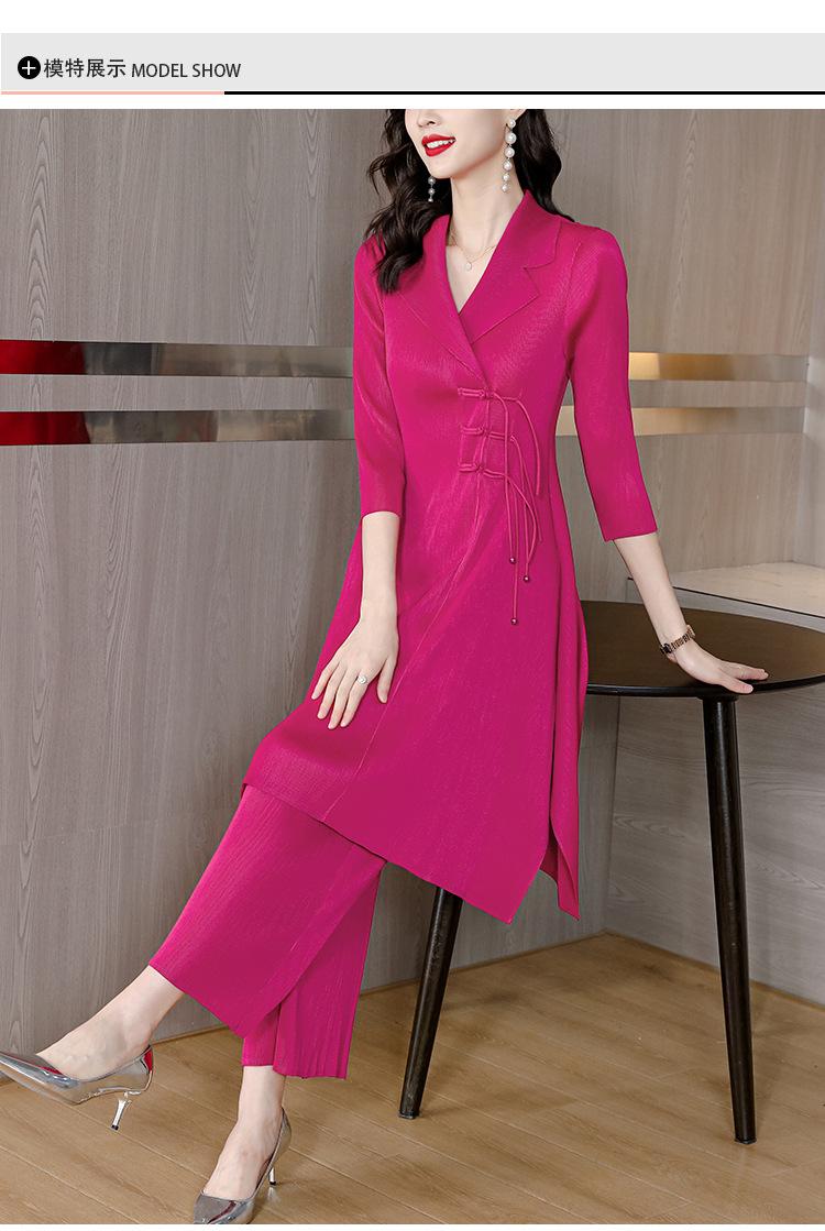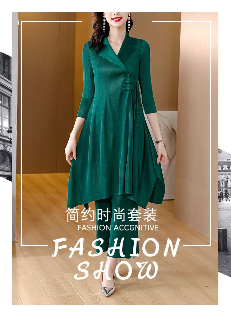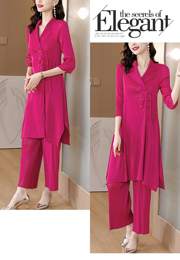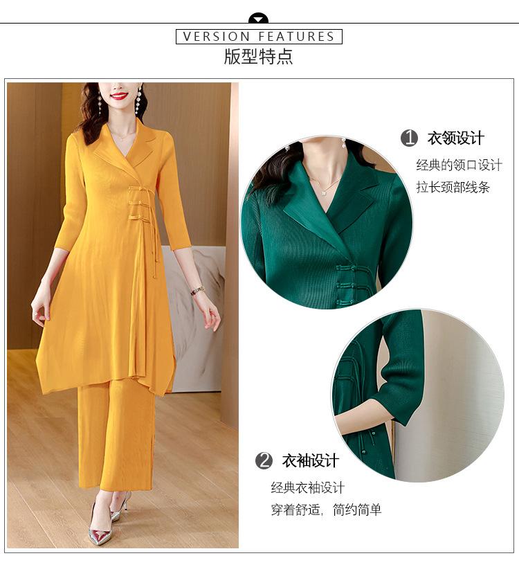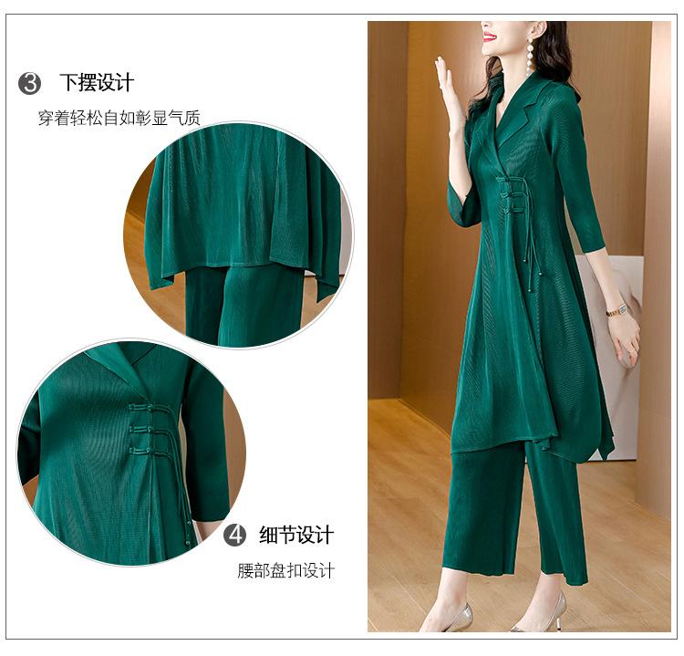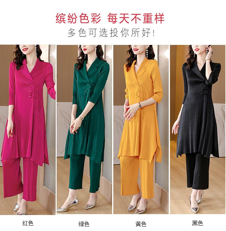 Compra Traje plisado 2025 Otoño Nuevo Mujer Color sólido Solapa Elegante Diosa Adelgazante Chaqueta Pantalón de pierna recta Traje al por mayor en Joom.pro