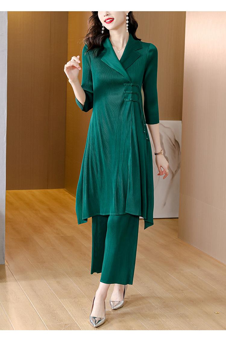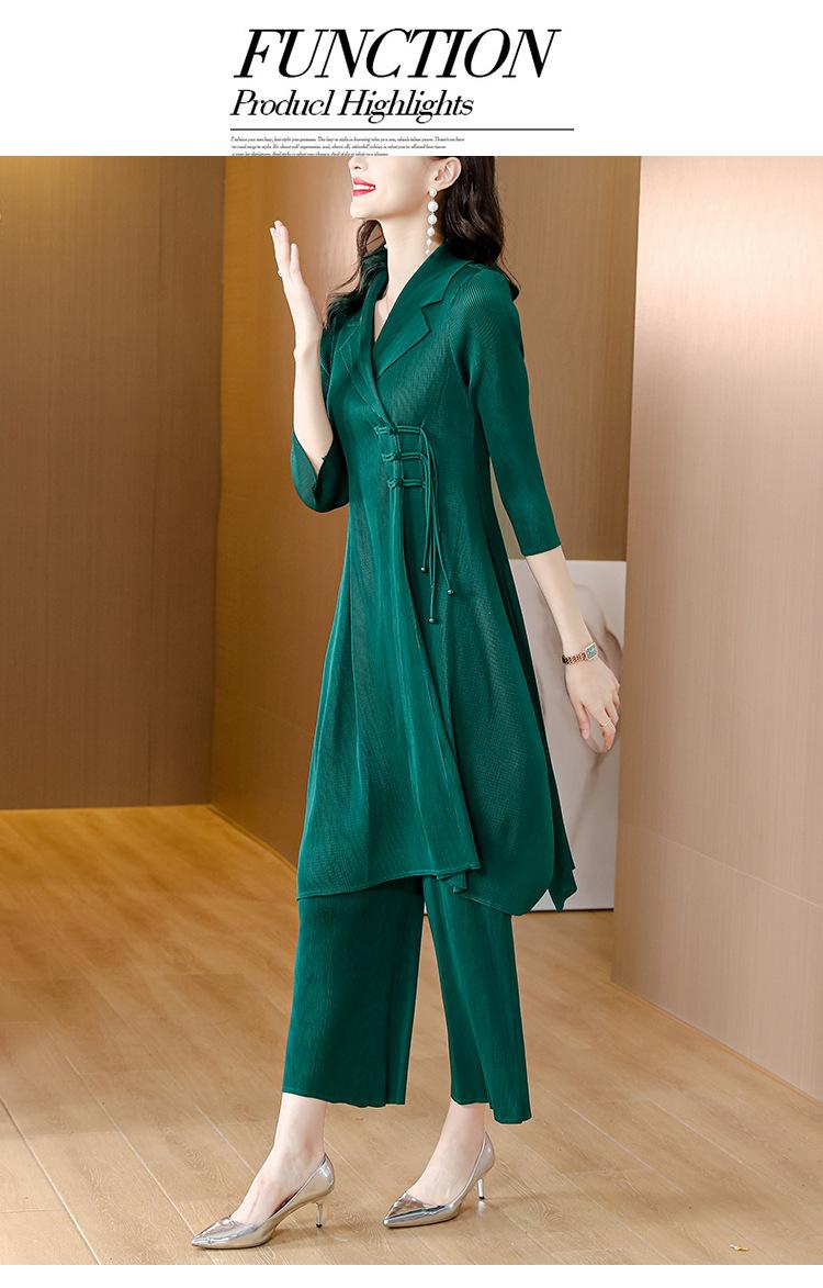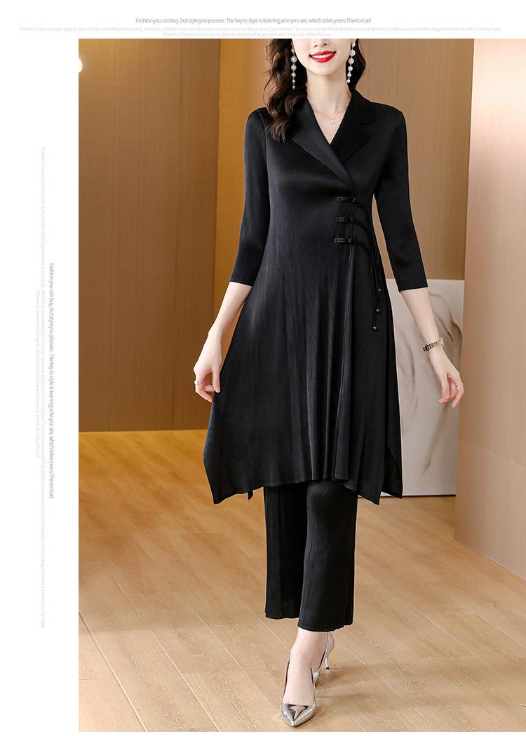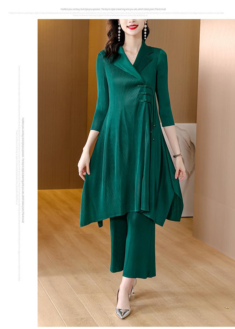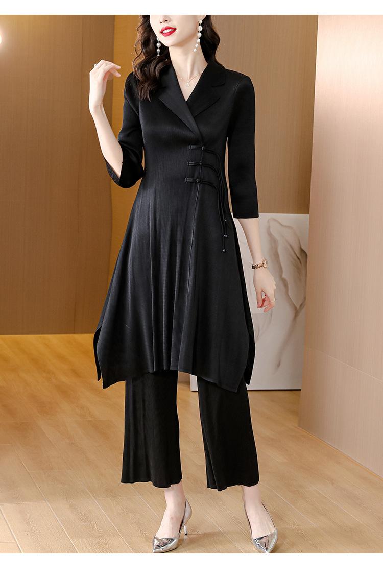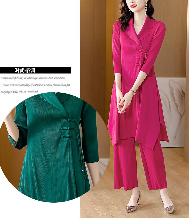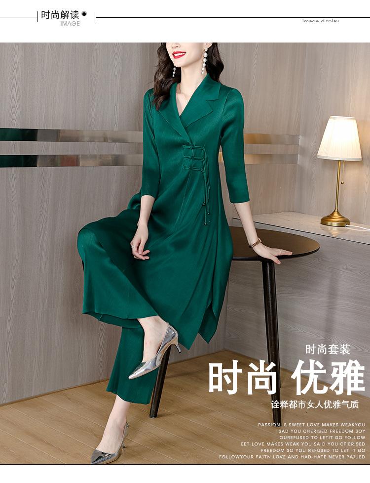 Compra Traje plisado 2025 Otoño Nuevo Mujer Color sólido Solapa Elegante Diosa Adelgazante Chaqueta Pantalón de pierna recta Traje al por mayor en Joom.pro