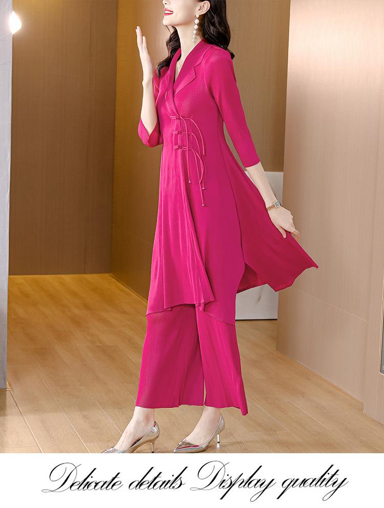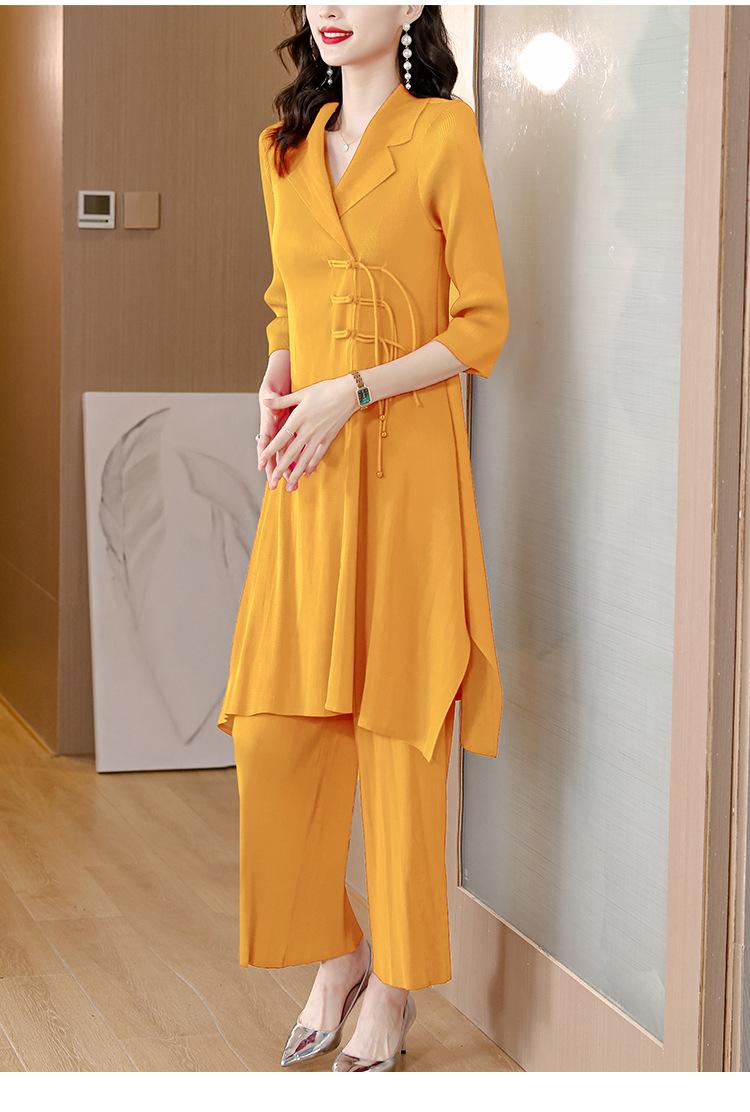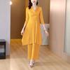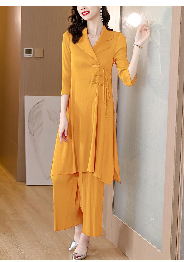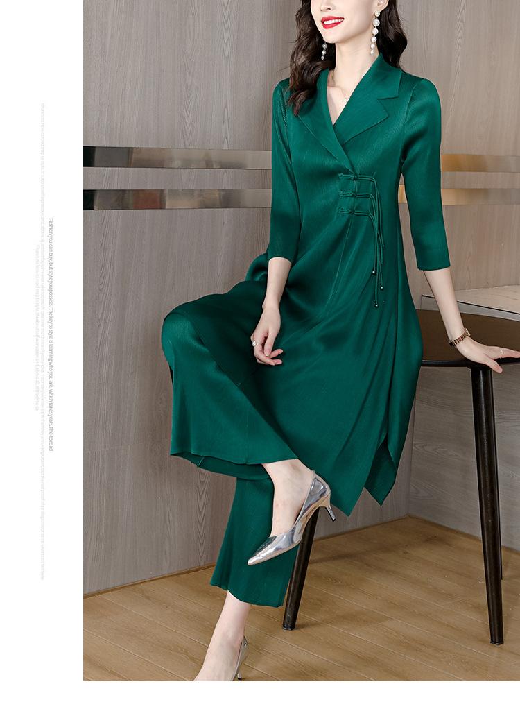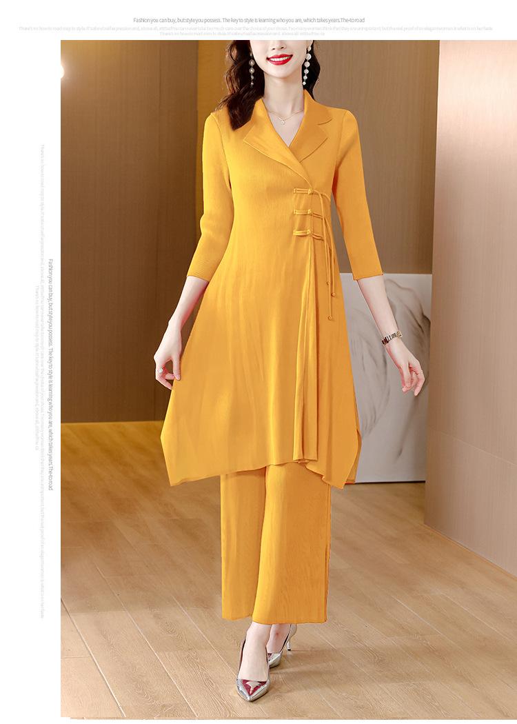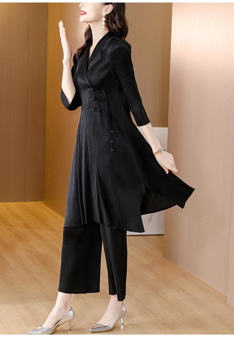 Compra Traje plisado 2025 Otoño Nuevo Mujer Color sólido Solapa Elegante Diosa Adelgazante Chaqueta Pantalón de pierna recta Traje al por mayor en Joom.pro