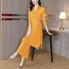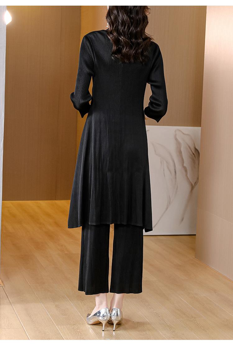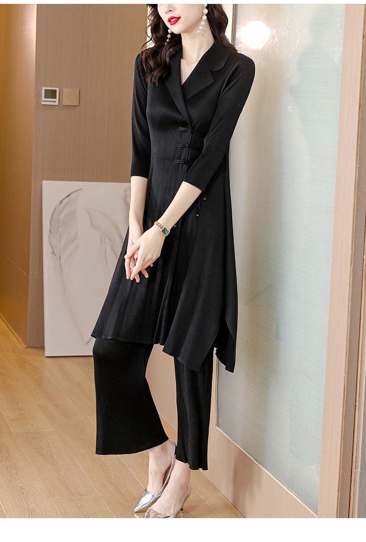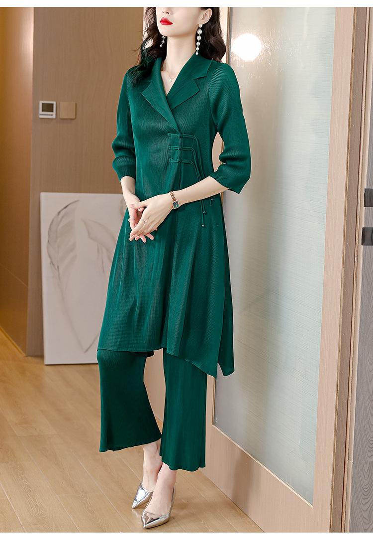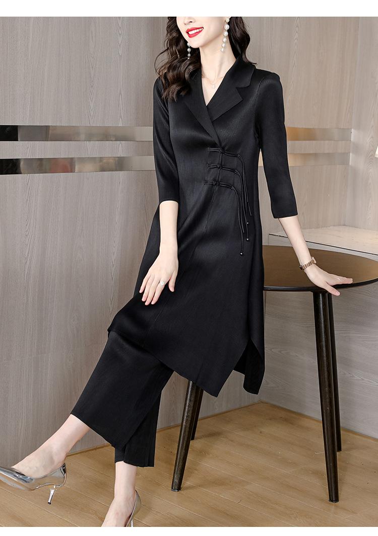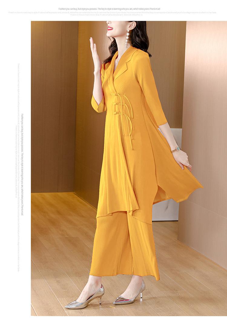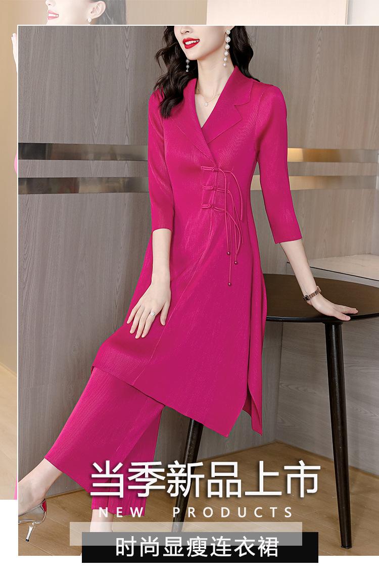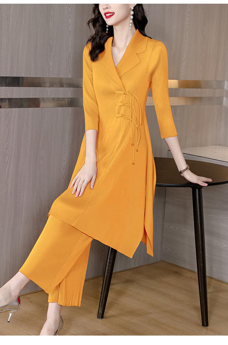 Compra Traje plisado 2025 Otoño Nuevo Mujer Color sólido Solapa Elegante Diosa Adelgazante Chaqueta Pantalón de pierna recta Traje al por mayor en Joom.pro