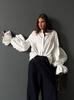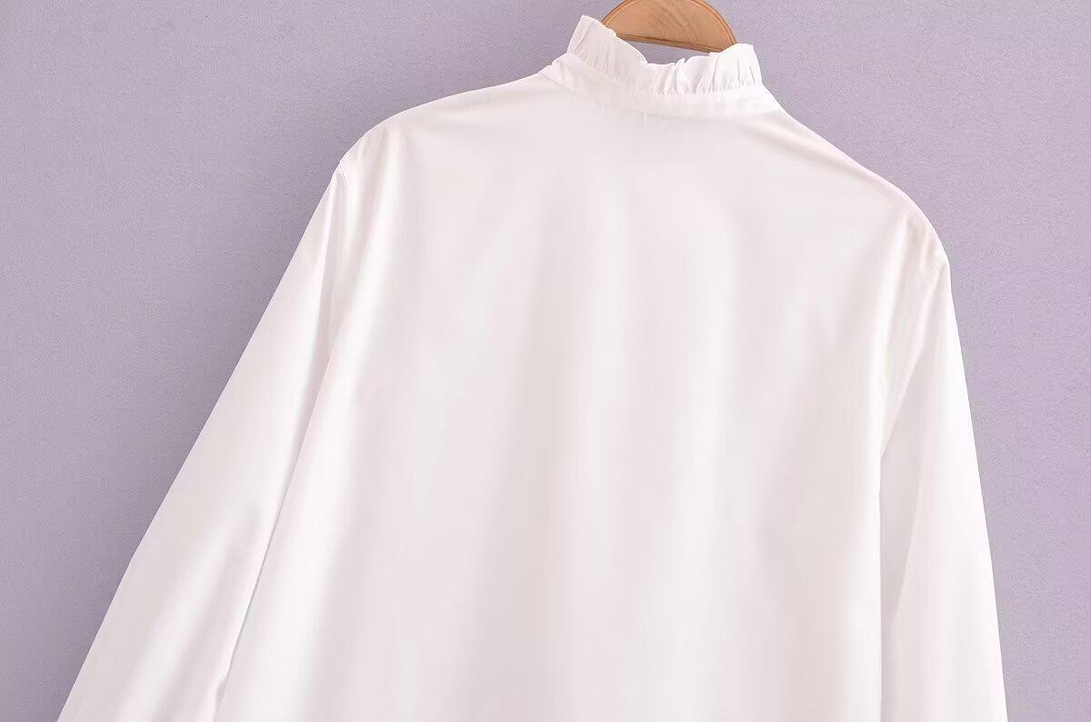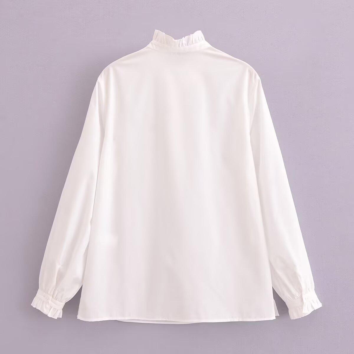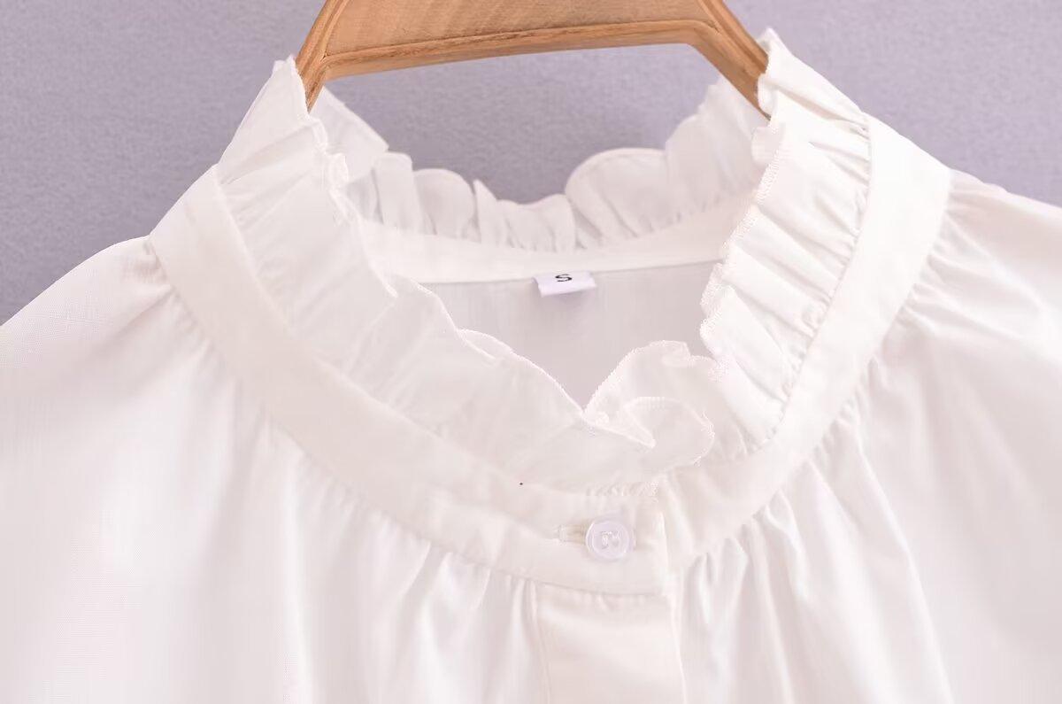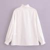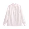 Z Estilo europeo y americano 2025 verano nueva ropa de mujer retro holgada casual simple camisa de manga larga con cuello alto fruncida manga farol