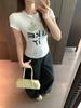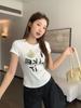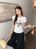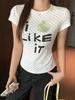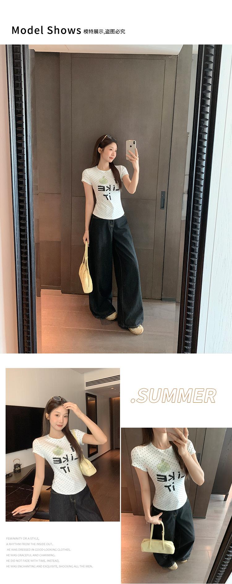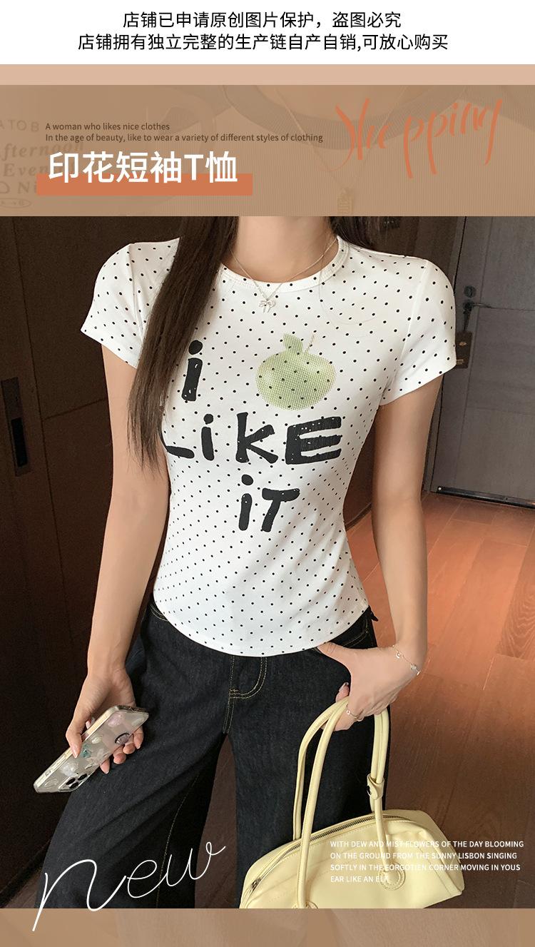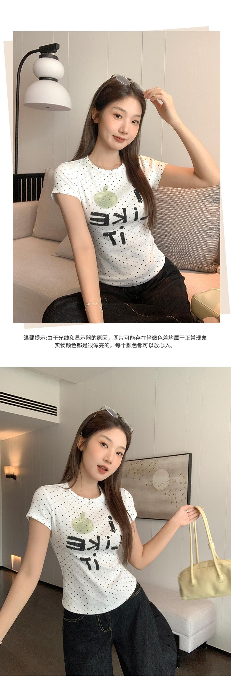Playera de Lunares con Estampado de Letras de Cuello Redondo y Manga Corta para Mujer Verano 2025 Nuevo Top Único con Aspecto Adelgazante