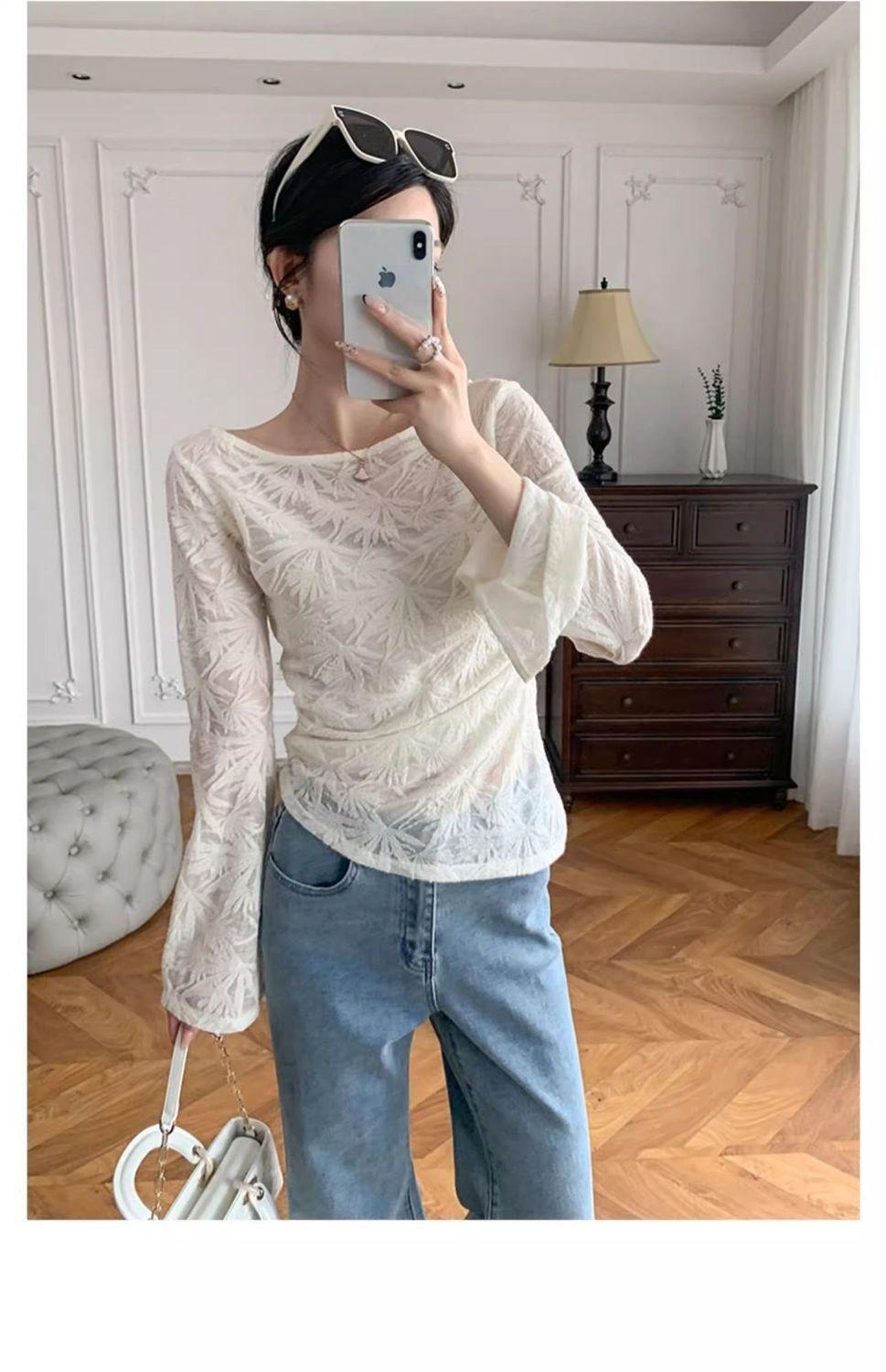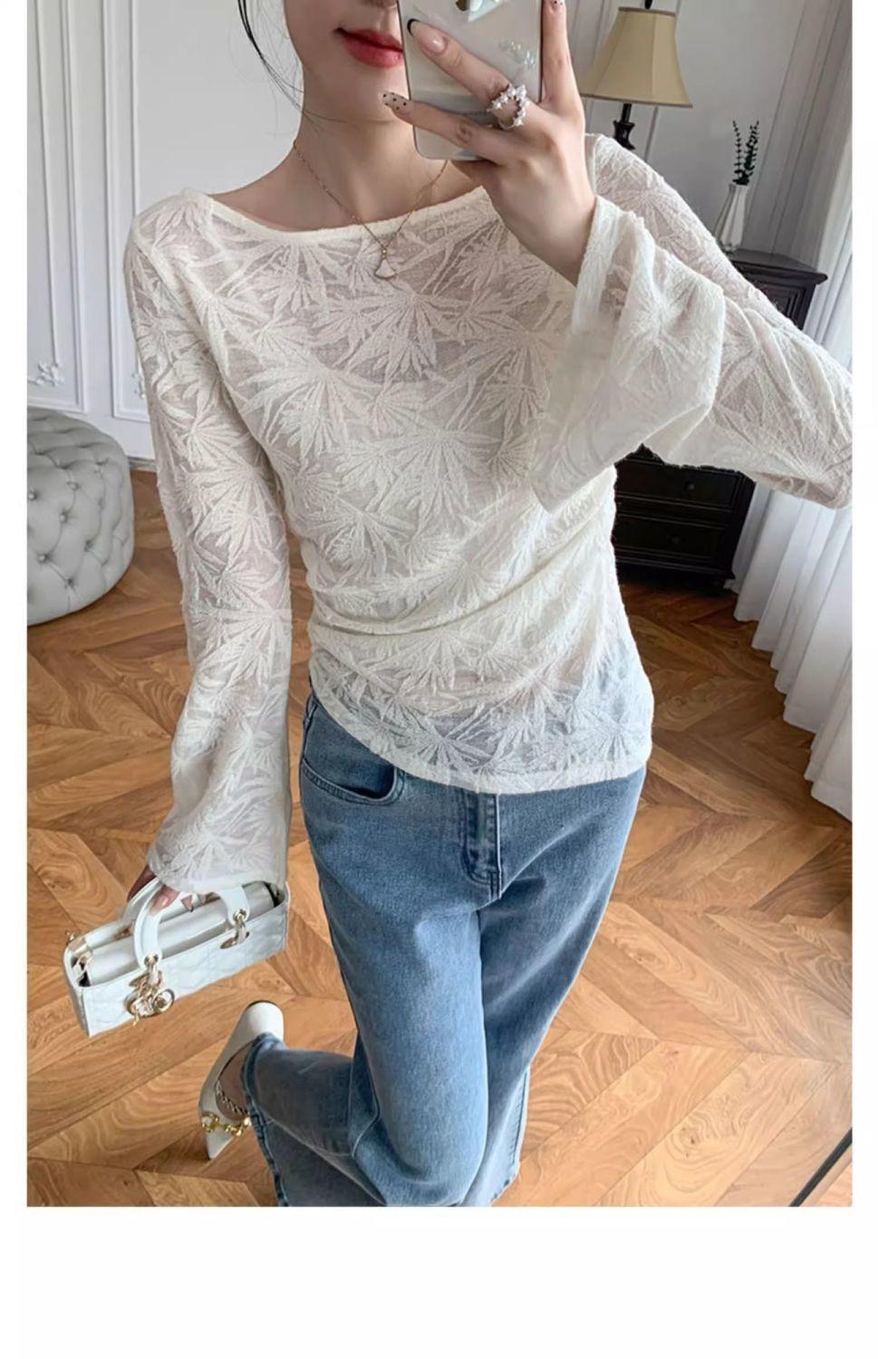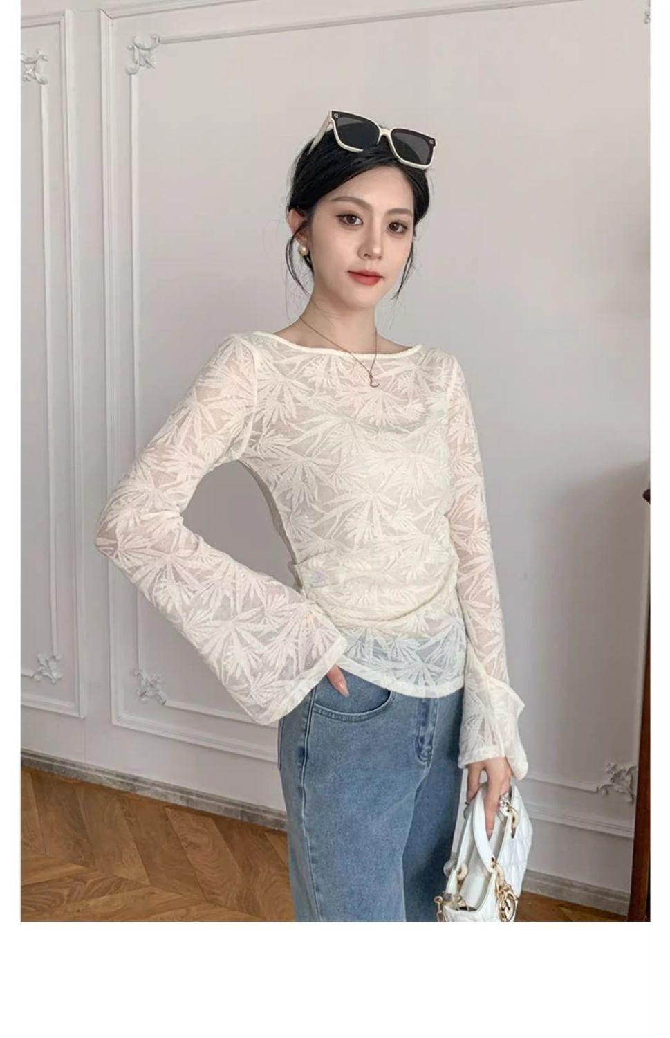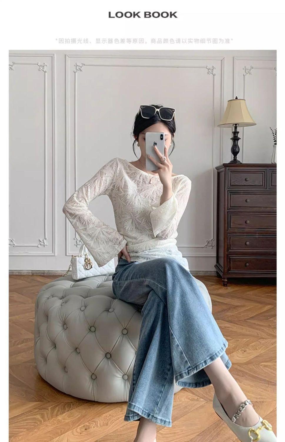 Nueva Camiseta de Manga Larga Estilo Nacional Estilo Chino Top de Encaje 2025 Verano para Mujer Nueva Moda Slim Versátil Temperamento Top Básico