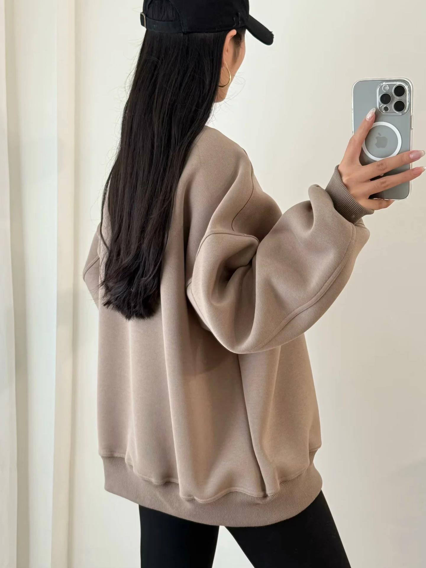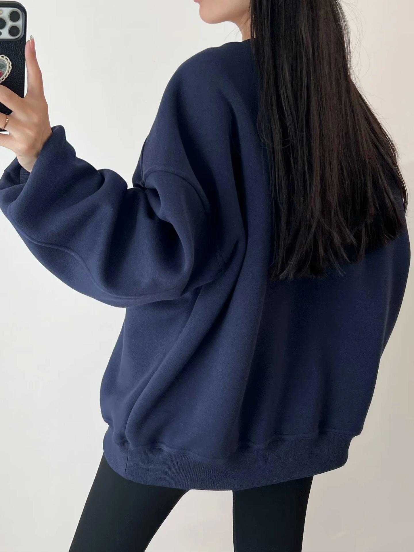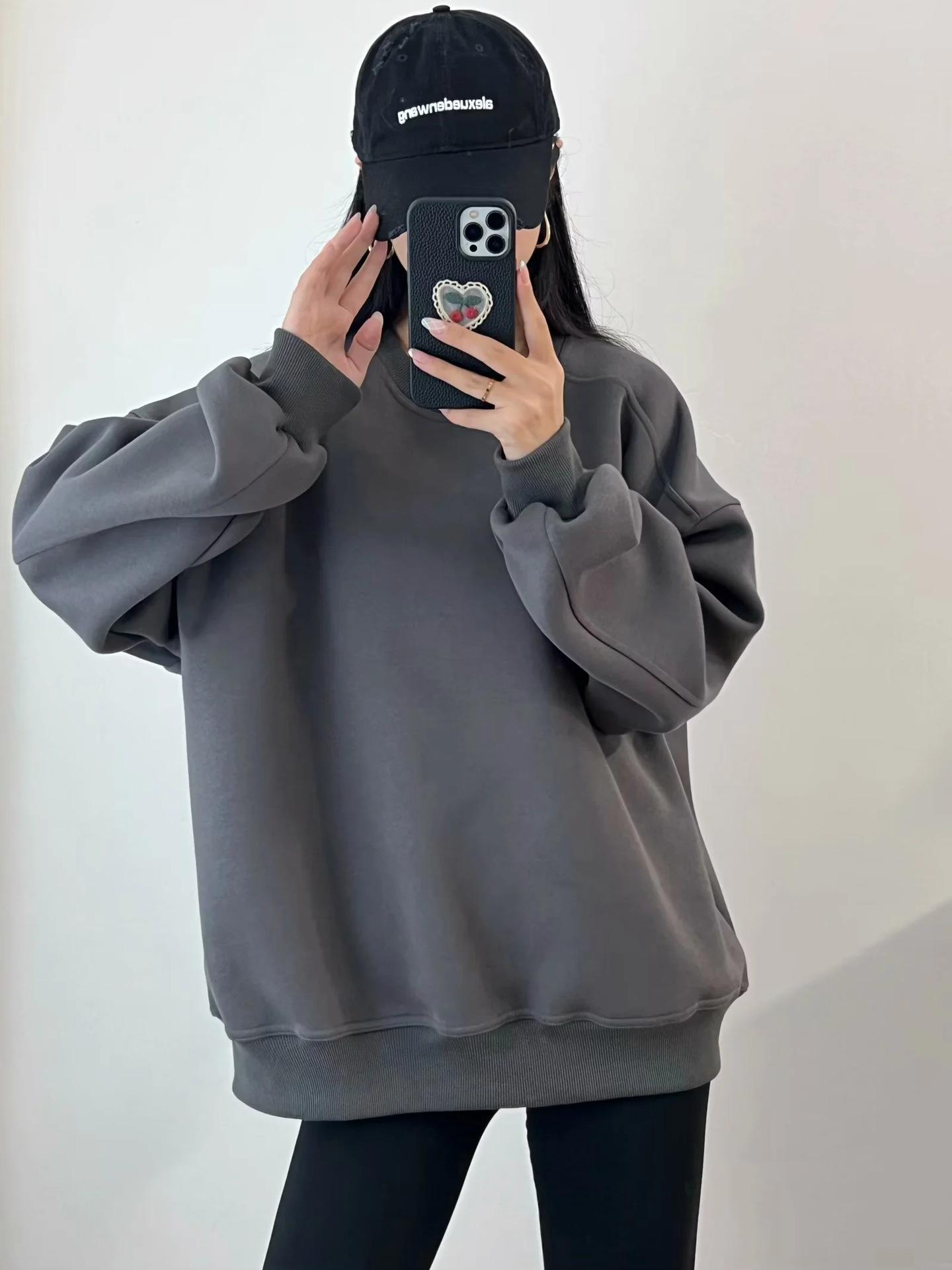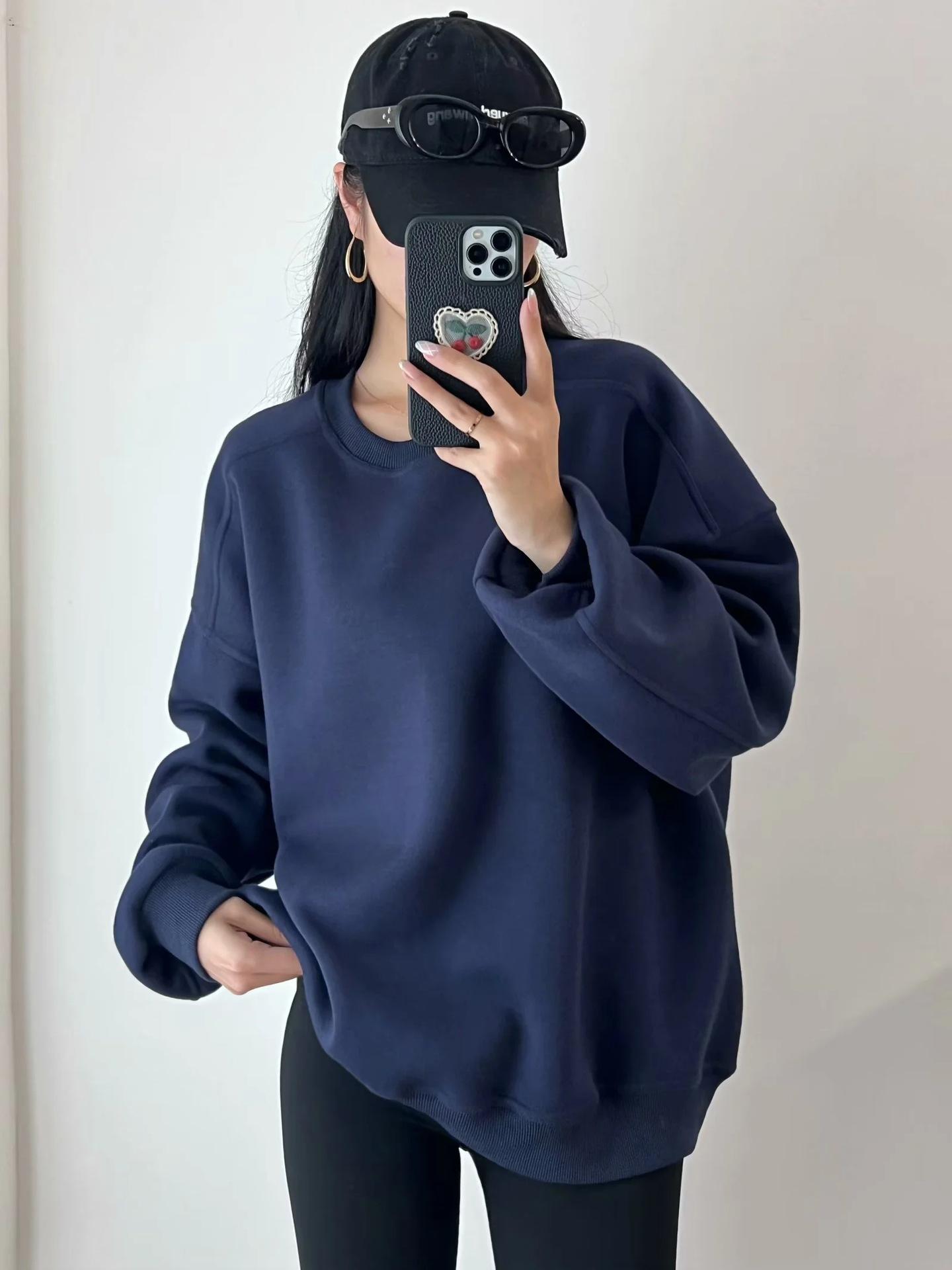 Nueva Sudadera de Manga Larga con Cuello Redondo Estilo Europeo y Americano de Otoño/Invierno para Mujer Holgada Versátil Casual Estilo Relajado Top Jersey Oversize