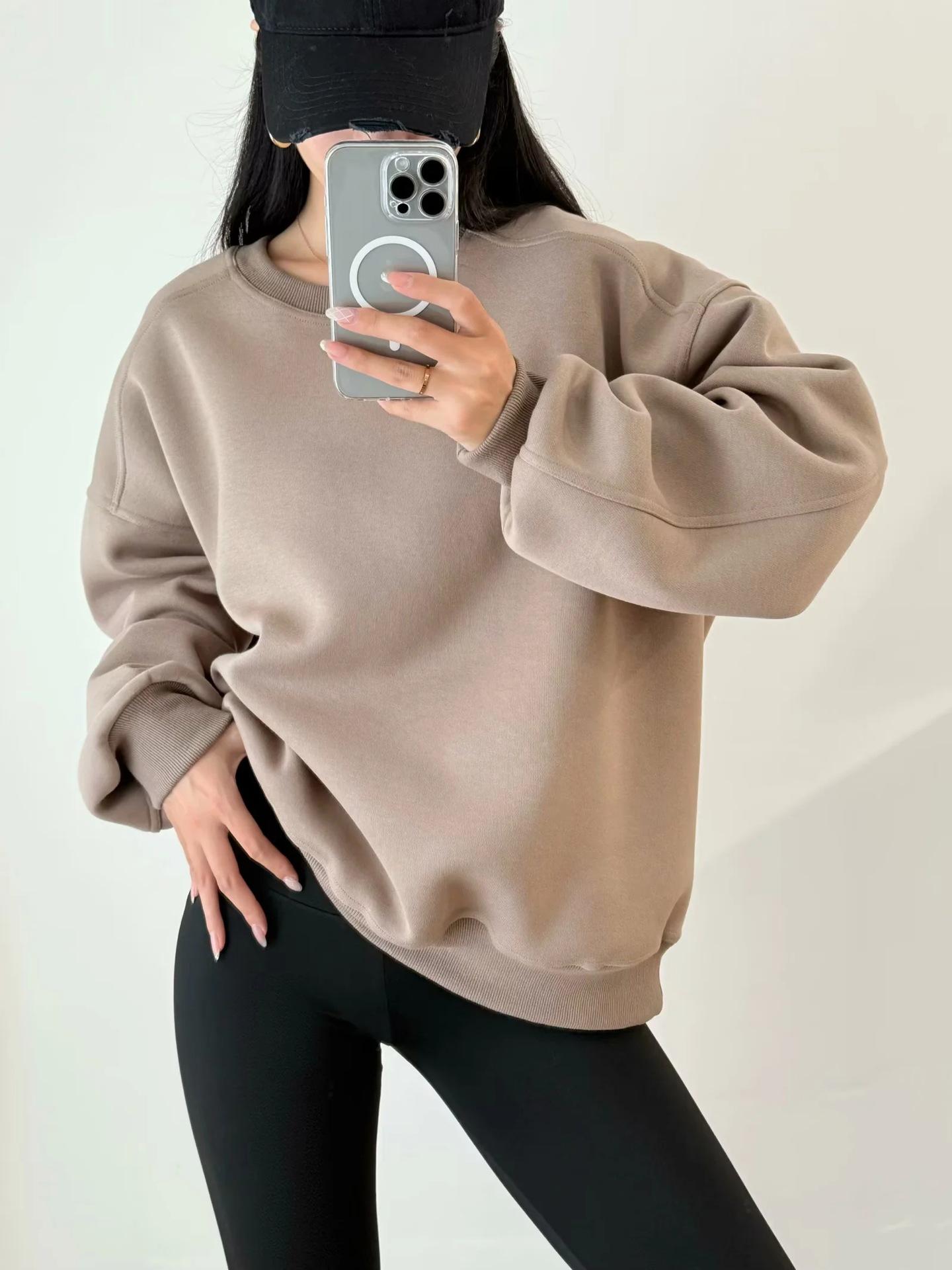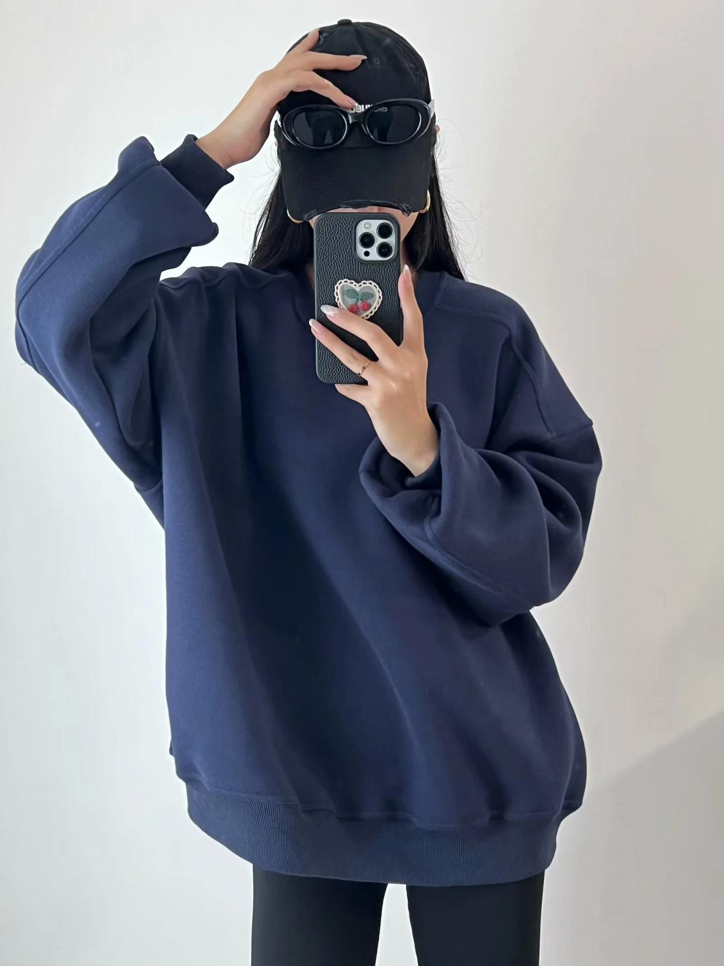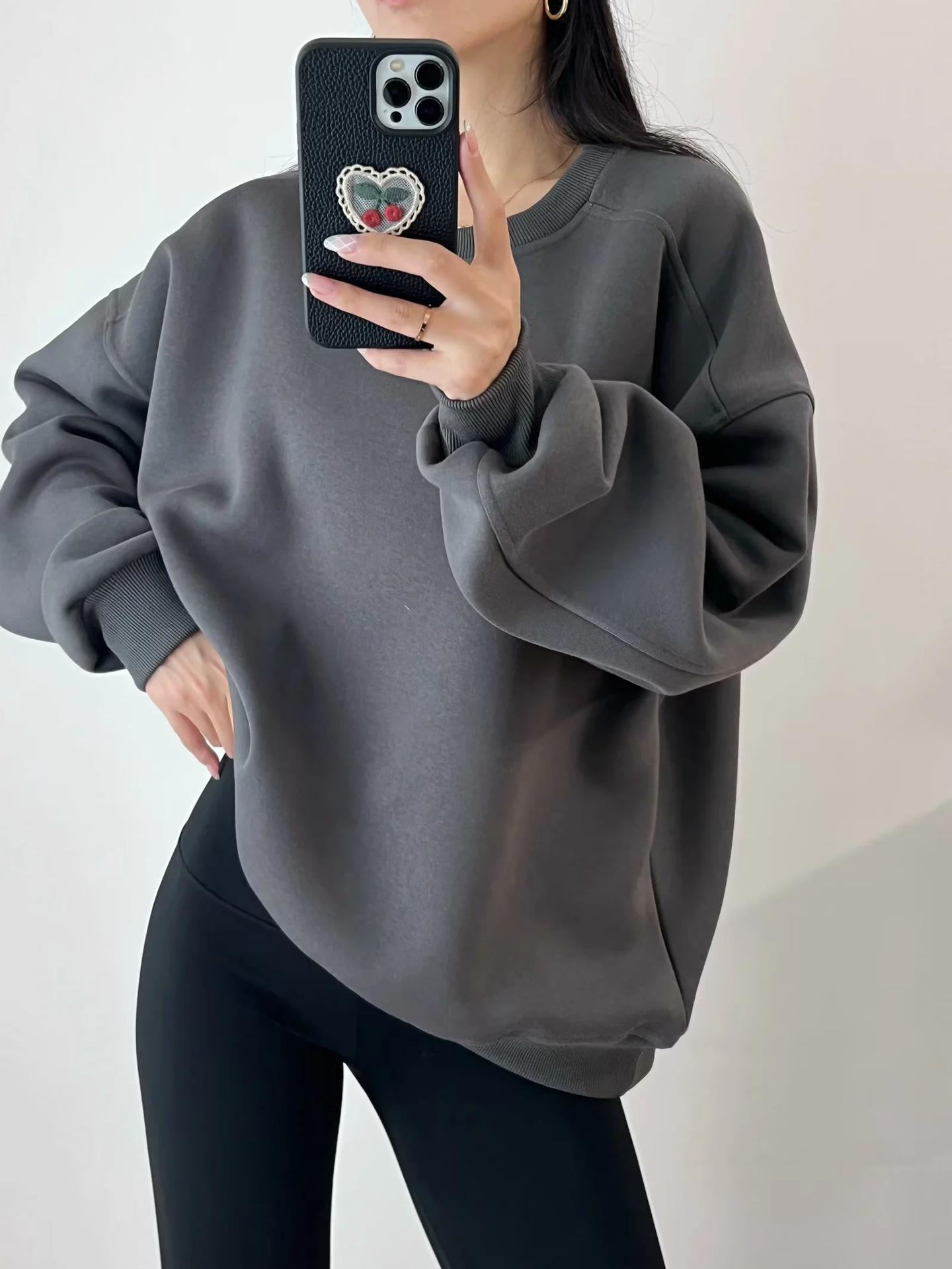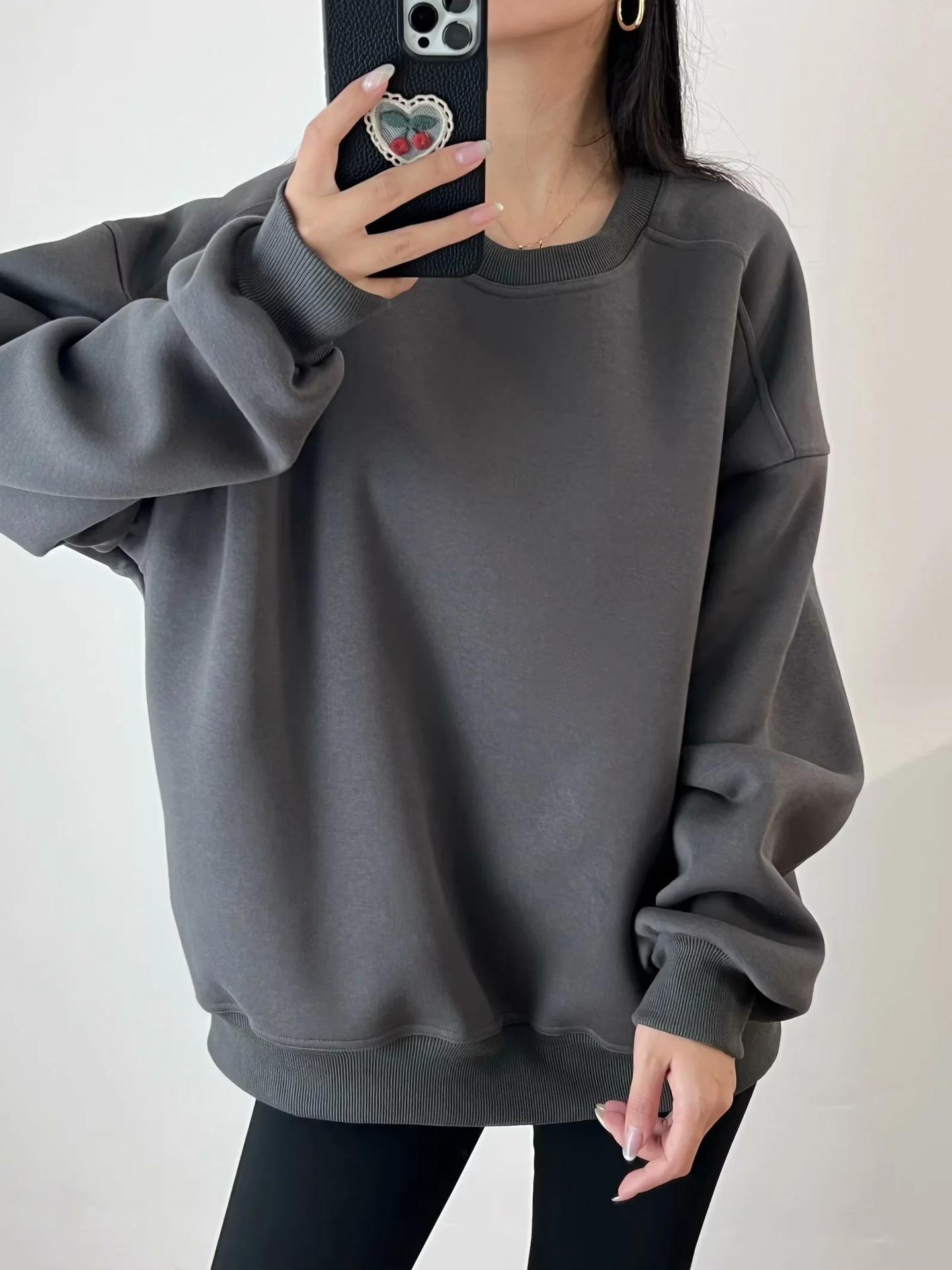 Nueva Sudadera de Manga Larga con Cuello Redondo Estilo Europeo y Americano de Otoño/Invierno para Mujer Holgada Versátil Casual Estilo Relajado Top Jersey Oversize