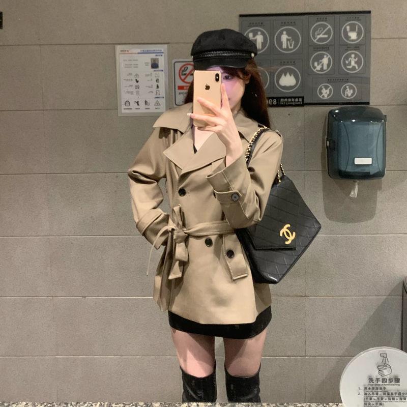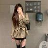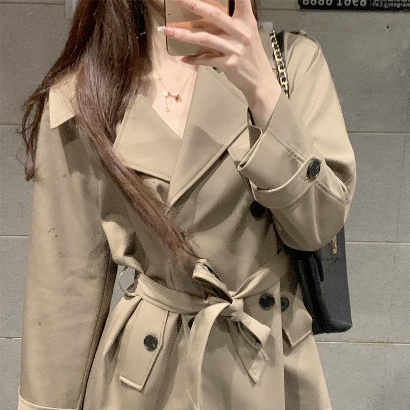 Abrigo Trench Camello Mujer 2025 Primavera y Otoño Nuevo Traje de Alta Gama Cuello Doble Botonadura Cinturón Top