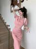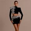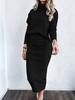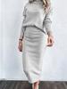2024 Moda Casual Transfronteriza Europea y Americana para Mujer Top de Cuello Alto y Manga Corta Larga Falda de Cadera de Cintura Alta Traje