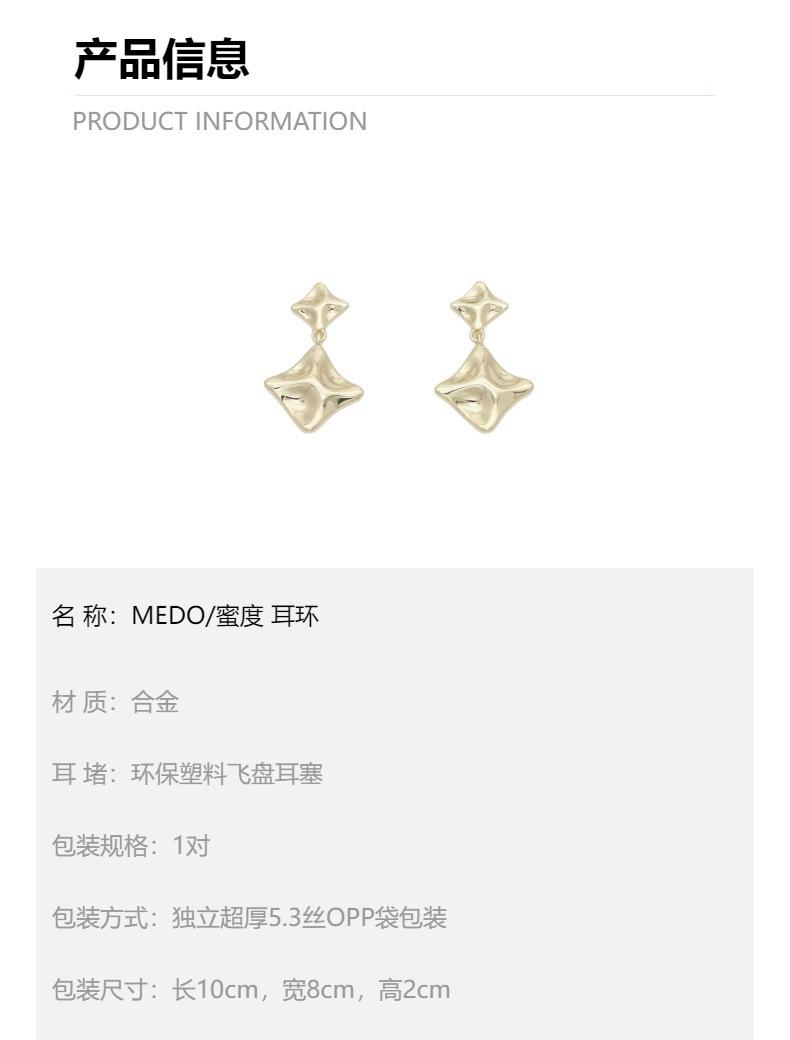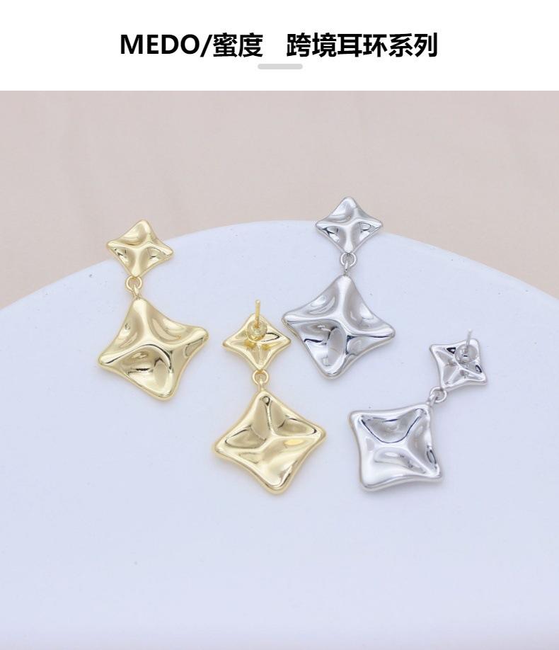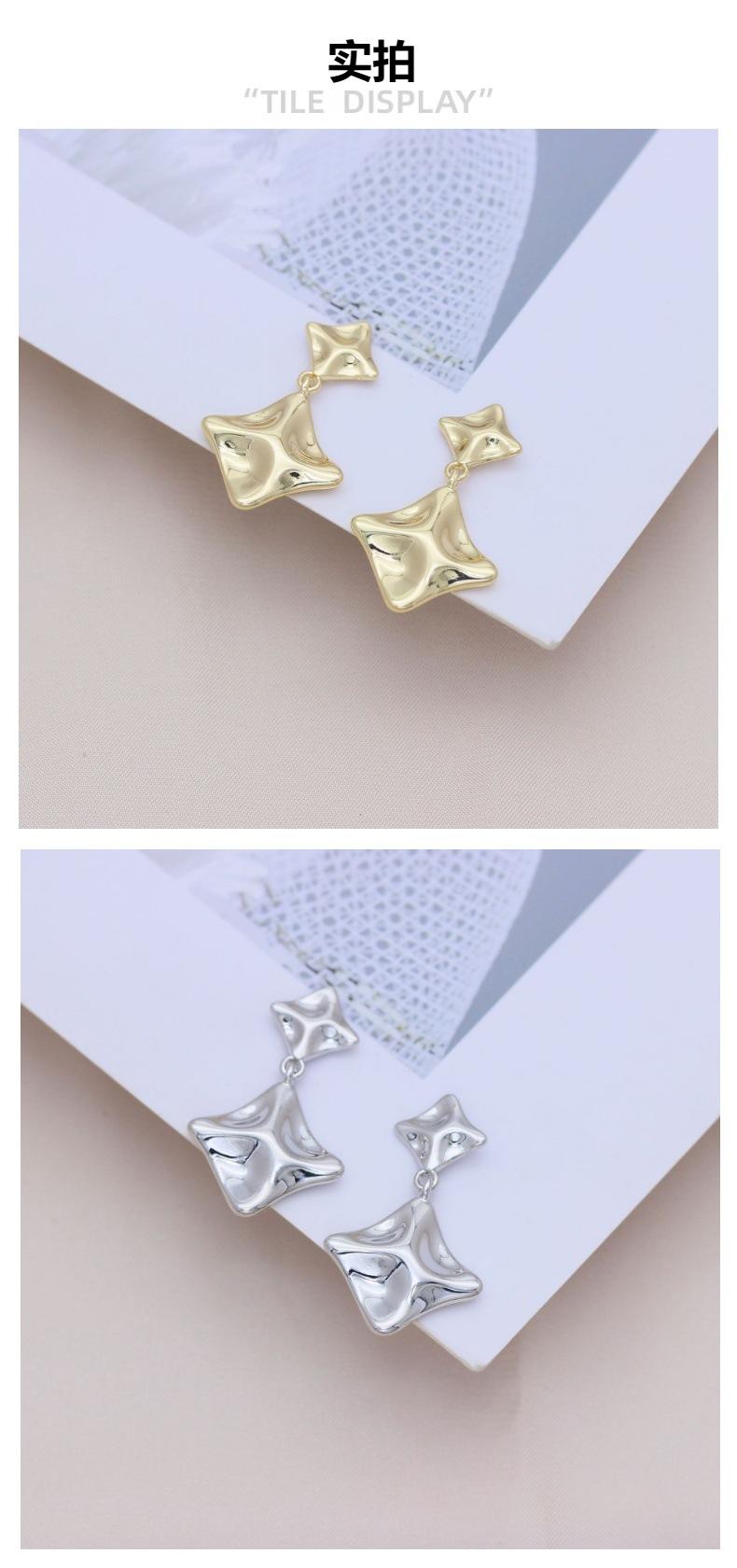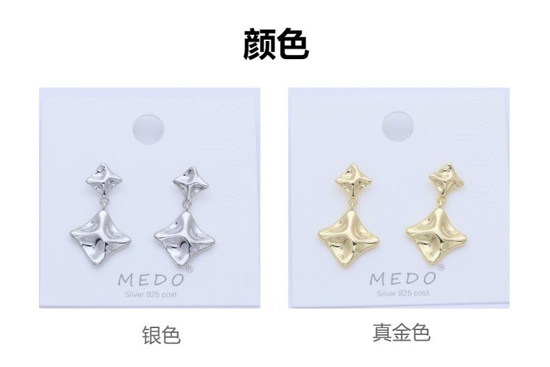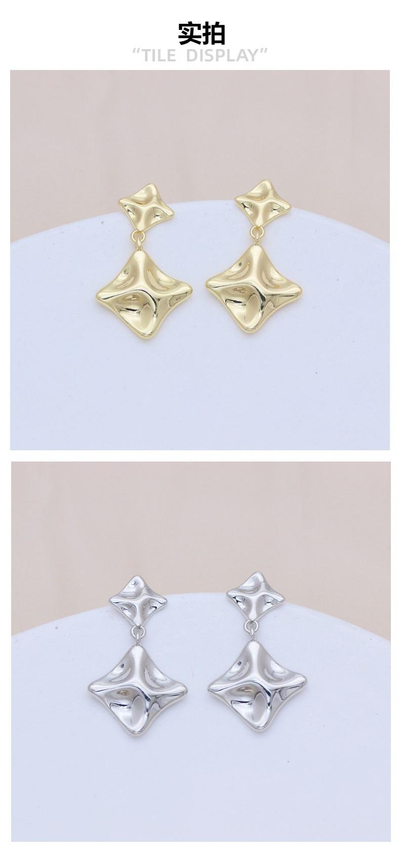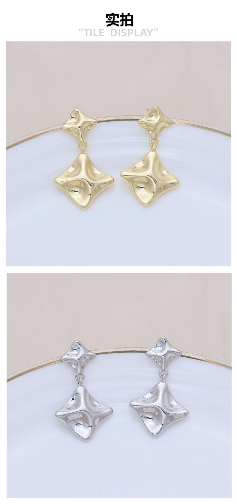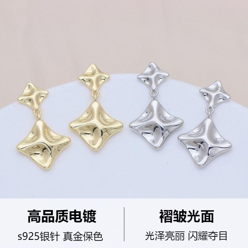 Aretes de Moda Transfronteriza Aguja de Plata S925 Geométricos Cuadrados Plisados Aretes de Lujo Ligero Aleación con Conservación del Color Oro Real Aretes Colgantes Mujer