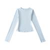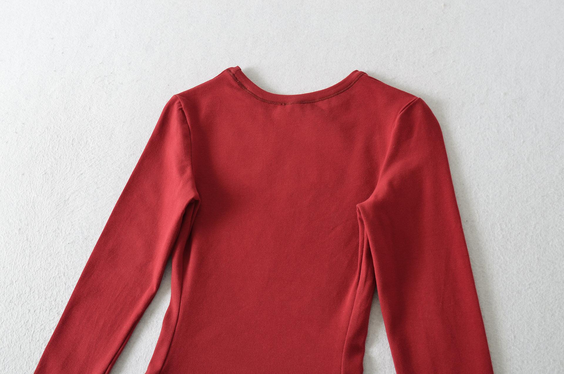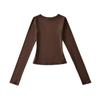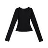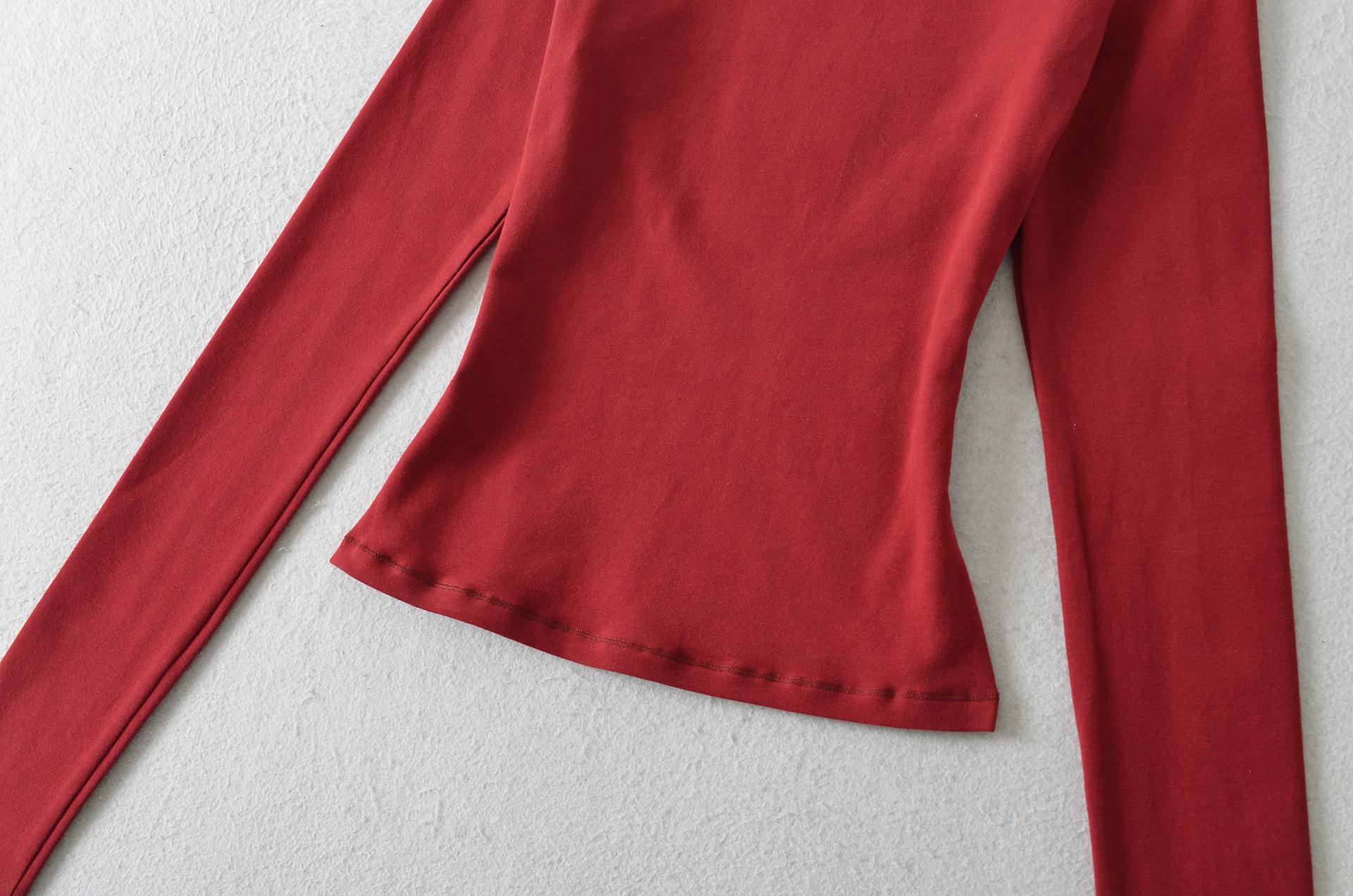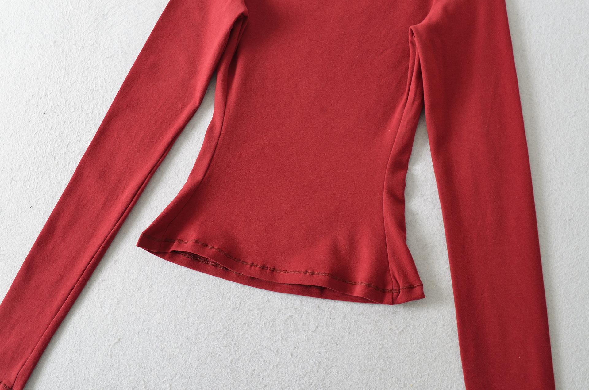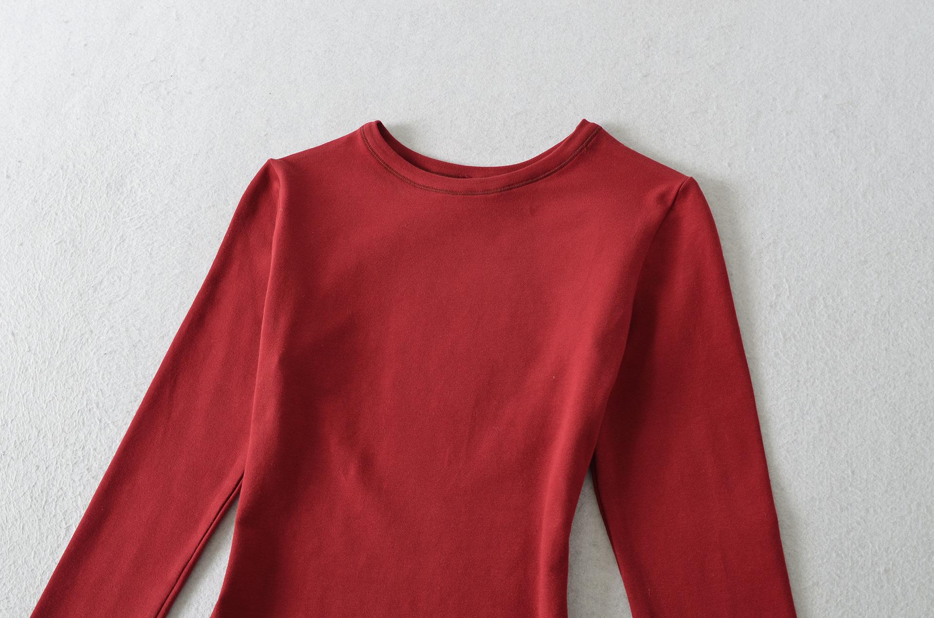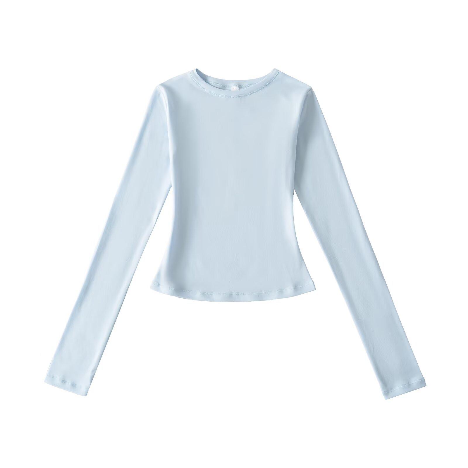 25118-Estilo europeo y americano moda de chica guapa camiseta de manga larga con cuello redondo para mujer 2025 nuevo top de camiseta básica sexy ajustada