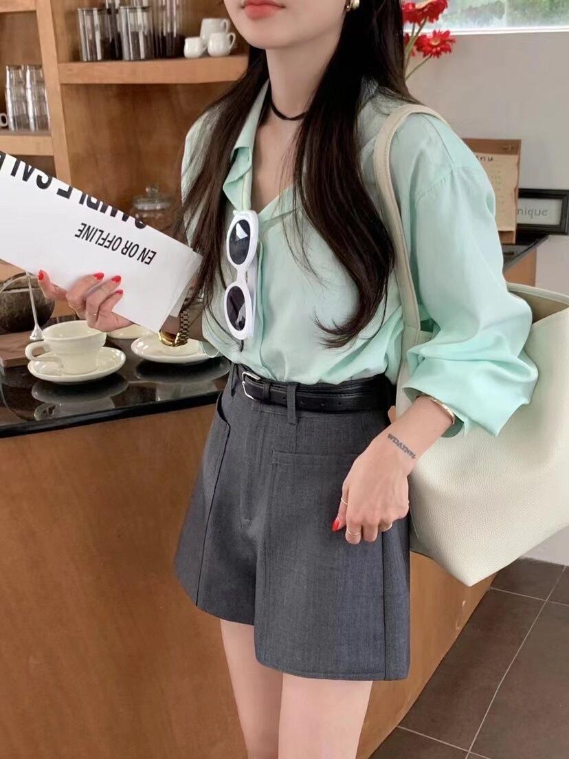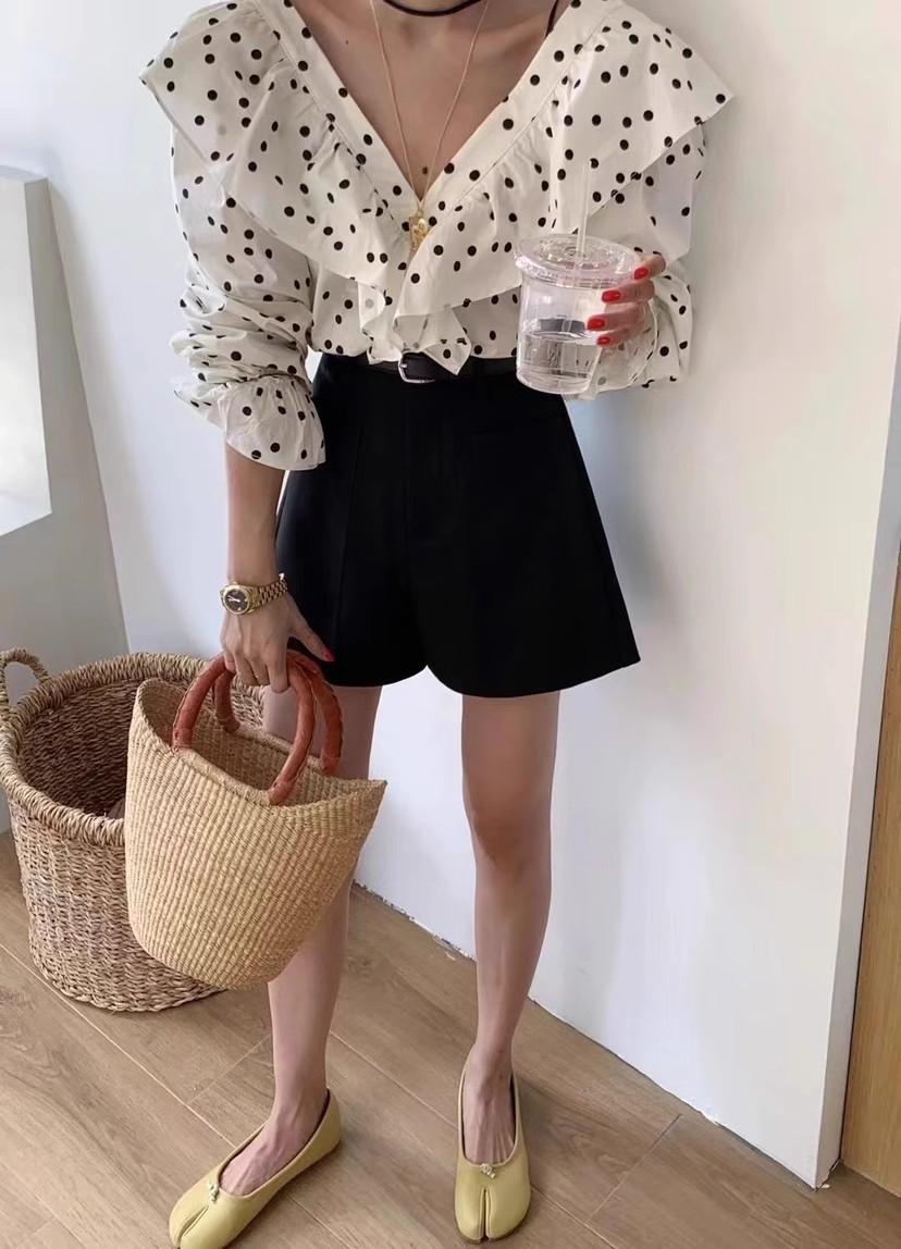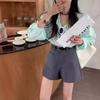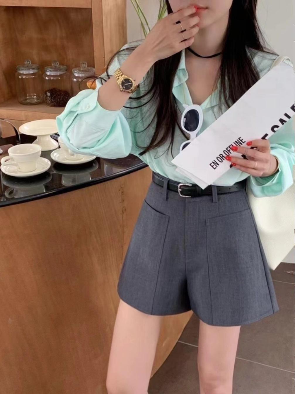 Shorts Petite de Cintura Alta Adelgazantes de Pierna Ancha Moda de Verano Versátiles Shorts de Traje Negros para Mujer Modelo Nuevo 2025
