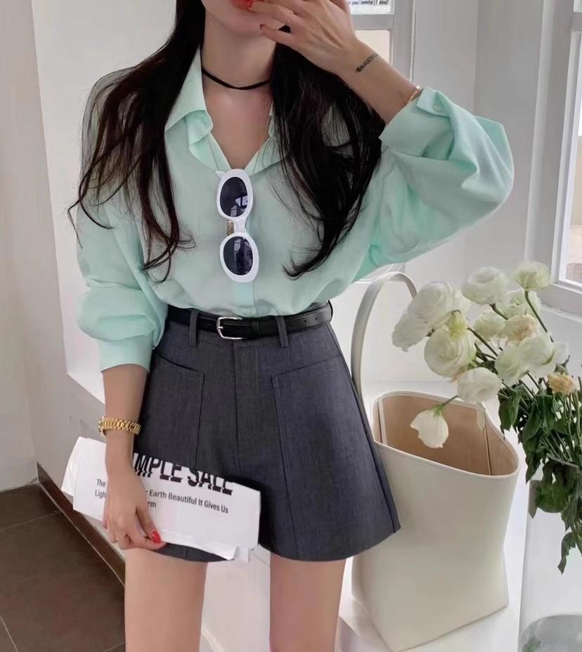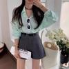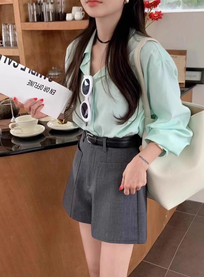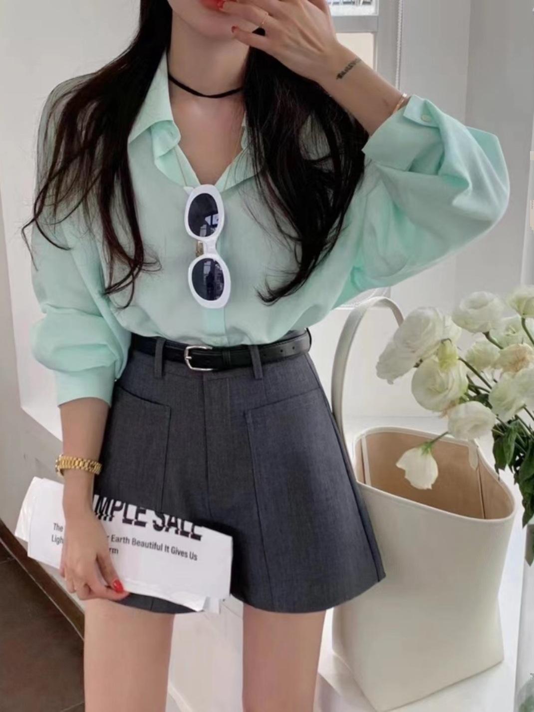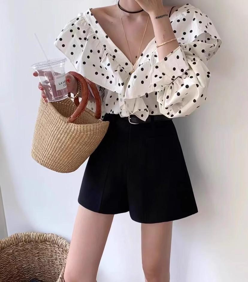 Shorts Petite de Cintura Alta Adelgazantes de Pierna Ancha Moda de Verano Versátiles Shorts de Traje Negros para Mujer Modelo Nuevo 2025
