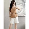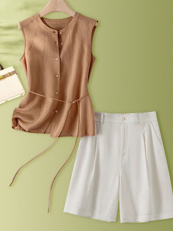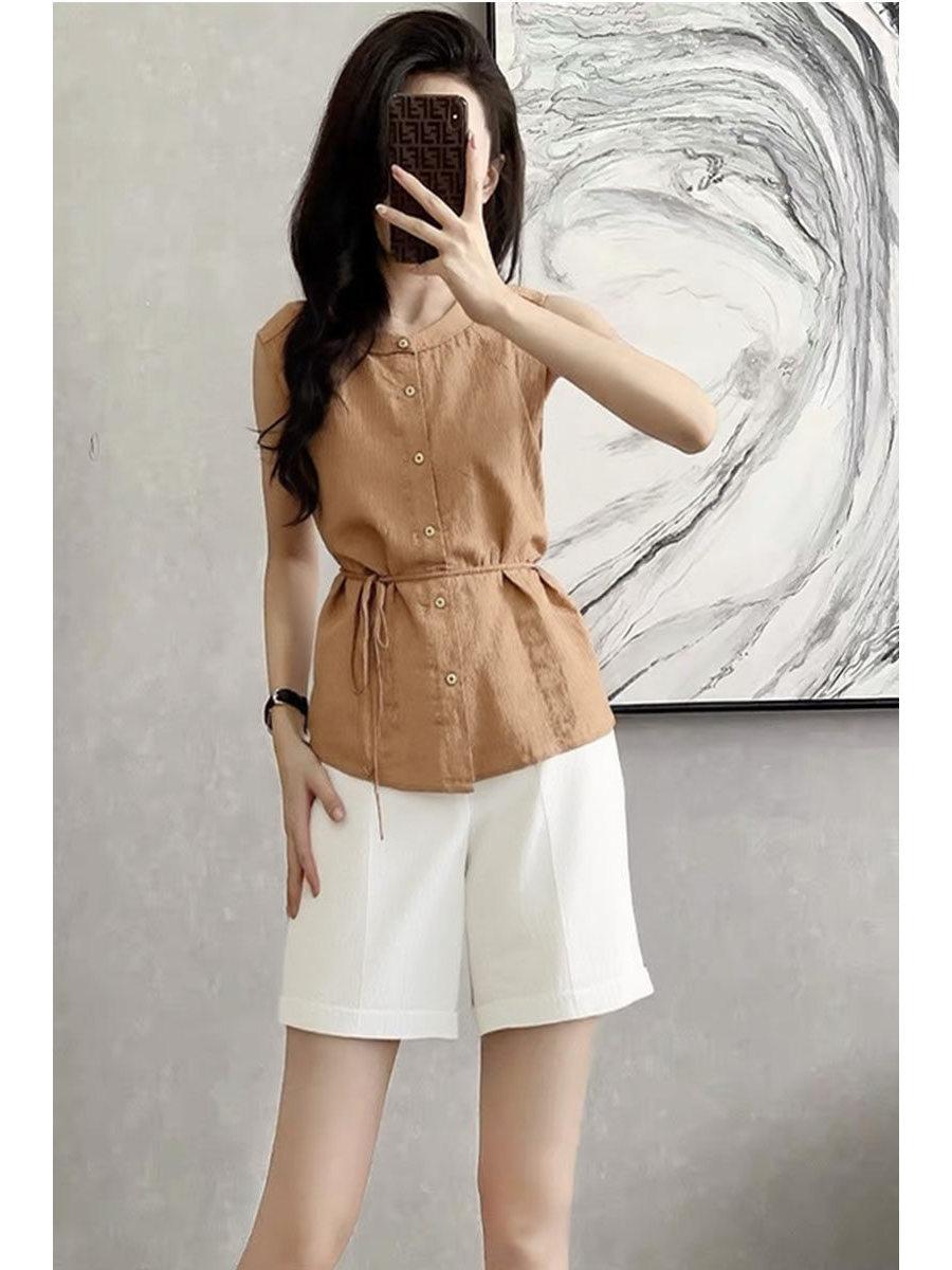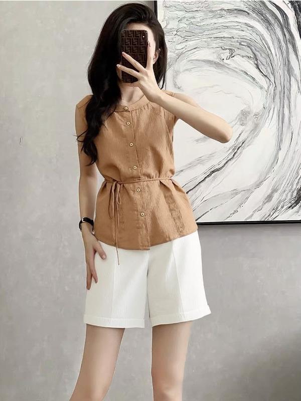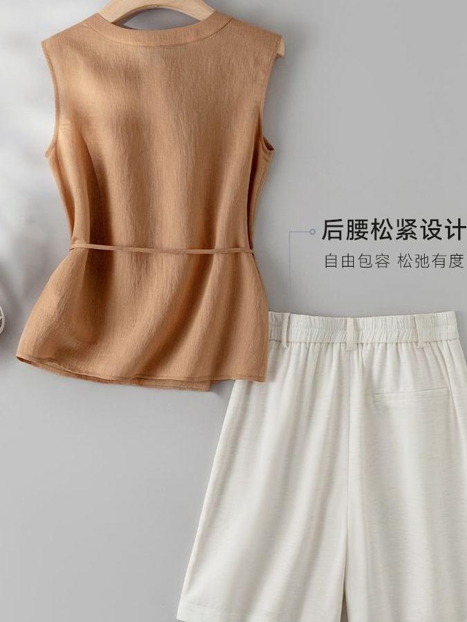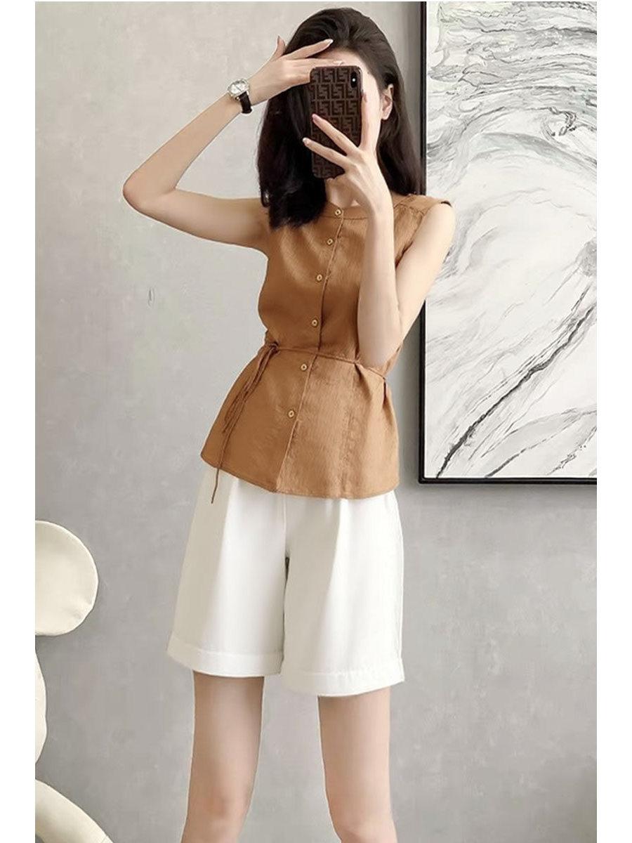 Traje de Sensación Francesa de Alta Gama Ligero y Delgado para Mujer Verano 2025 Nueva Moda Camisa Top Pantalones Cortos de Pierna Ancha Conjunto de Dos Piezas