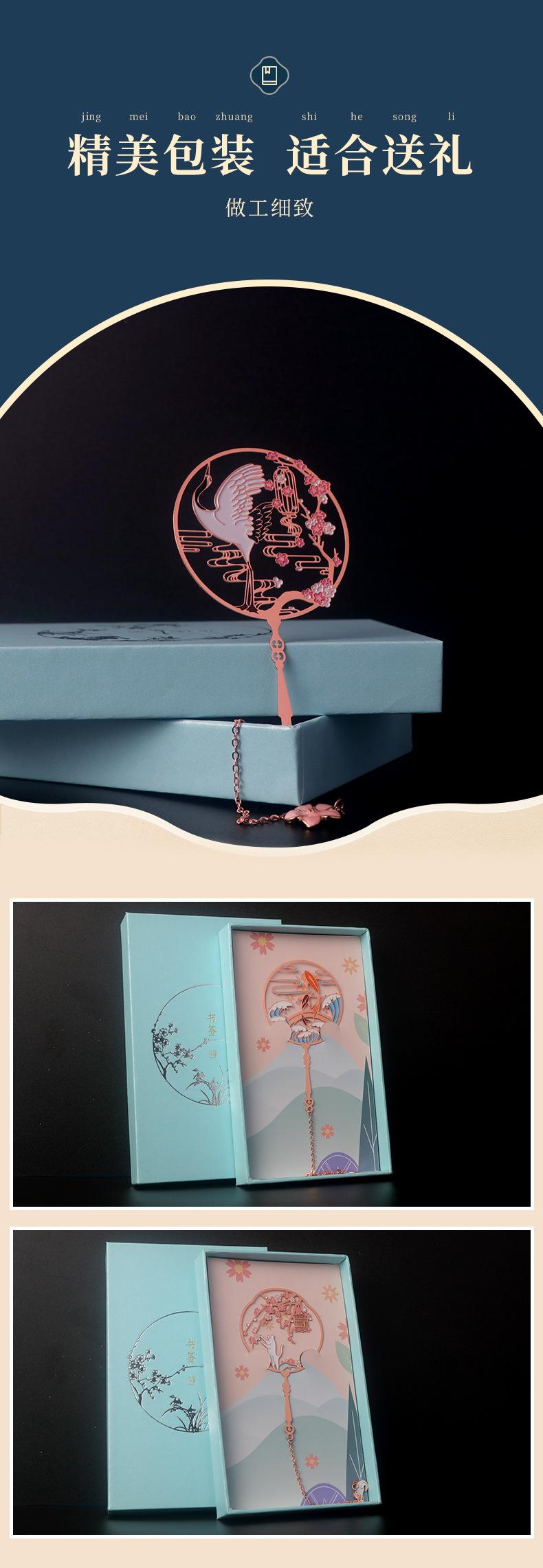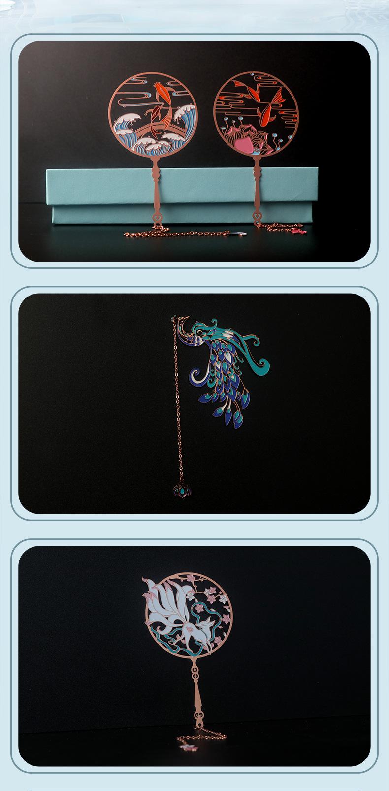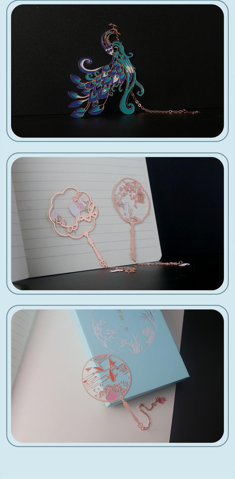 Marcador de Metal Estilo Chino Cultural y Creativo Estilo Antiguo Latón Abanico Marcador Regalo de Cumpleaños Graduación Día del Maestro Caja de Regalo Venta al por Mayor