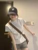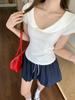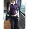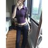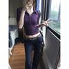 Camiseta Sexy de Chica Caliente Morada de Hombro Derecho con Manga Corta Diseño de Verano Nicho Top Corto para Mujer