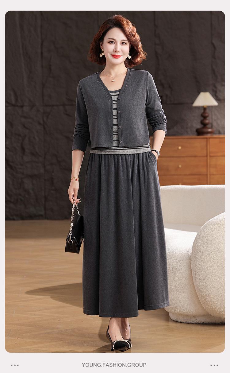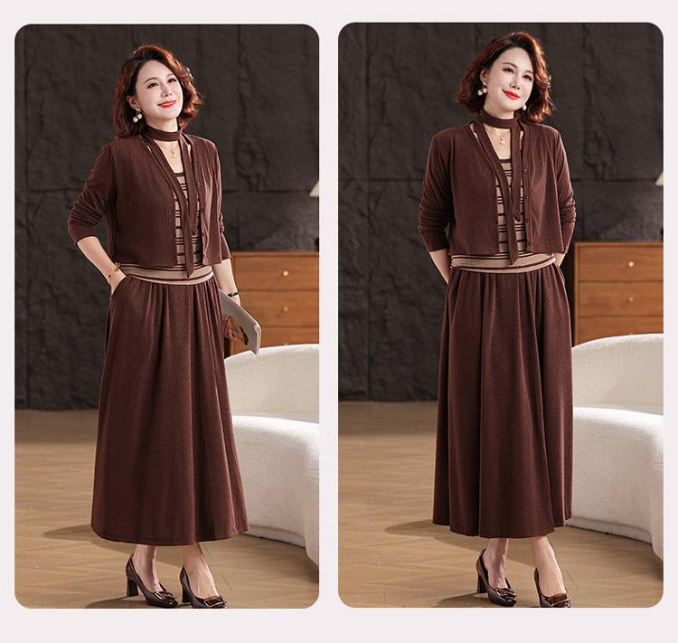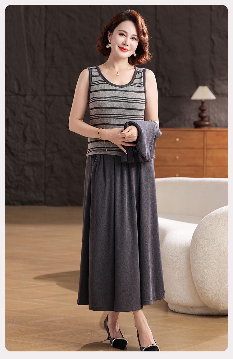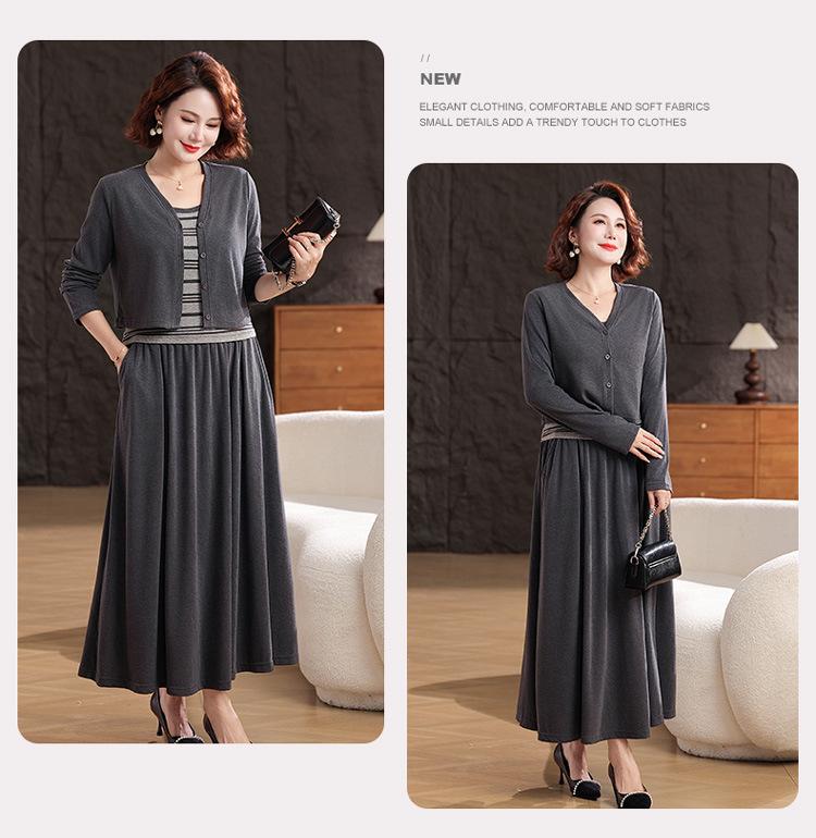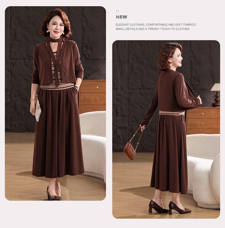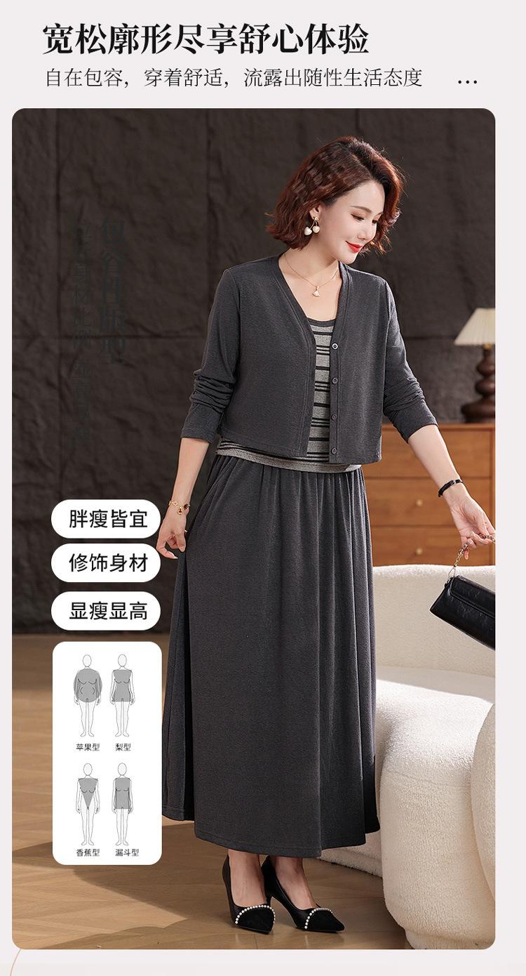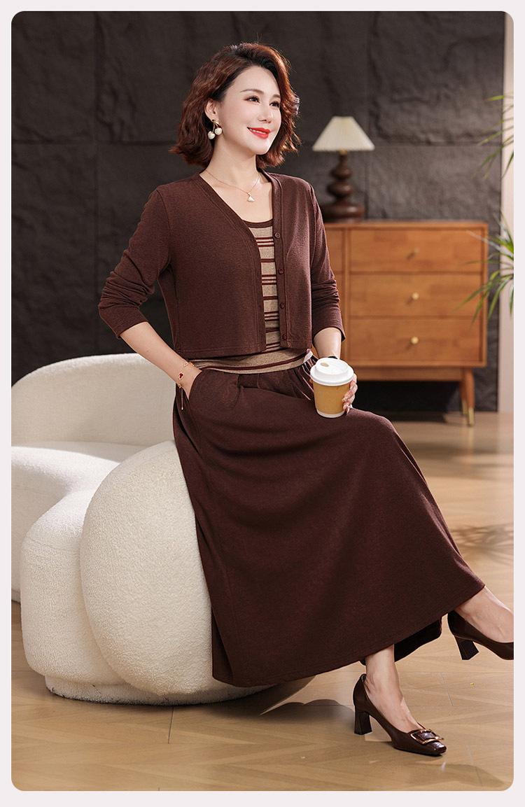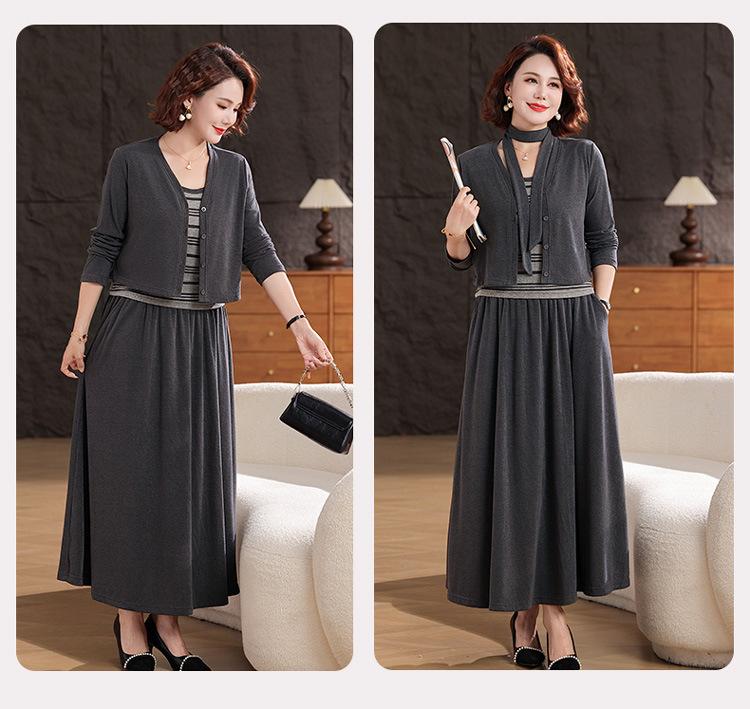 Conjunto Casual de Moda para Mamá de Tres Piezas Estilo Otoño 2025 Ropa para Mujeres de Mediana Edad y Mayores Elegante Talla Grande Top Falda