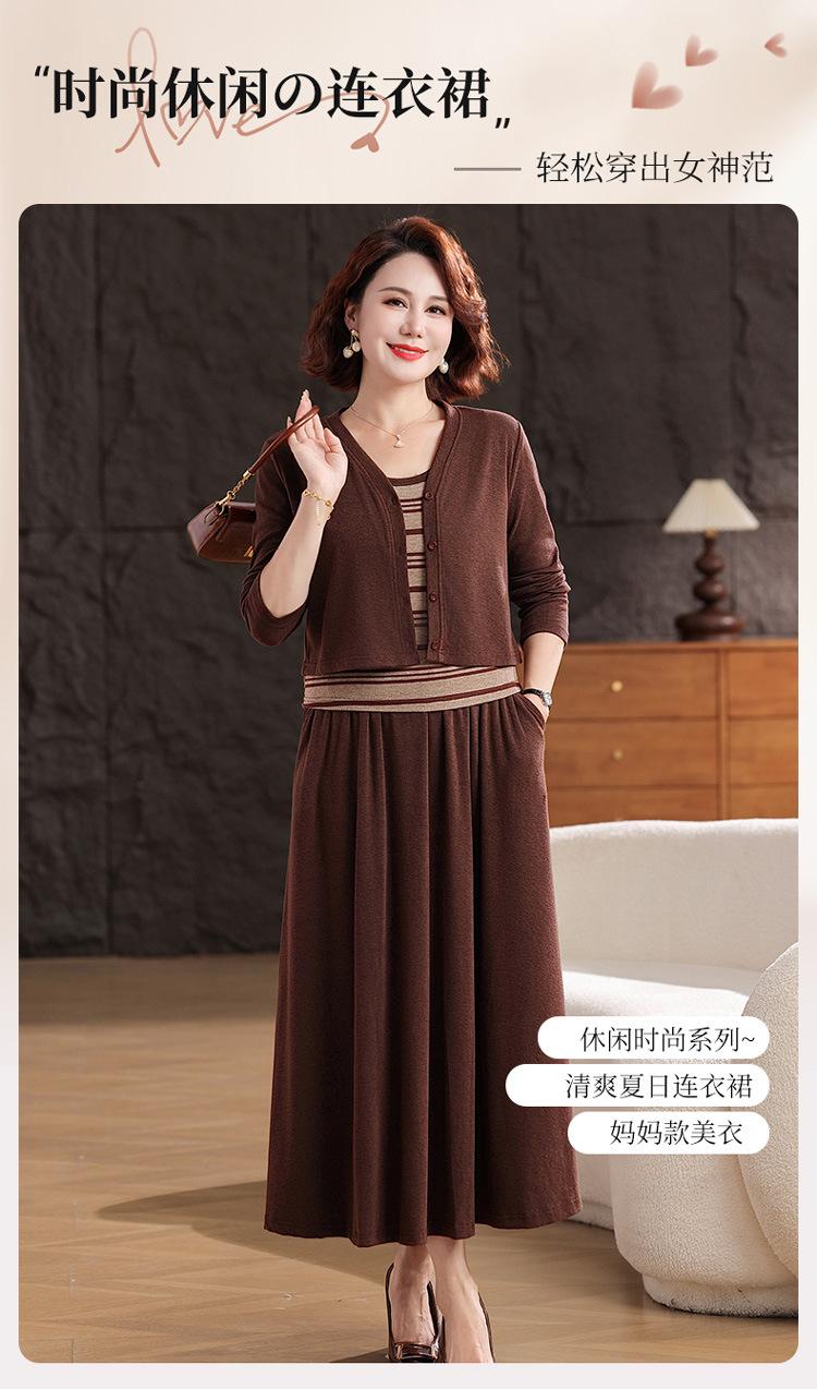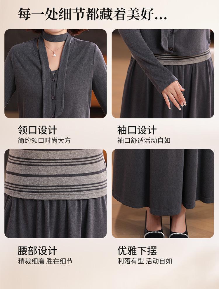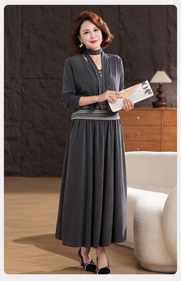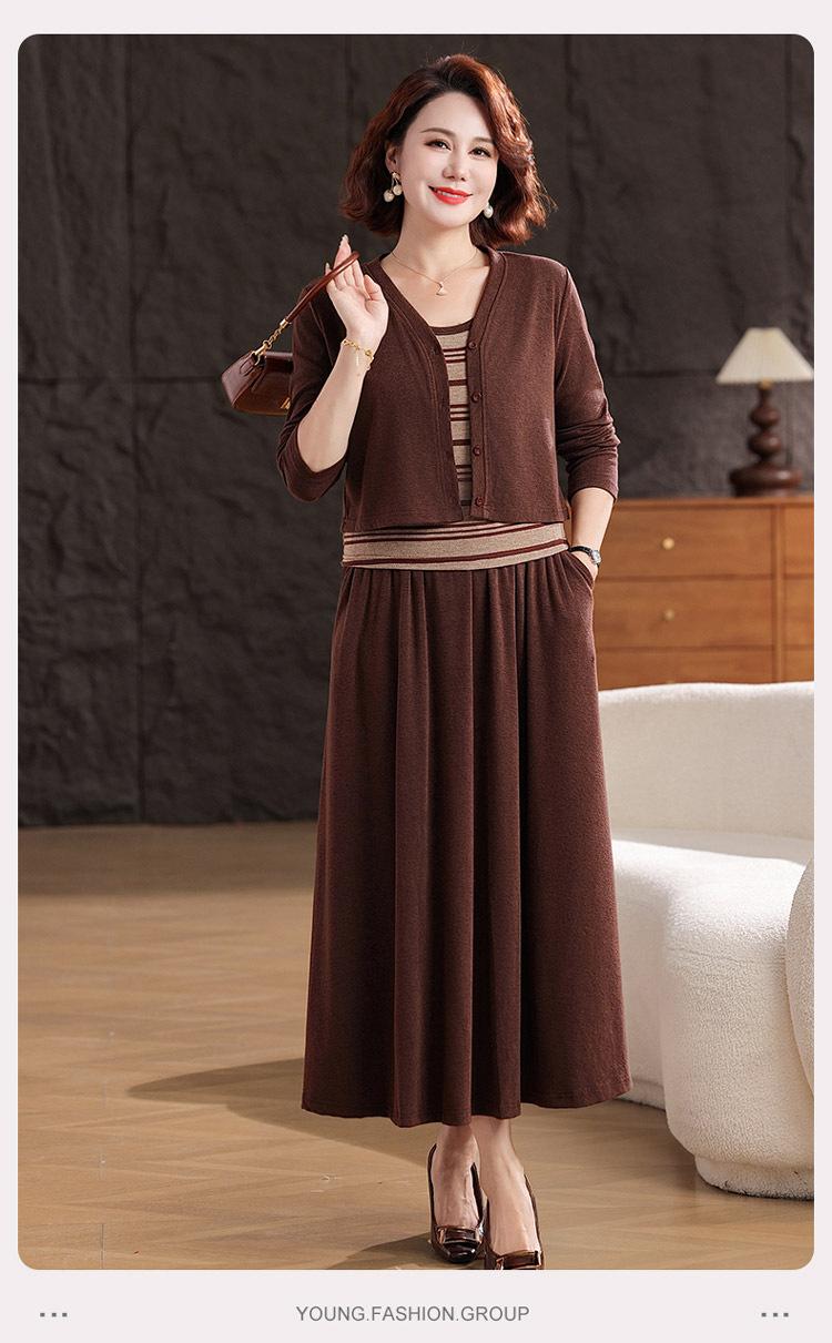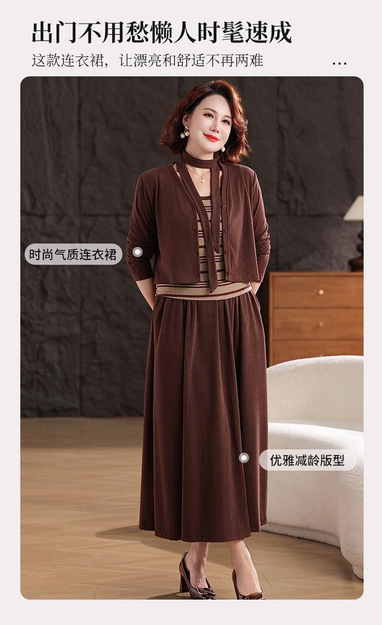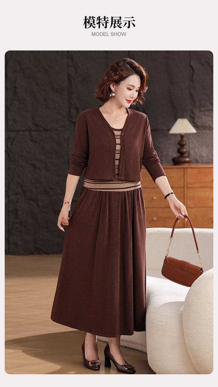 Conjunto Casual de Moda para Mamá de Tres Piezas Estilo Otoño 2025 Ropa para Mujeres de Mediana Edad y Mayores Elegante Talla Grande Top Falda