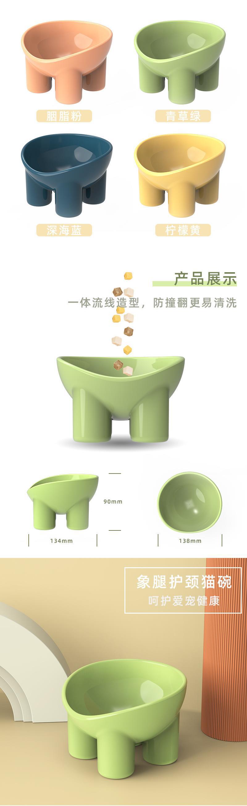 Nuevo cuenco para cuello de pata de elefante color macarrón transfronterizo, cuenco para comida para gatos, cuenco para gatos antivuelco, cuenco para mascotas, utensilios para comida al por mayor