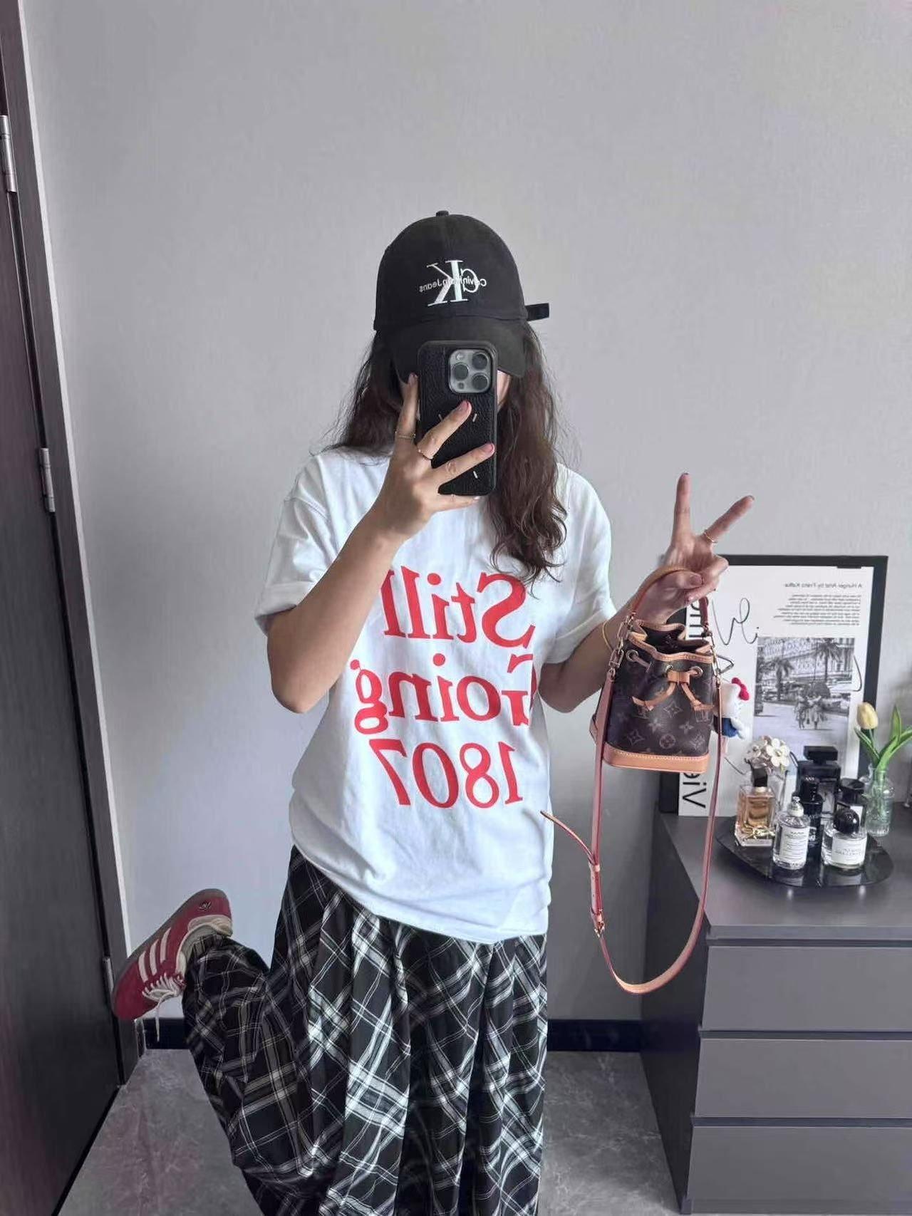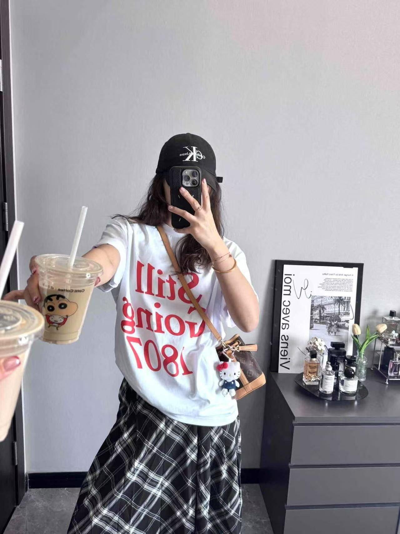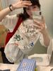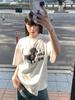 Camiseta de Manga Corta de Algodón Puro para Mujer, Camiseta de Media Manga con Estampado de Chica Dulce, Bienes Europeos de Exportación Creativa