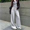 Pantalones casuales holgados europeos y americanos de cintura elástica holgada adelgazantes de pierna ancha, modernos y versátiles para mujeres petite, pantalones de pierna ancha de otoño
