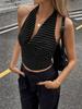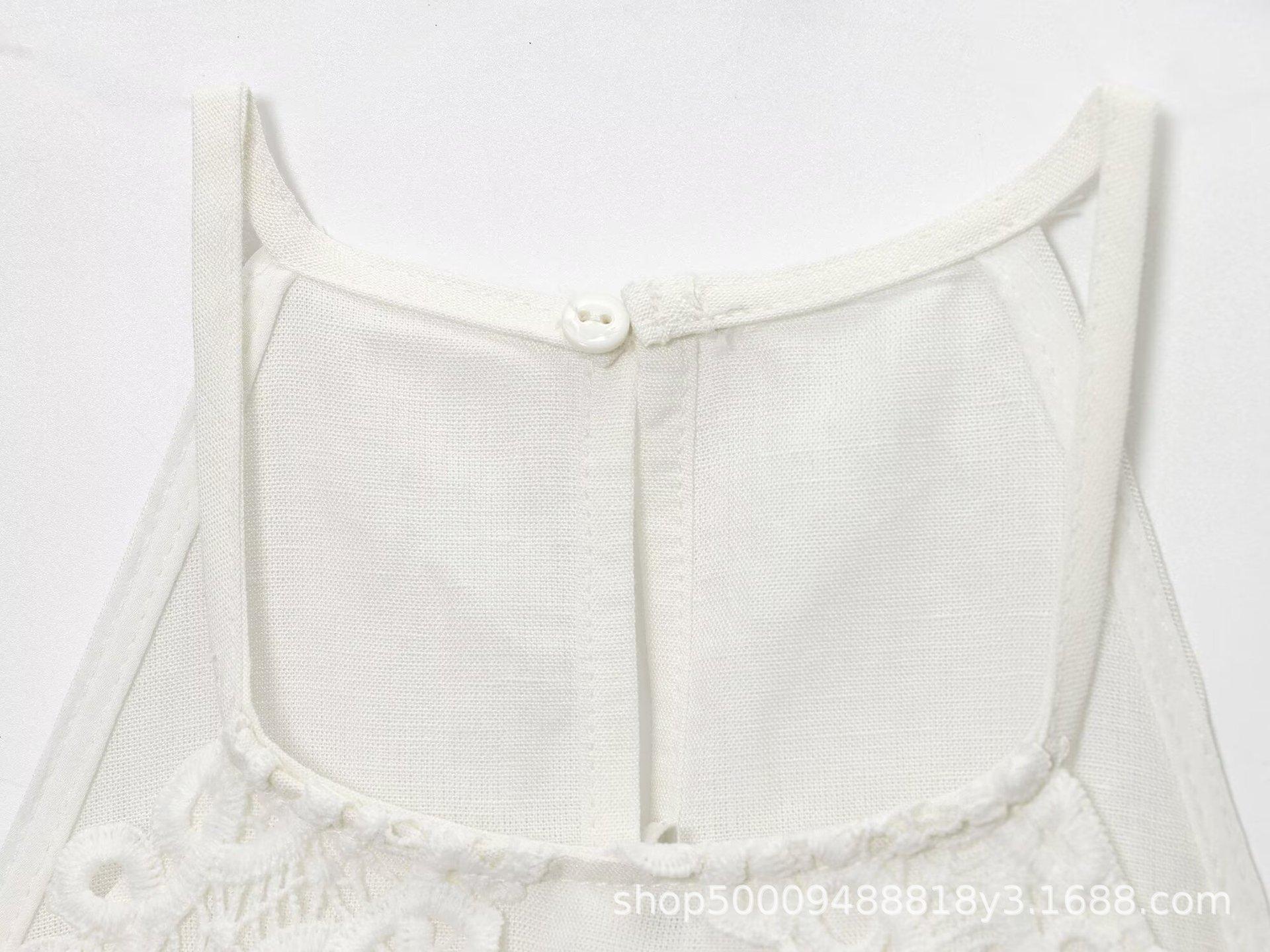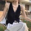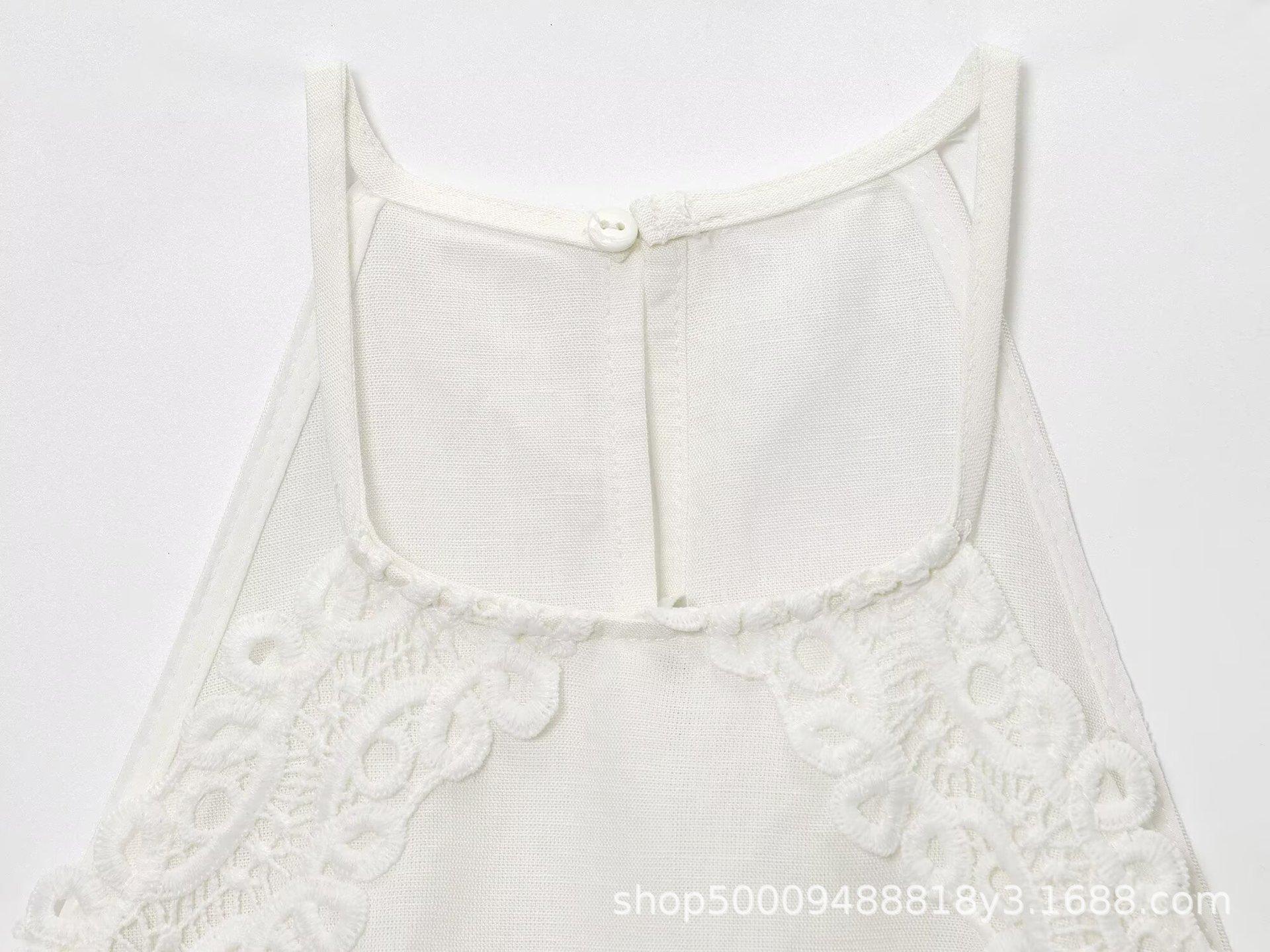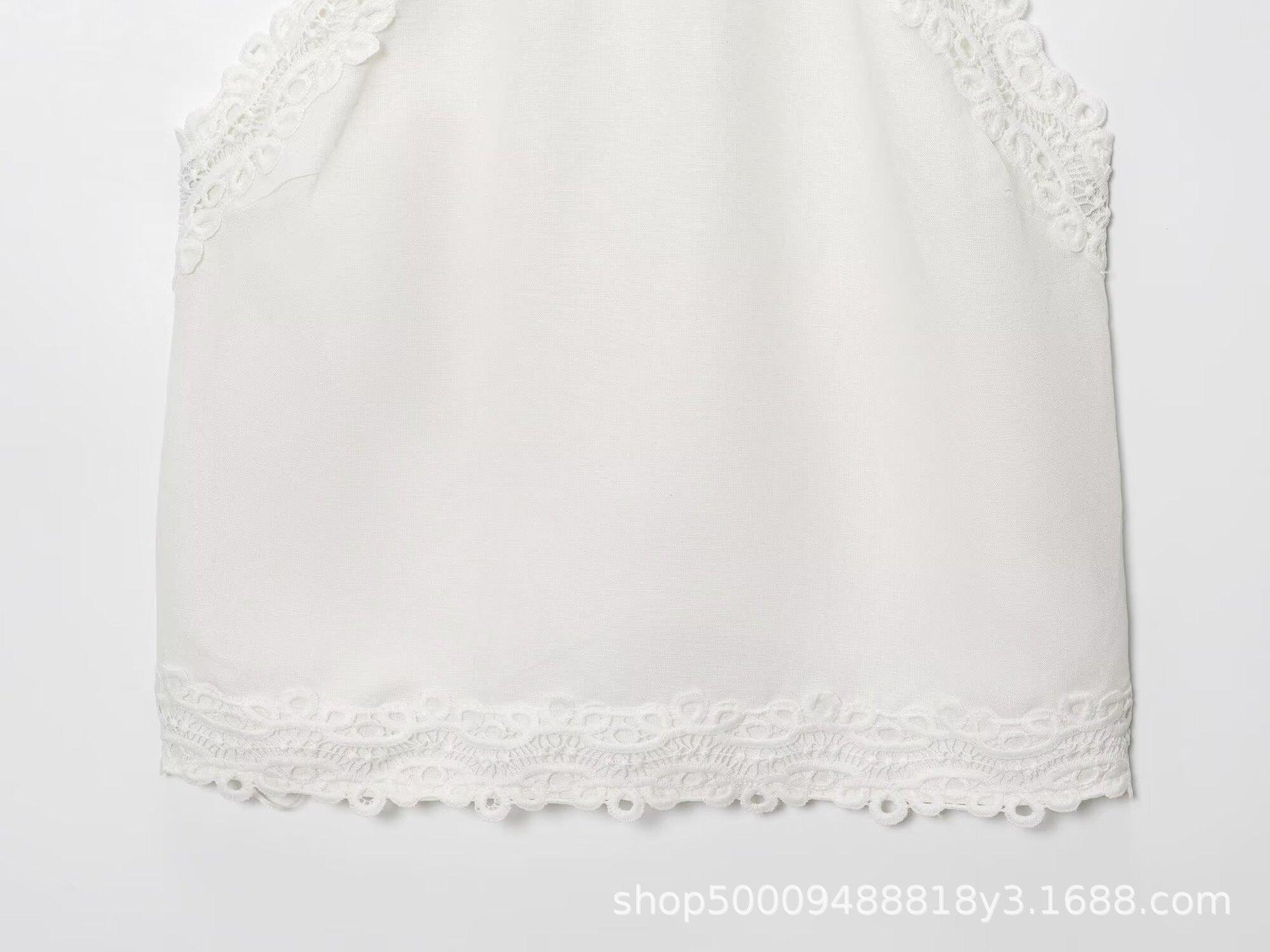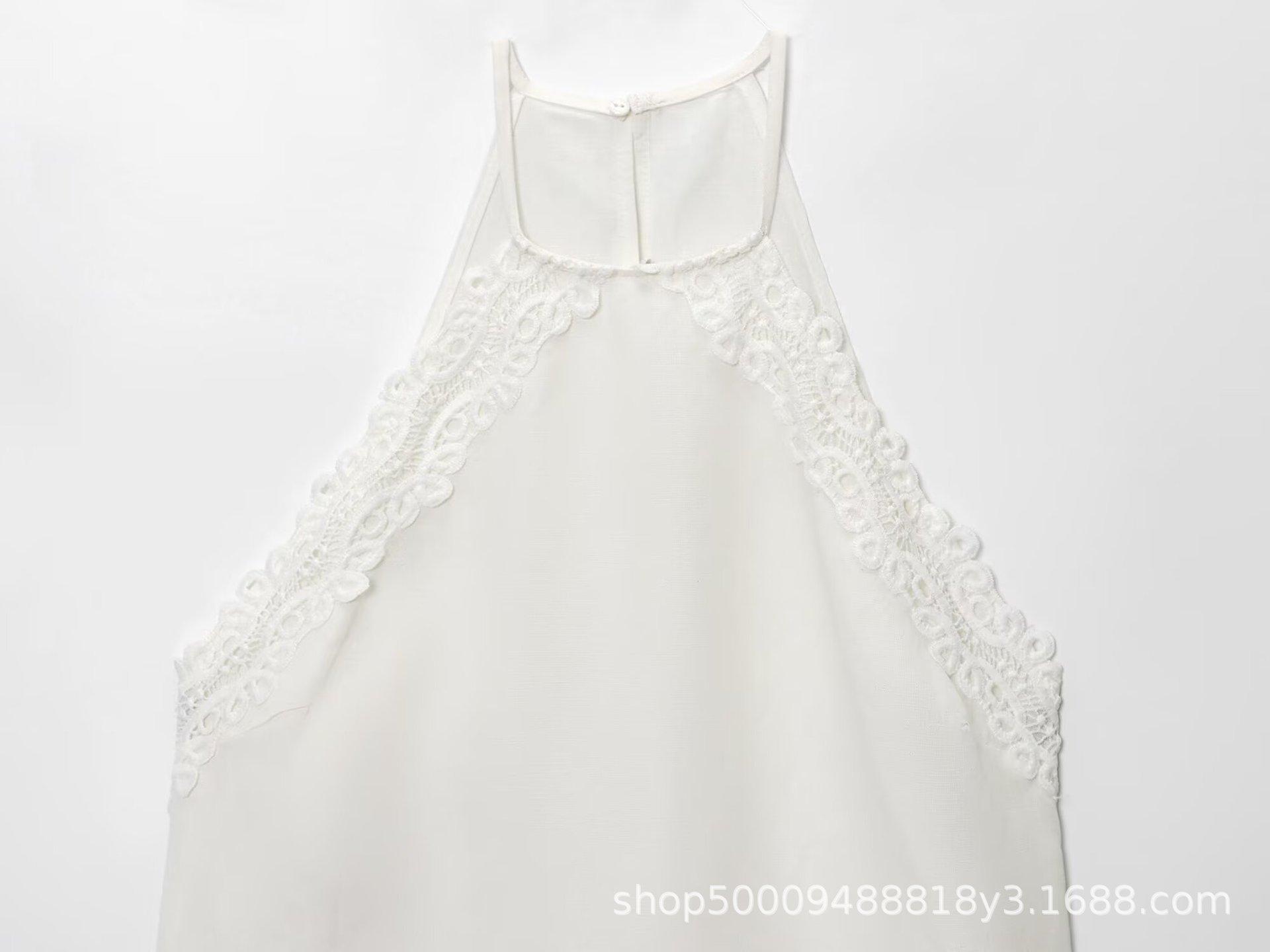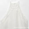Amazon Mayoreo Nuevo Verano de Mujer Versátil Color Puro Sin Mangas Tejido Crochet Cuello Halter Top 5029125