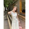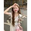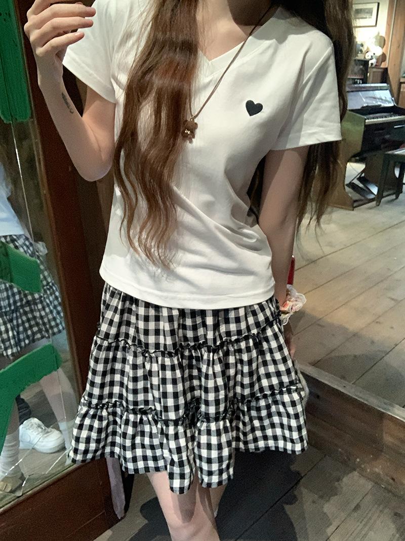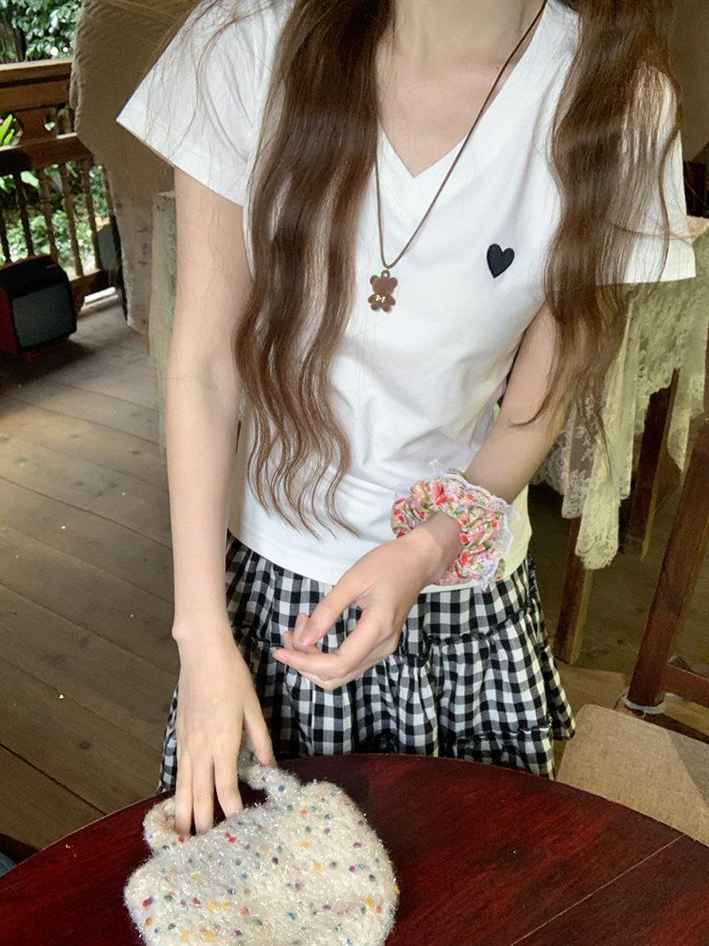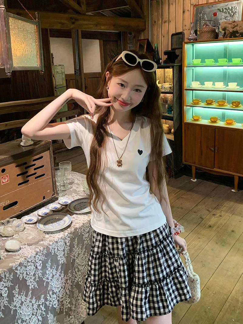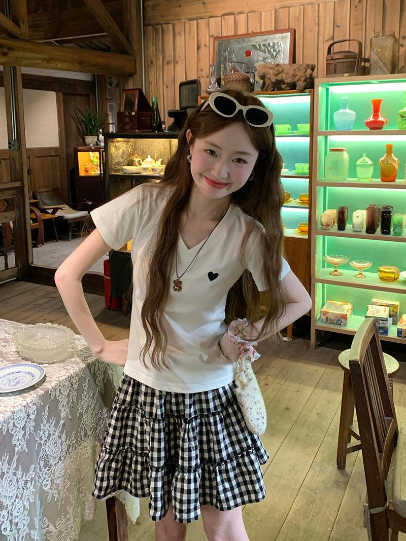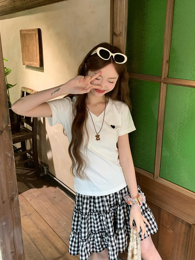 2025 Nuevo Estilo de Verano Camiseta de Manga Corta de Color Puro con Hombro Derecho Descubierto para Mujer Look Adelgazante Algodón Puro Cuello en V Camiseta Base Top con Ropa Interior Moderna