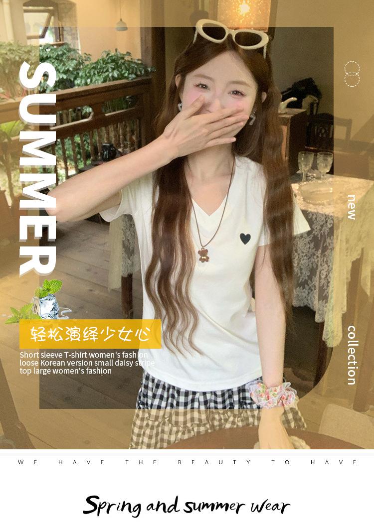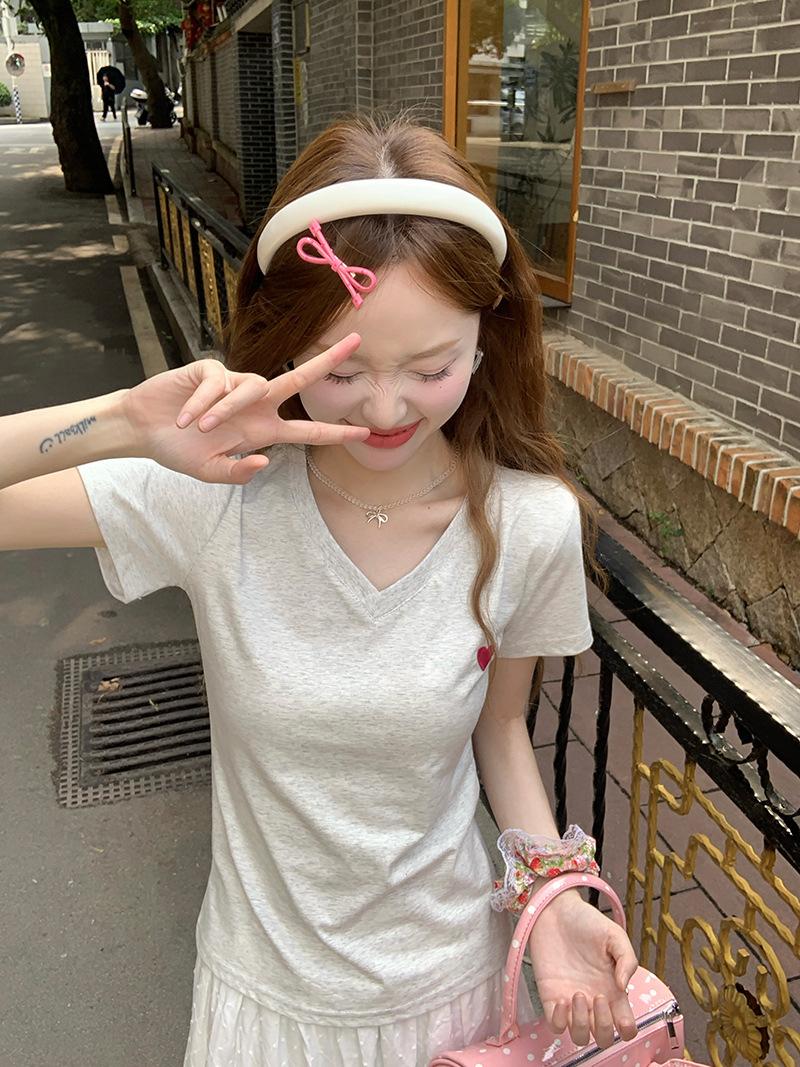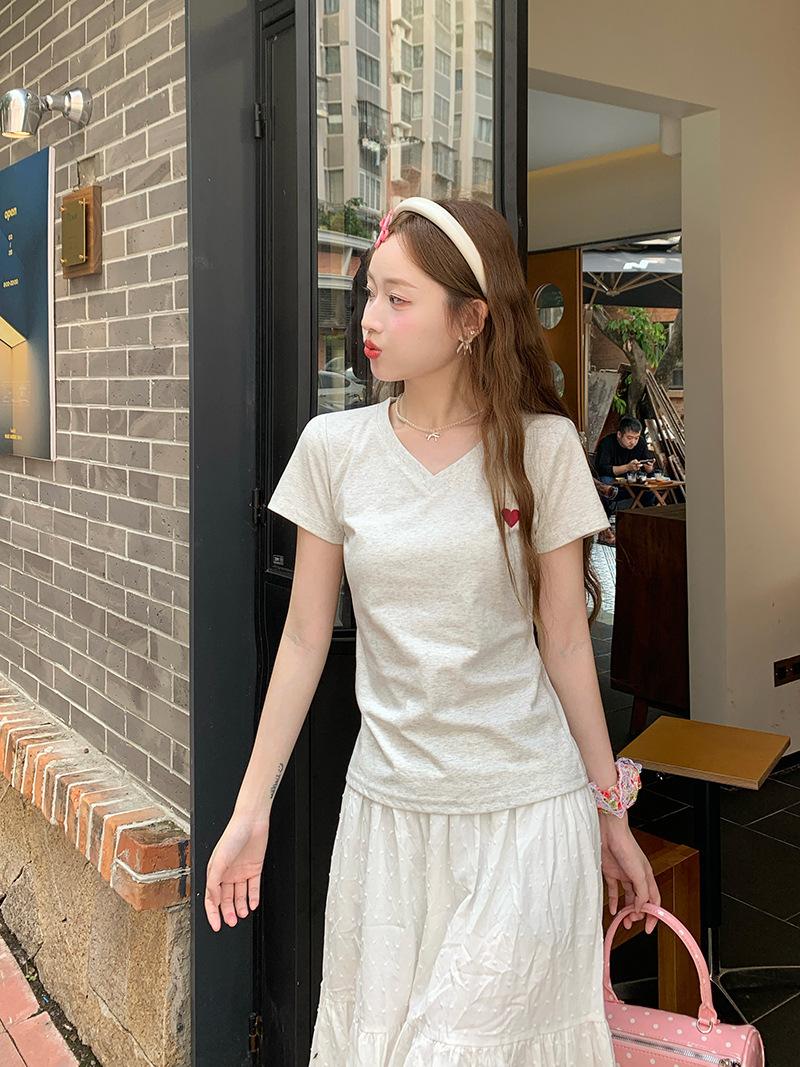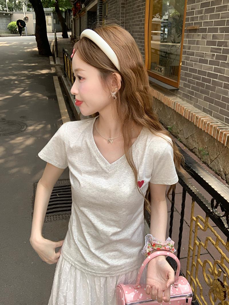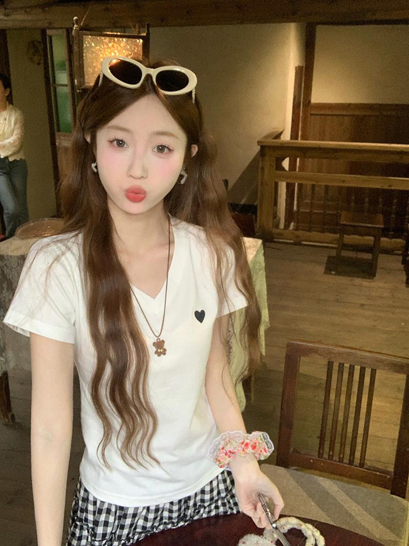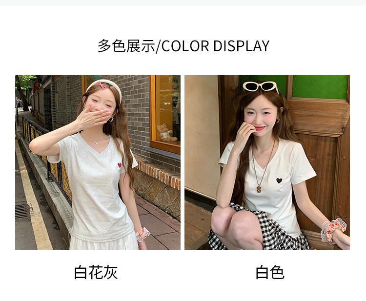 Compra 2025 Nuevo Estilo de Verano Camiseta de Manga Corta de Color Puro con Hombro Derecho Descubierto para Mujer Look Adelgazante Algodón Puro Cuello en V Camiseta Base Top con Ropa Interior Moderna al por mayor en Joom.pro