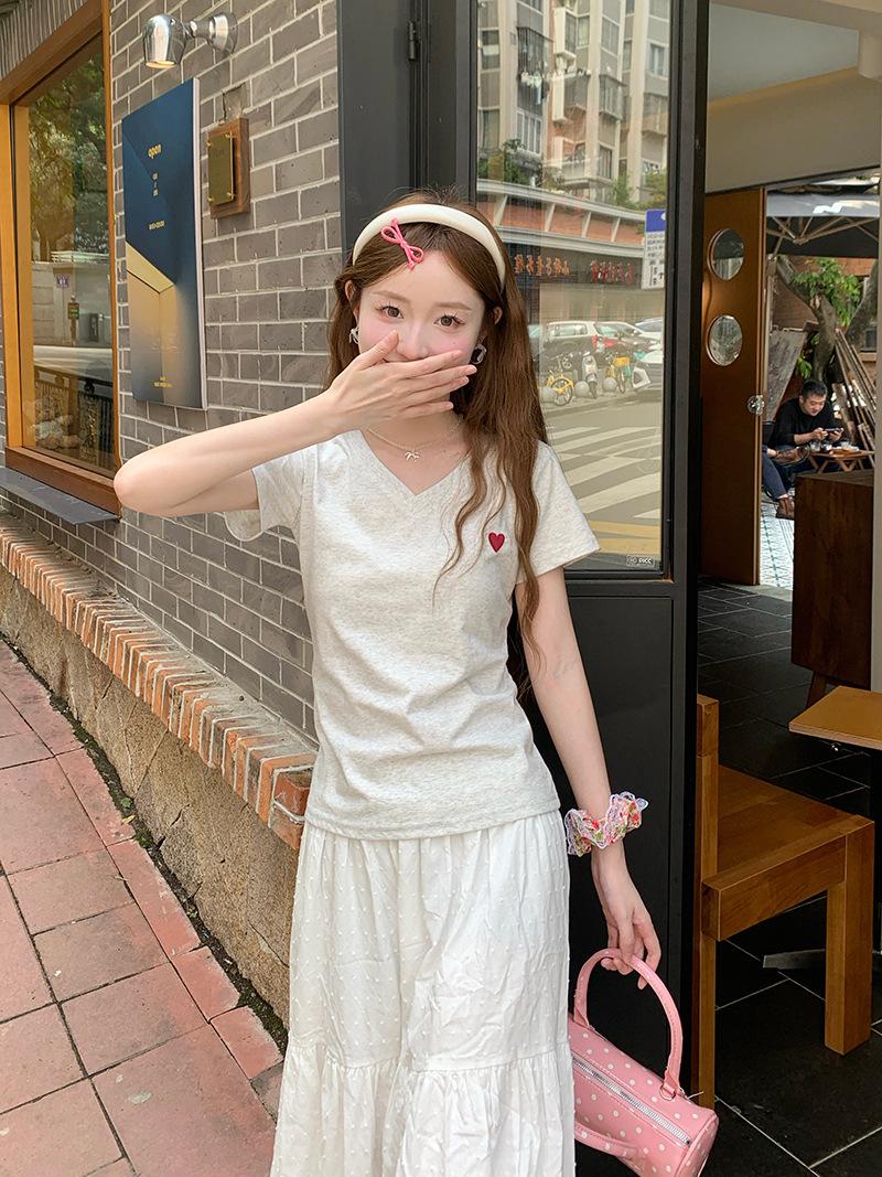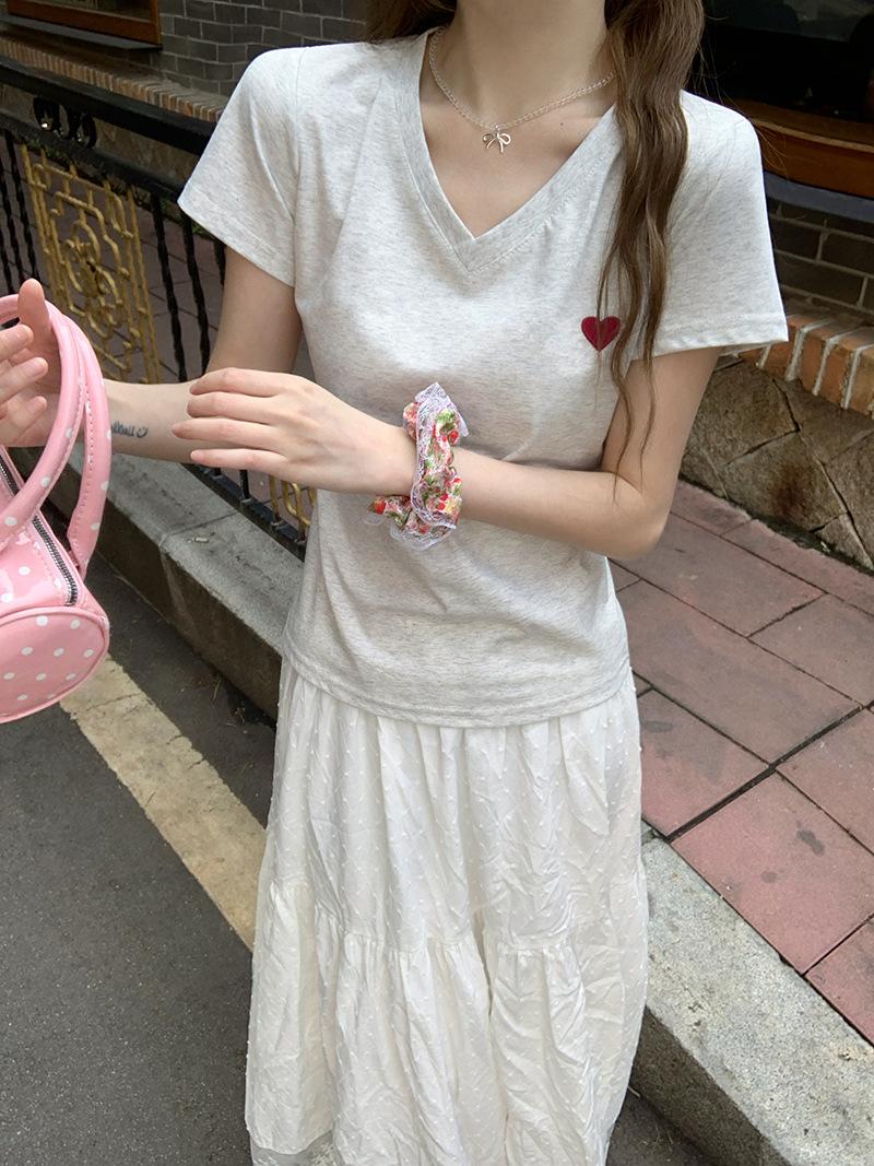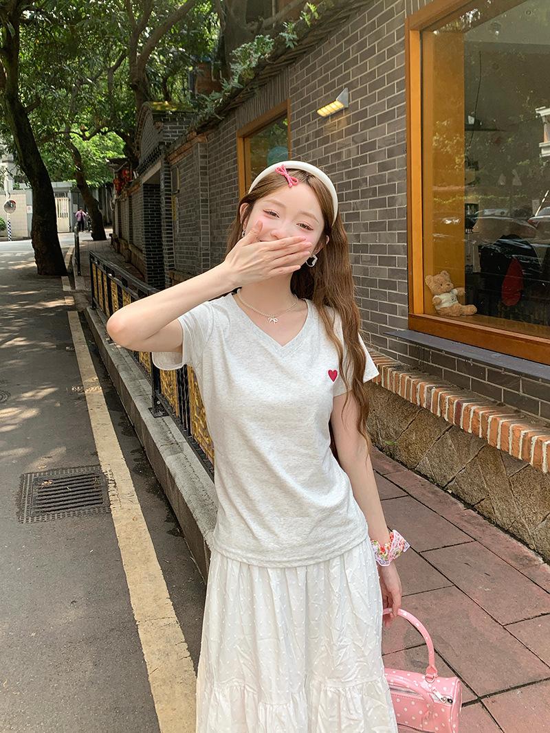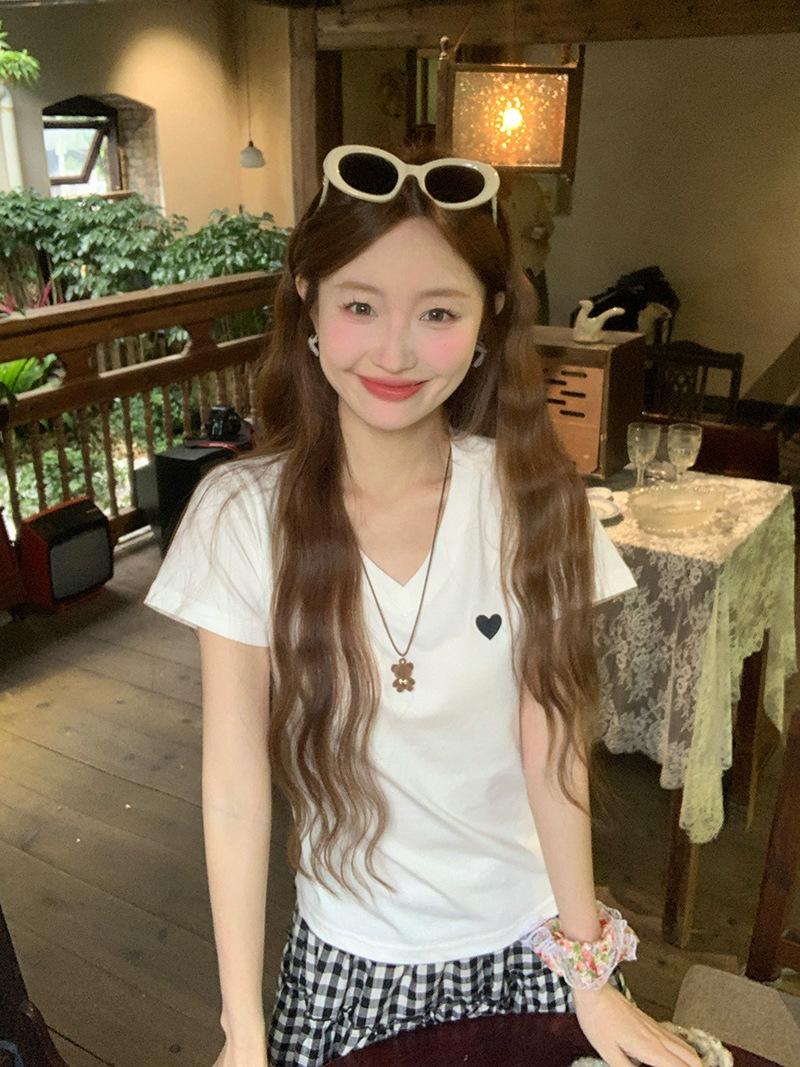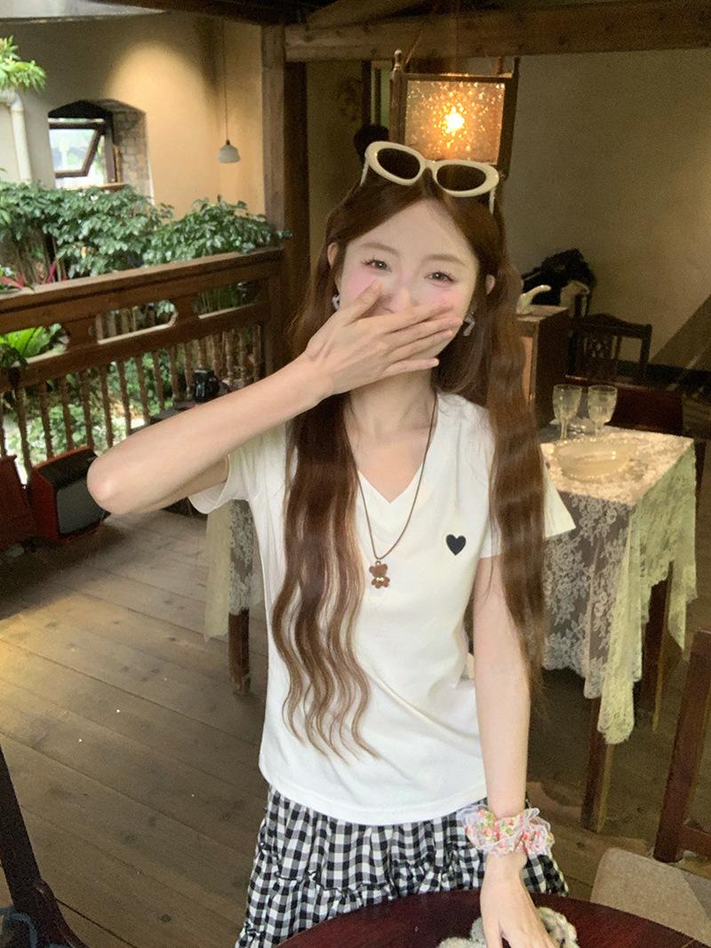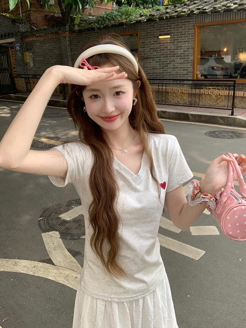 Compra 2025 Nuevo Estilo de Verano Camiseta de Manga Corta de Color Puro con Hombro Derecho Descubierto para Mujer Look Adelgazante Algodón Puro Cuello en V Camiseta Base Top con Ropa Interior Moderna al por mayor en Joom.pro