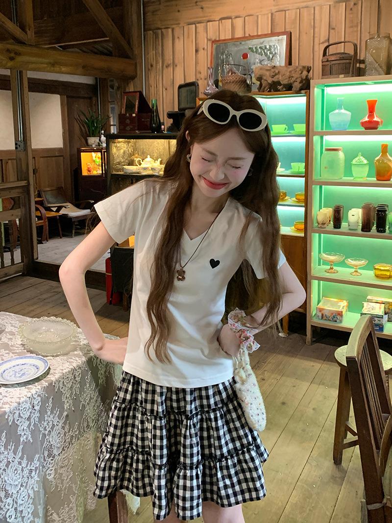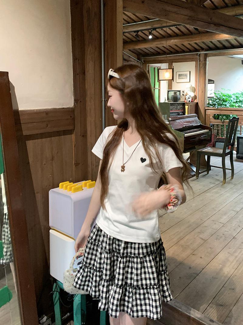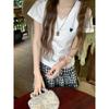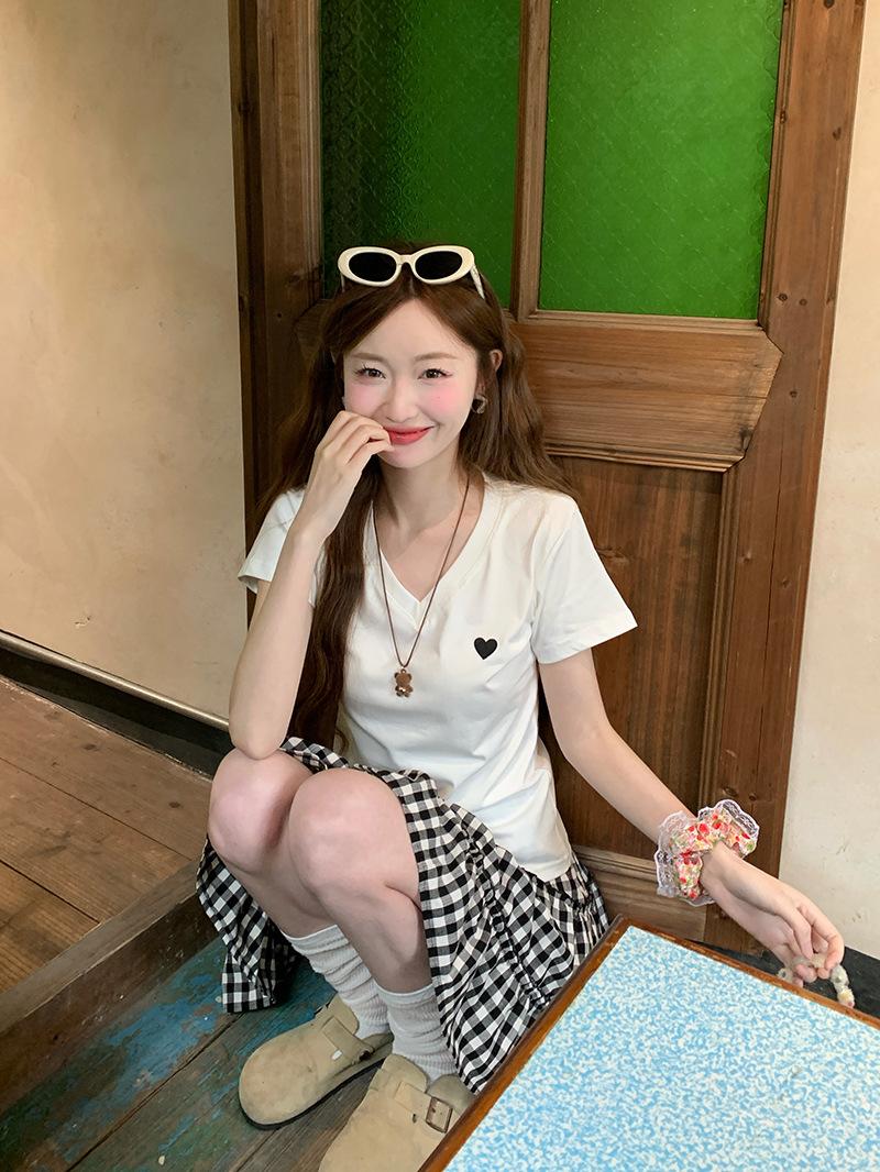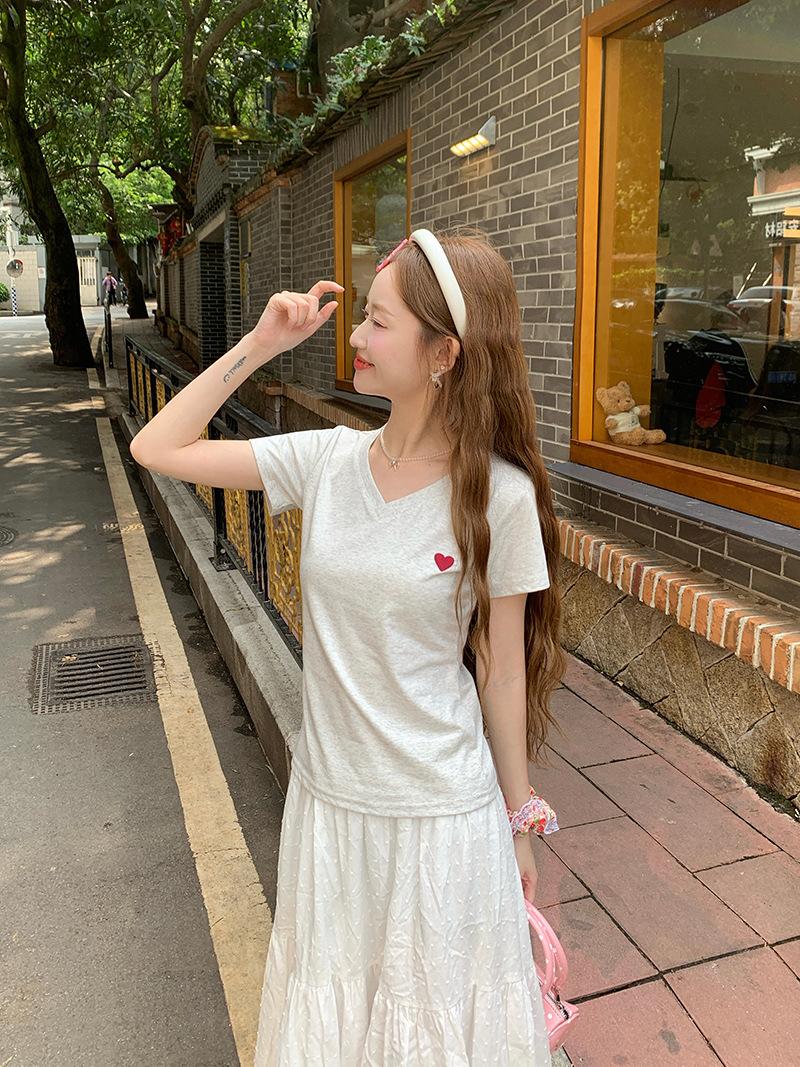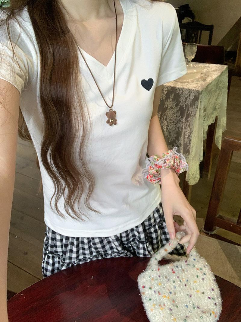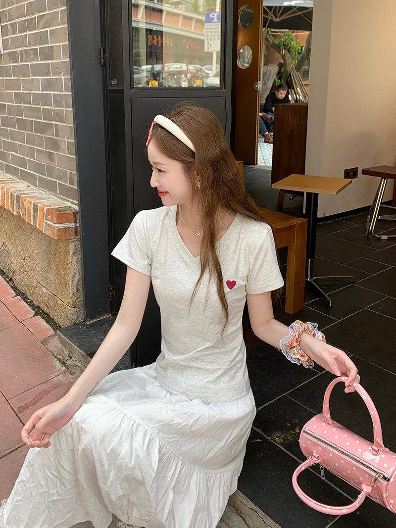 Compra 2025 Nuevo Estilo de Verano Camiseta de Manga Corta de Color Puro con Hombro Derecho Descubierto para Mujer Look Adelgazante Algodón Puro Cuello en V Camiseta Base Top con Ropa Interior Moderna al por mayor en Joom.pro