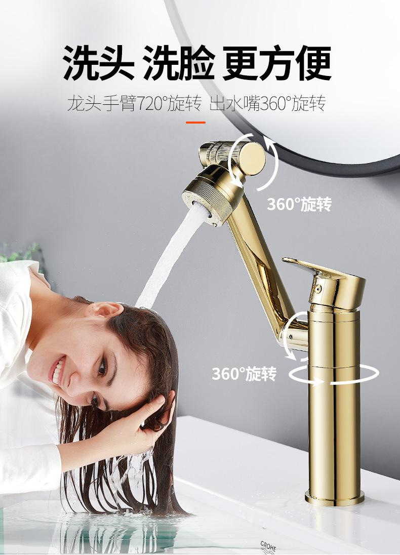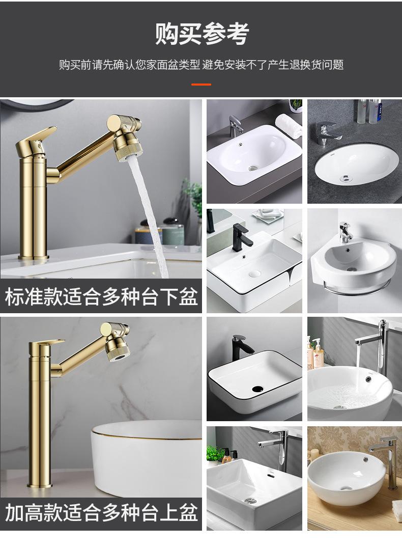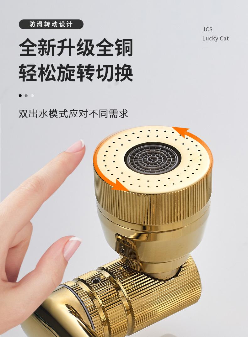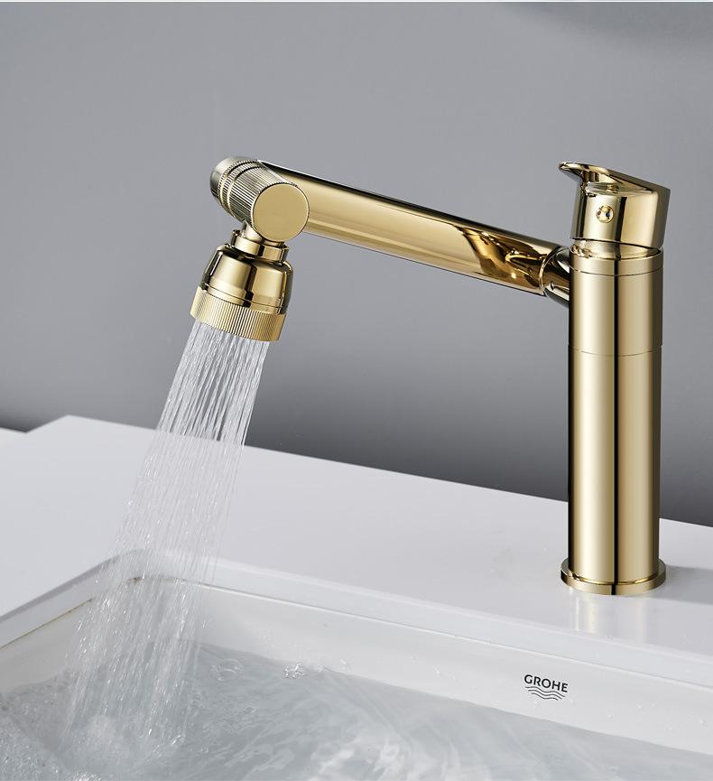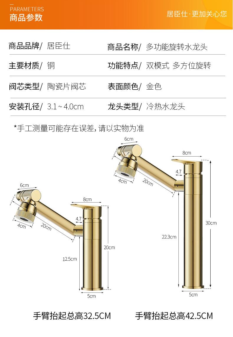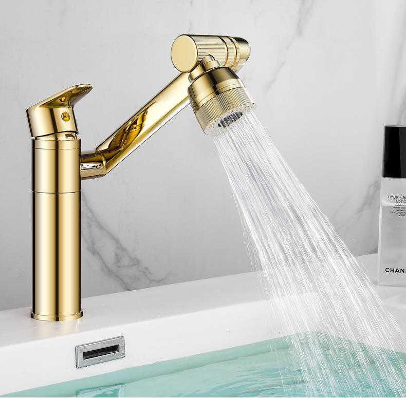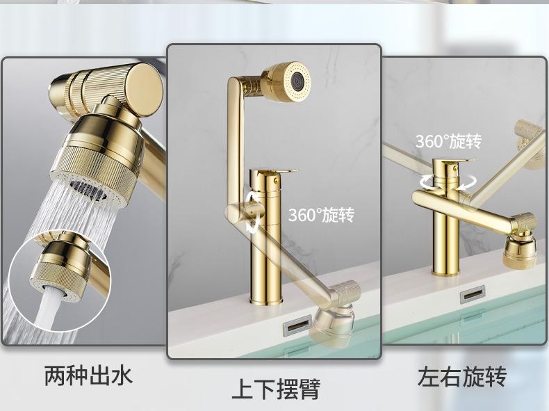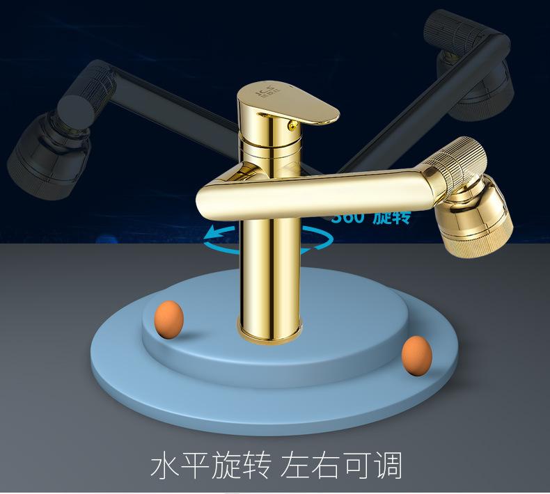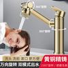 Grifo Dorado para Lavabo Frío y Caliente Todo Cobre Lavabo Doméstico Universal Giratorio Lavabo de Inodoro Grifo de Lavabo