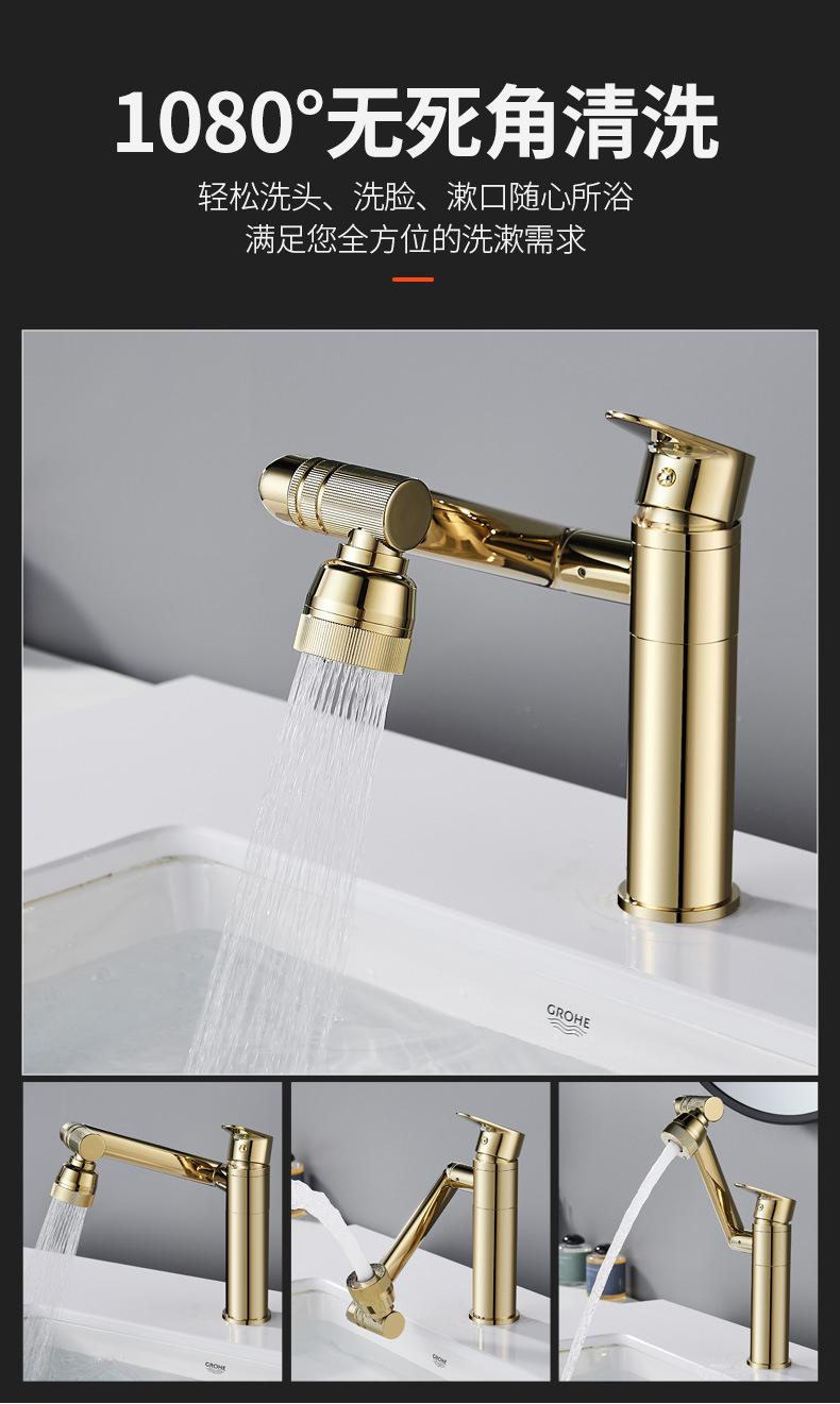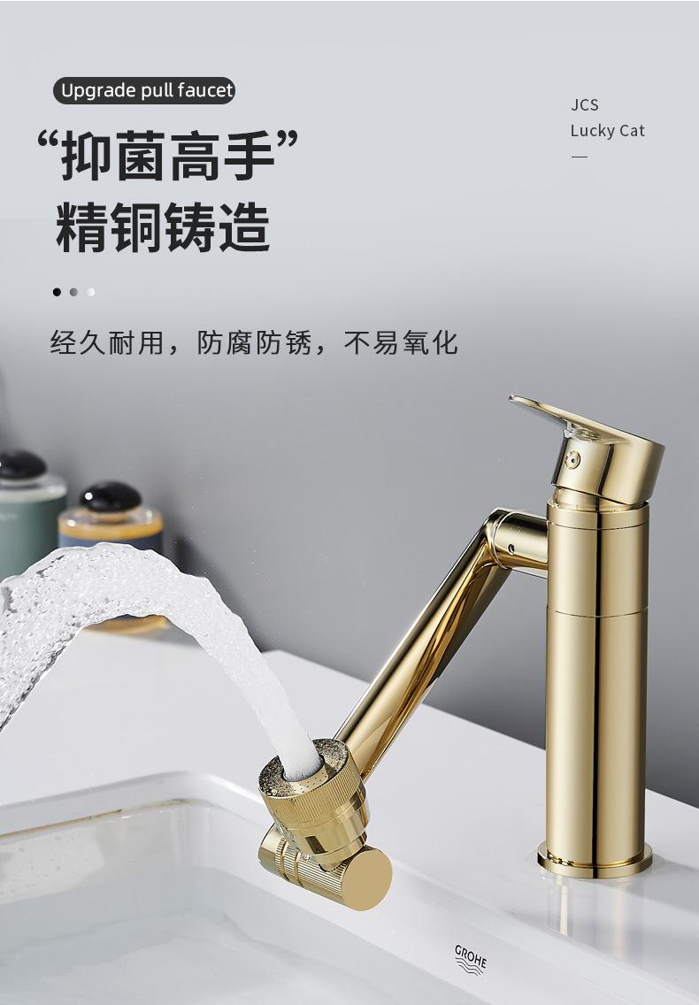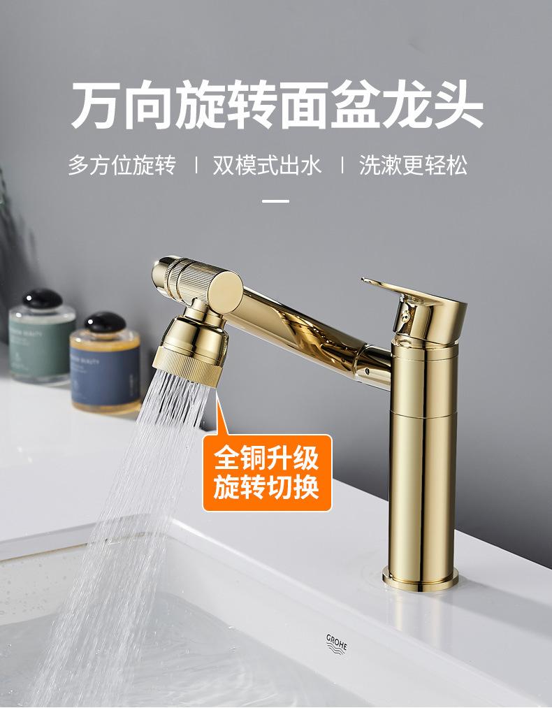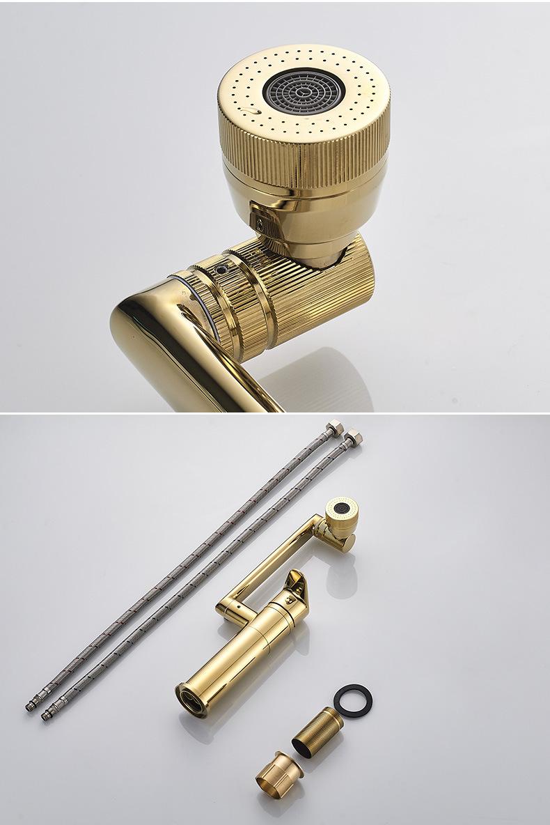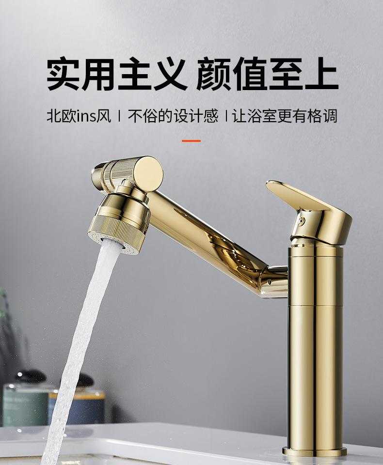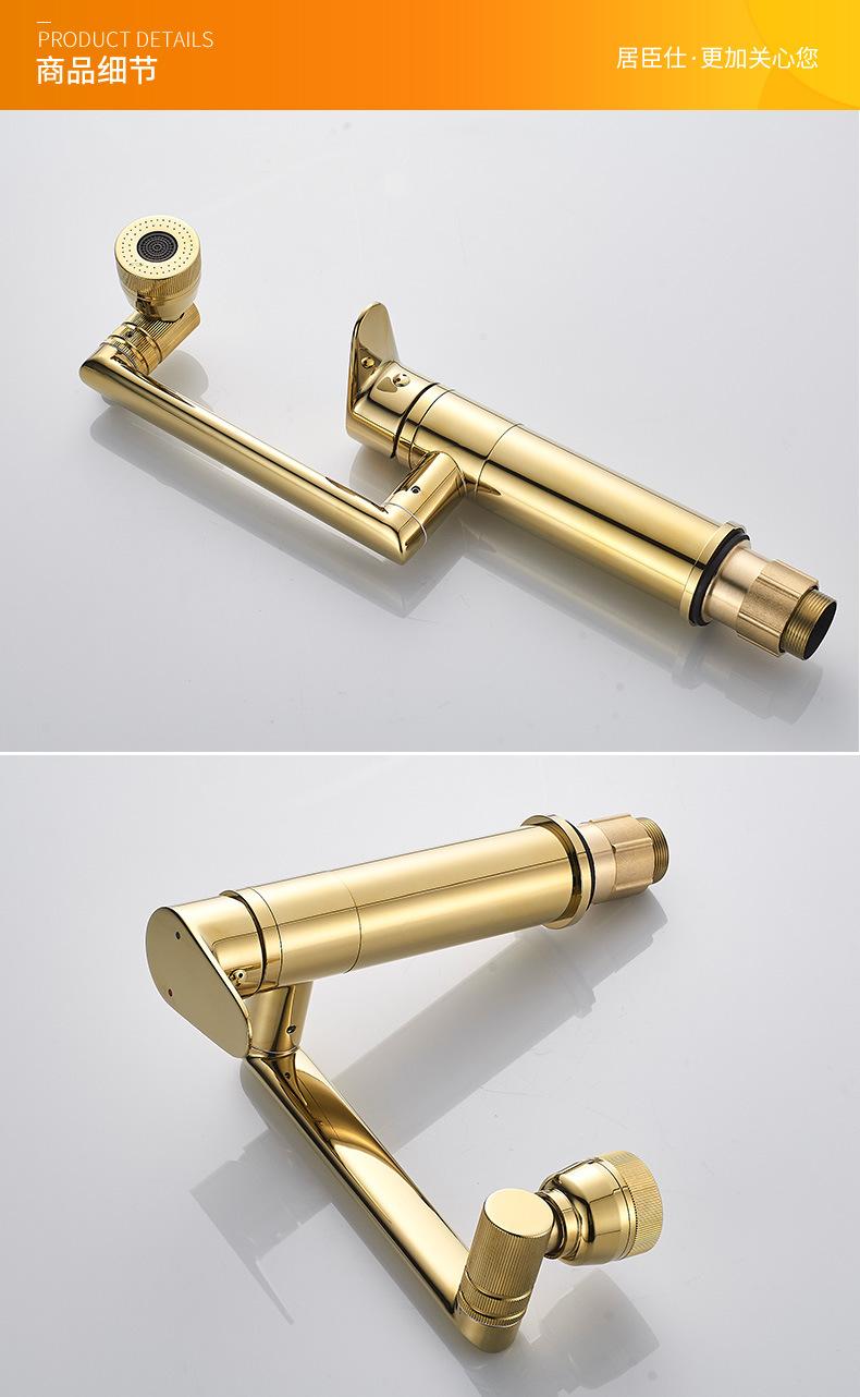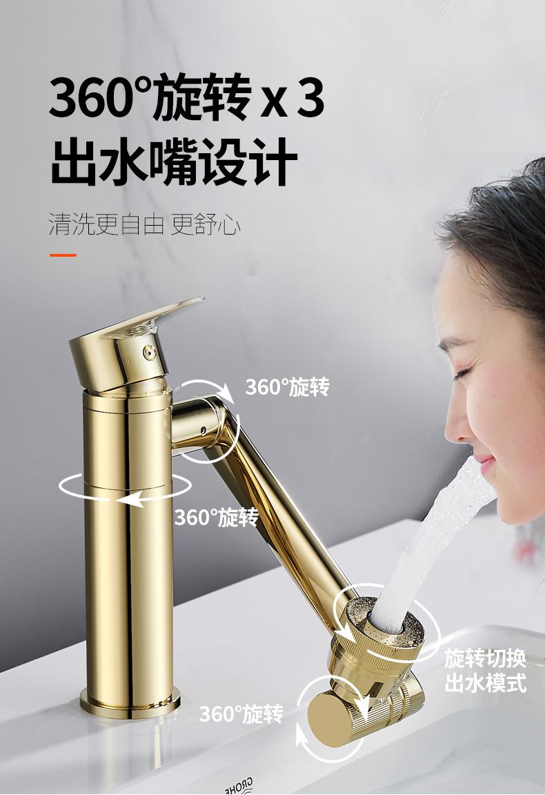 Grifo Dorado para Lavabo Frío y Caliente Todo Cobre Lavabo Doméstico Universal Giratorio Lavabo de Inodoro Grifo de Lavabo