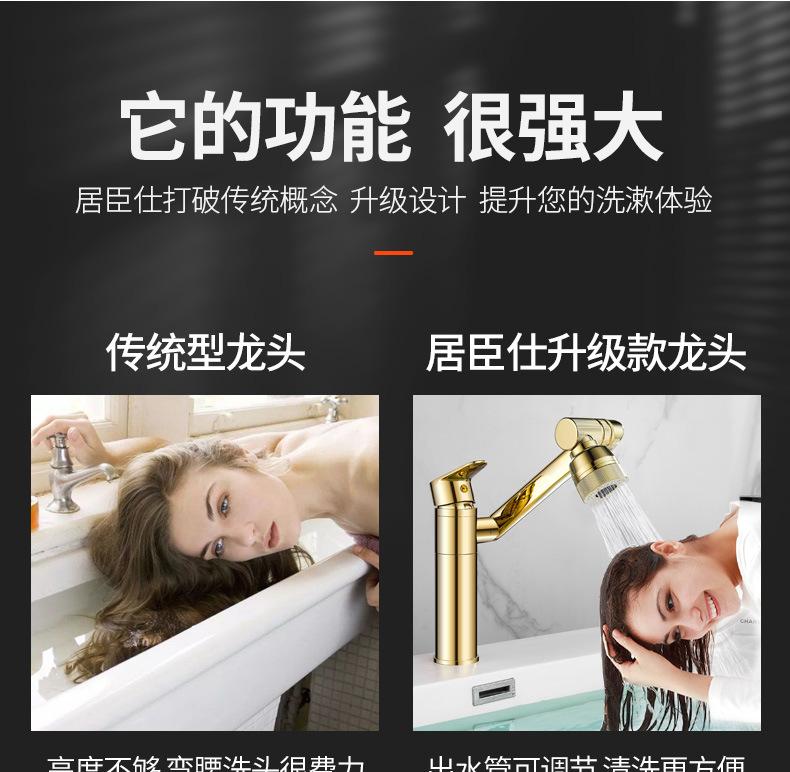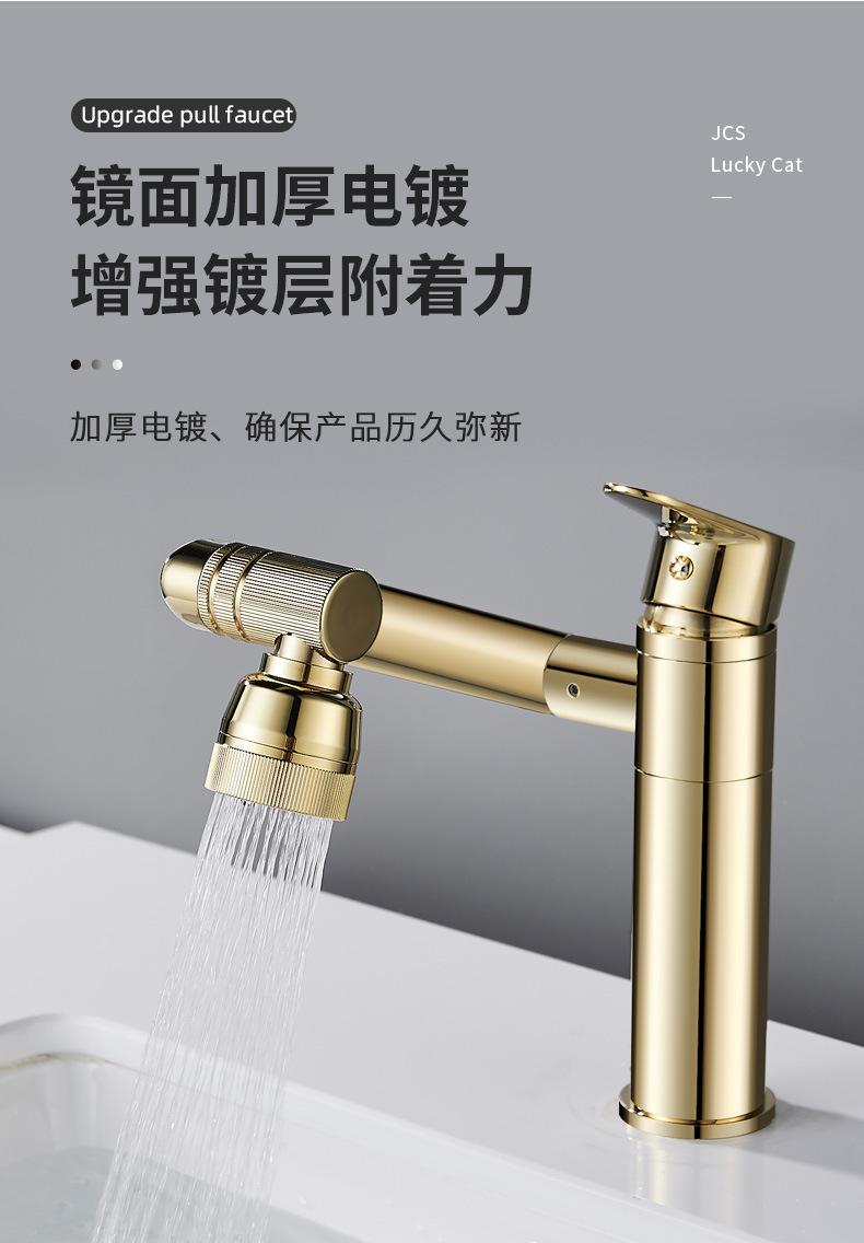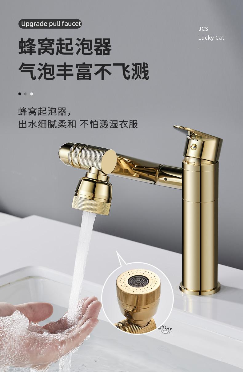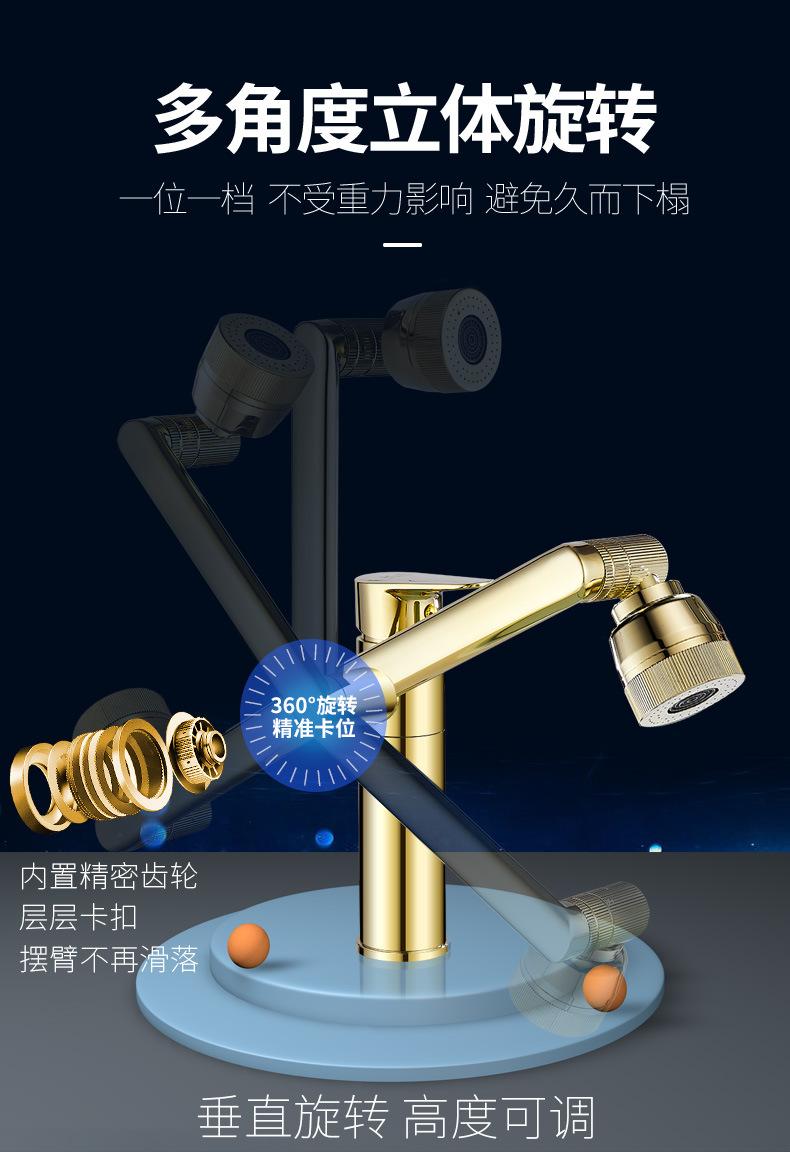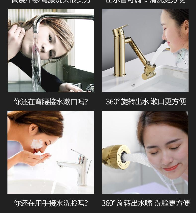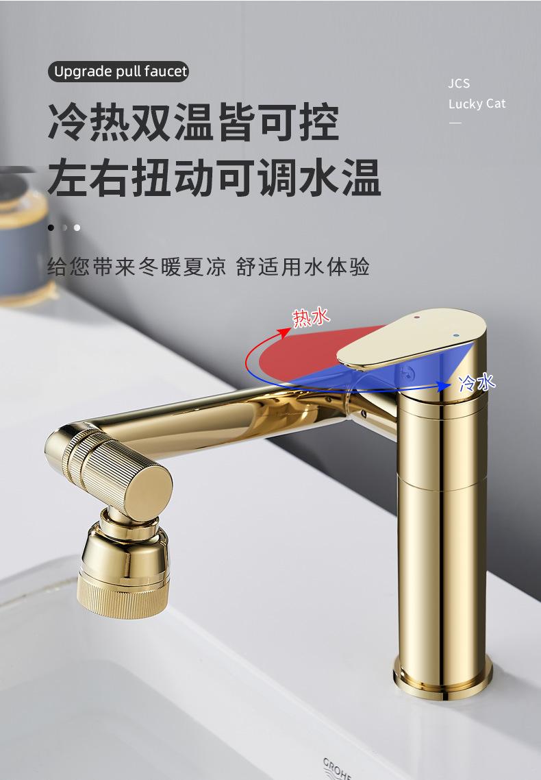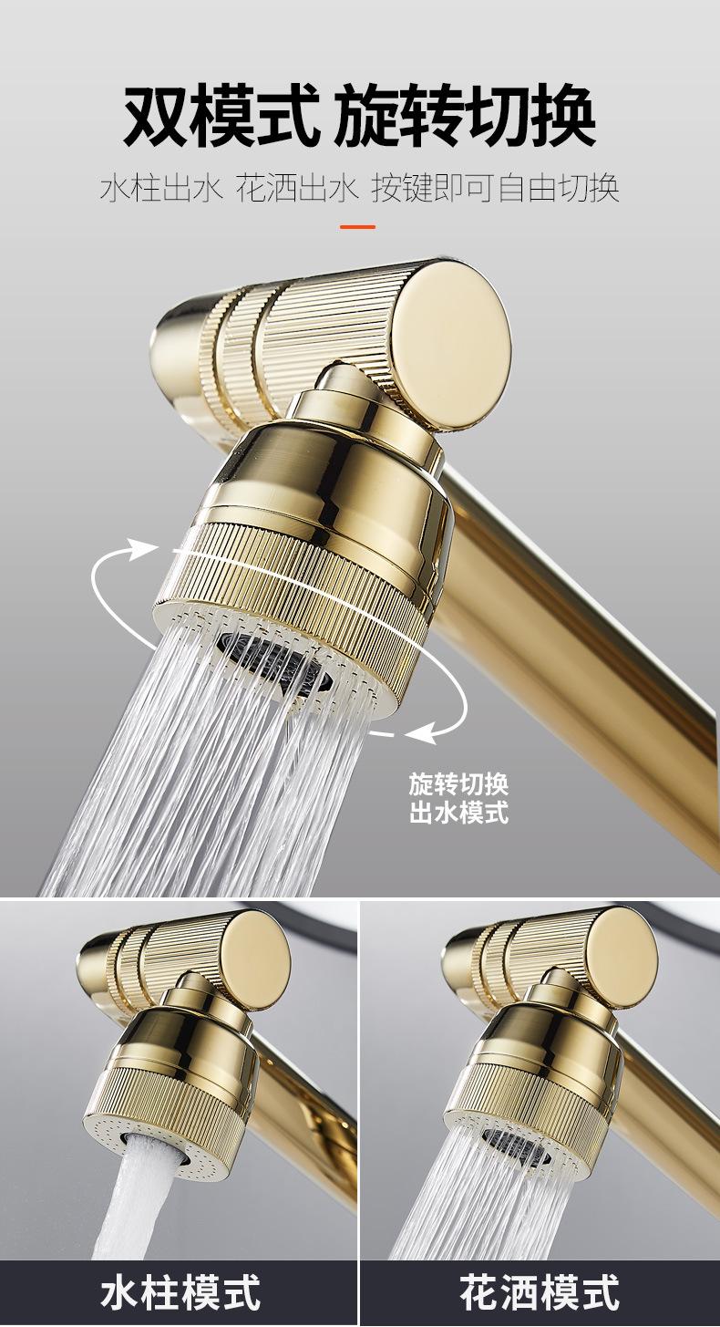 Grifo Dorado para Lavabo Frío y Caliente Todo Cobre Lavabo Doméstico Universal Giratorio Lavabo de Inodoro Grifo de Lavabo