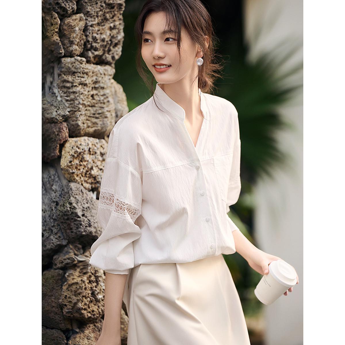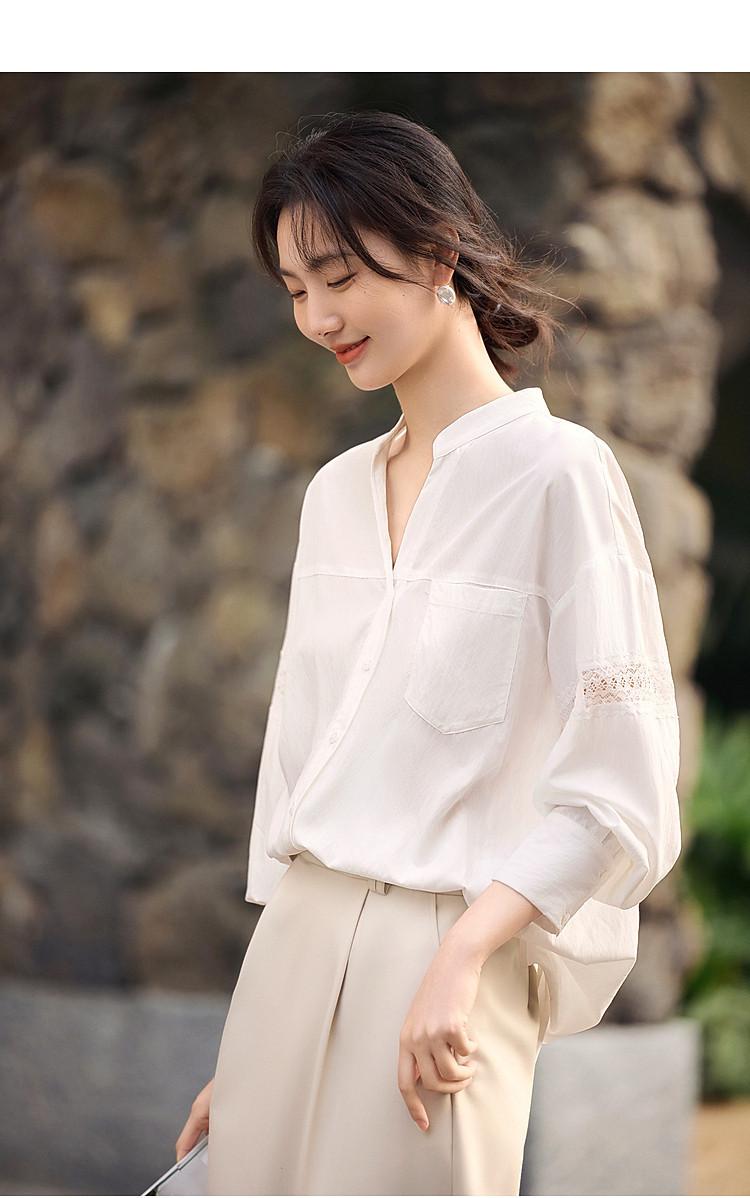 Compra Camisa de Encaje con Costuras Elegantes y Suaves Primavera 2025 Camisa de Encaje con Costuras Elegante para Combinar con Todo al por mayor en Joom.pro