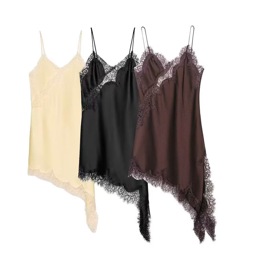 ZA AliExpress Vestido Asimétrico de Encaje para Mujer Estilo Europeo y Americano de Venta Caliente Transfronterizo