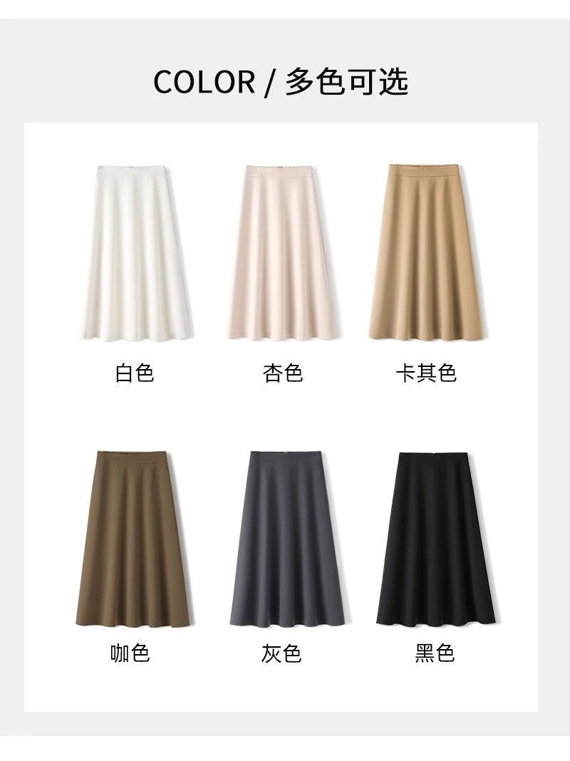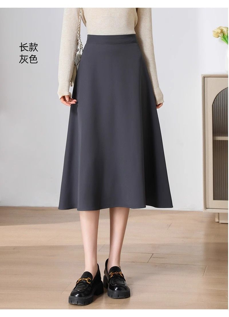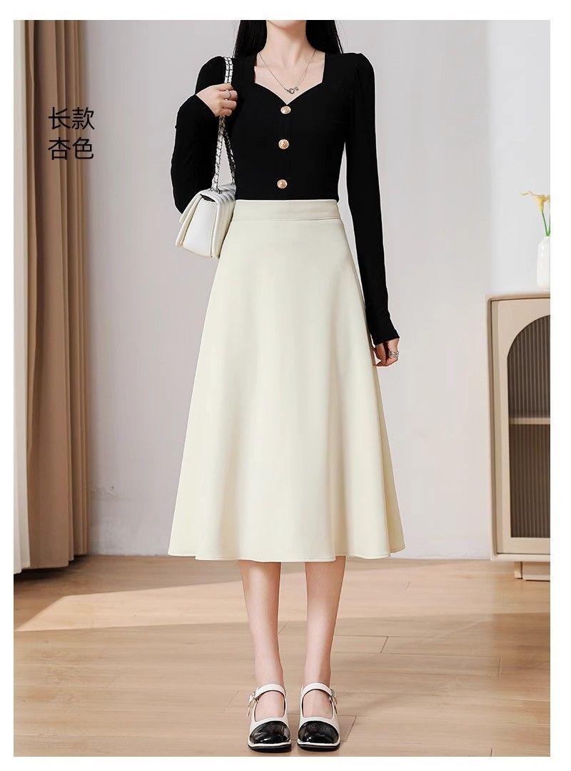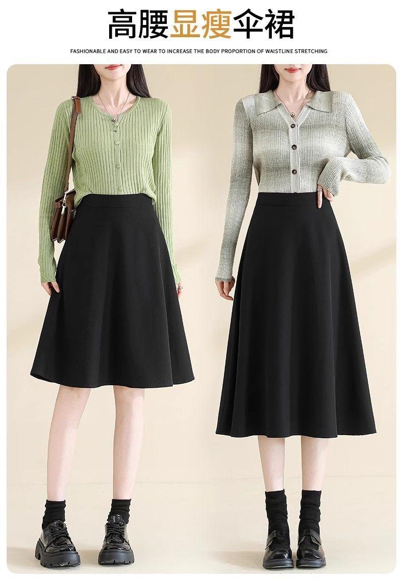 2025 Verano para Mujer Nueva Falda Paraguas A-Line Versátil Casual de Cintura Alta Largo Medio Falda Plisada Delgada