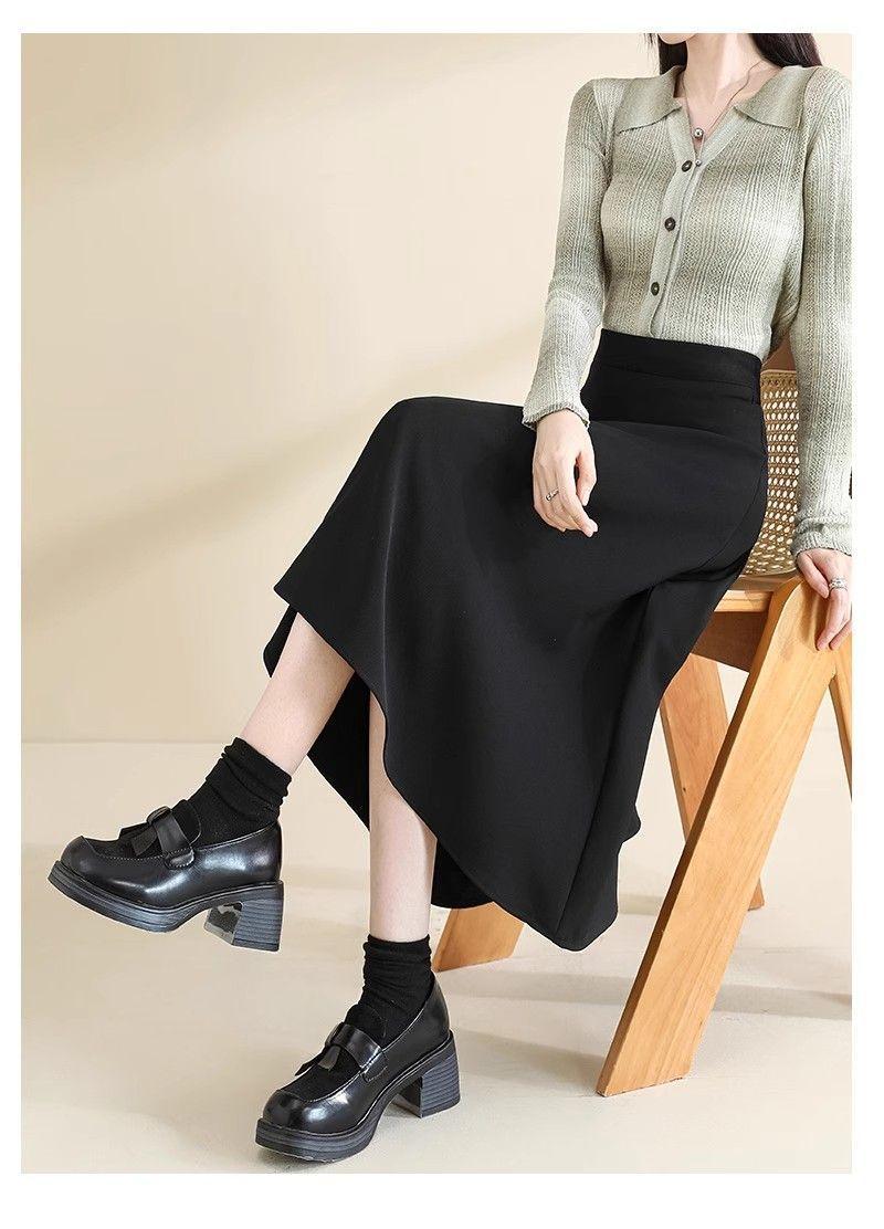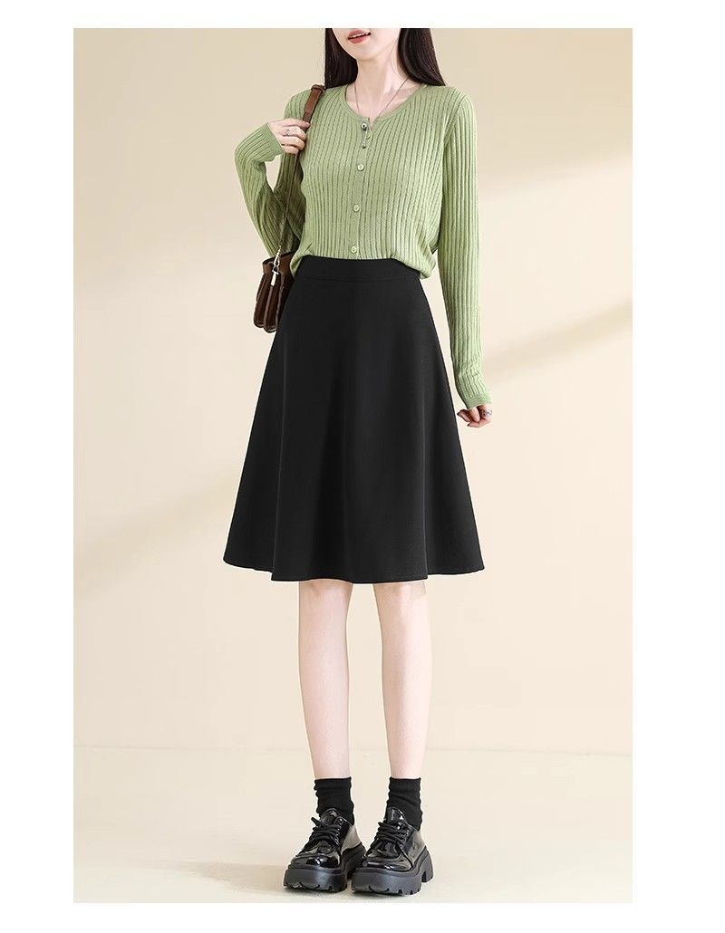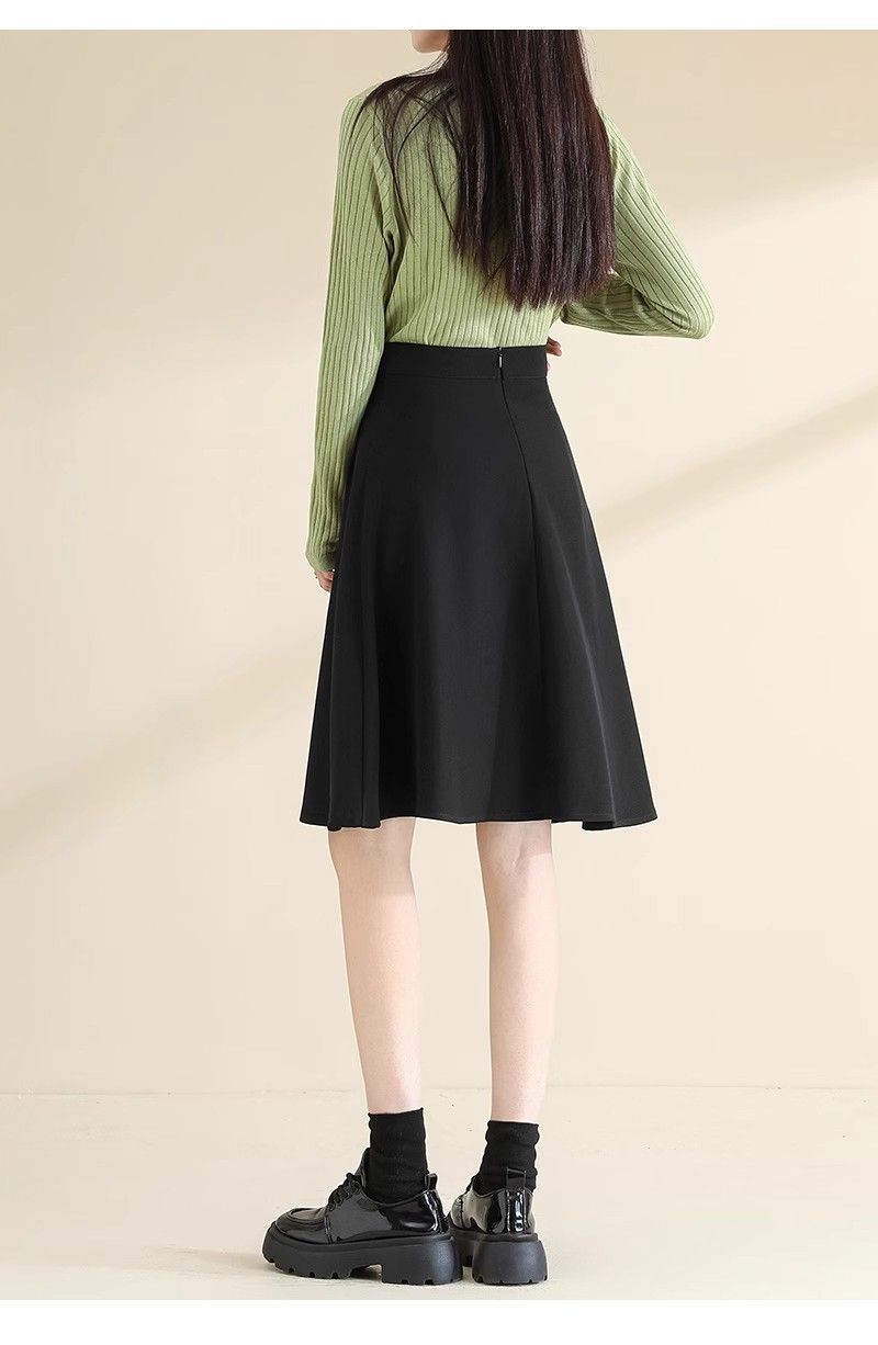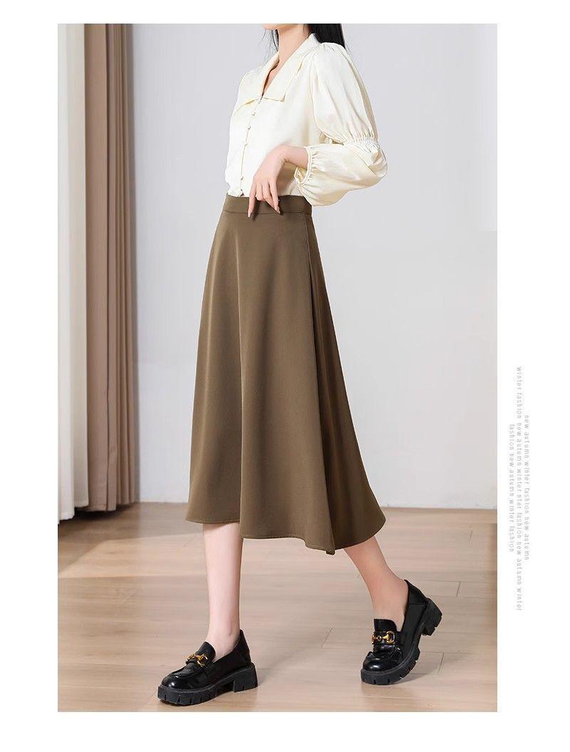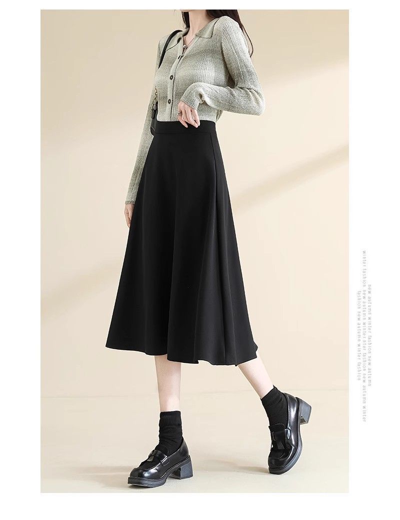 2025 Verano para Mujer Nueva Falda Paraguas A-Line Versátil Casual de Cintura Alta Largo Medio Falda Plisada Delgada