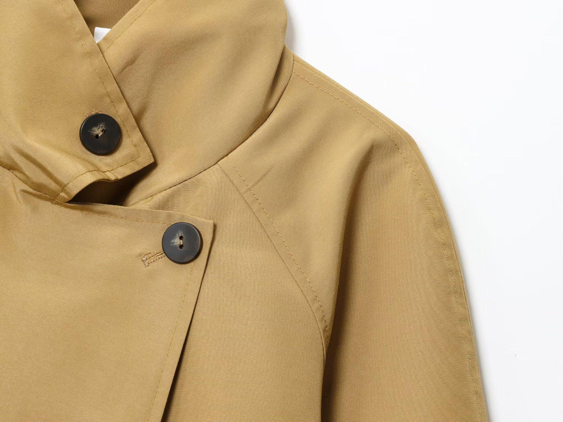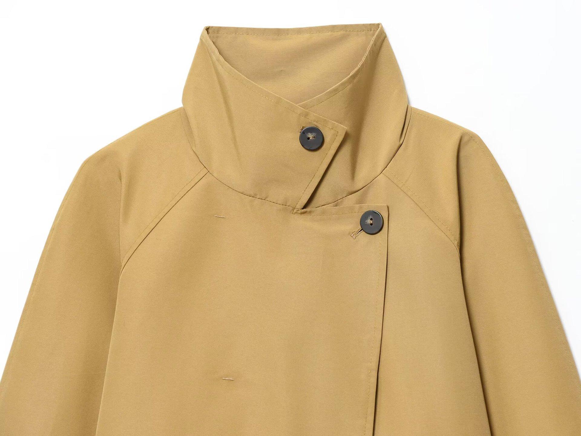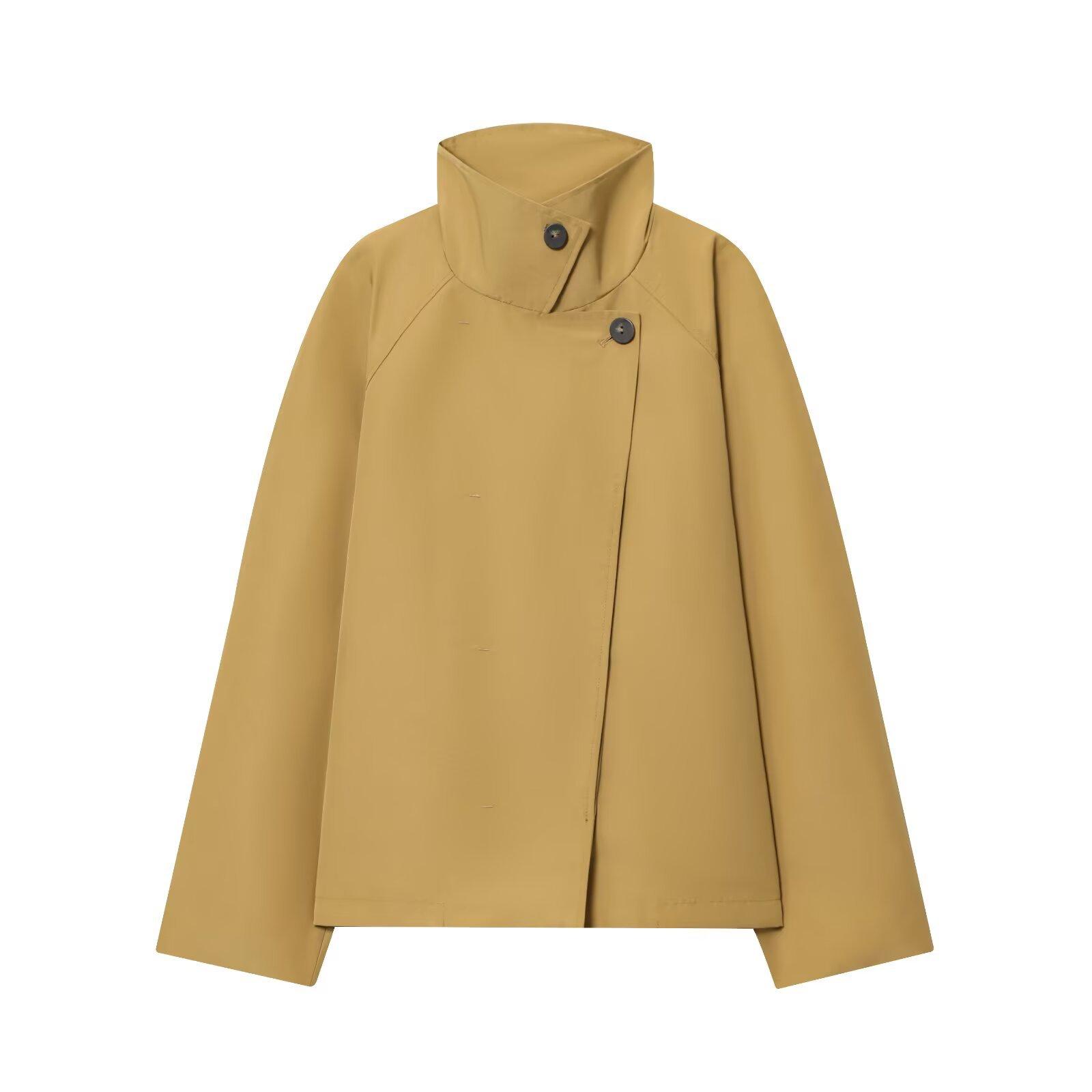Ropa de Otoño Nueva para Mujer 2025 Europea y Americana Transfronteriza Estilo Europeo y Americano Moda Sencilla Versátil Gabardina Corta con Cuello Mao